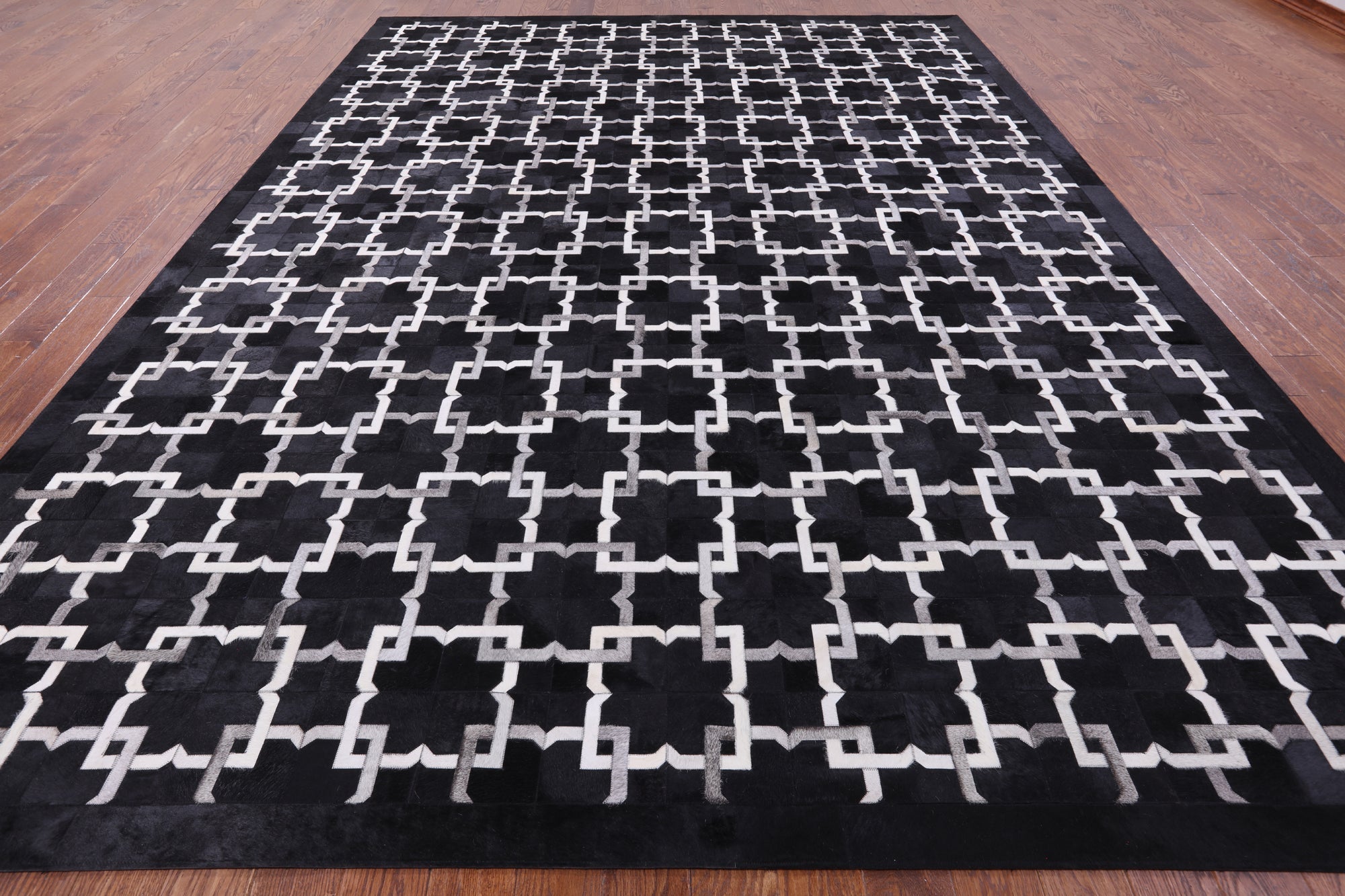 Black Natural Cowhide Hand Stitched Rug 10' 0" X 14' 0" - C1372