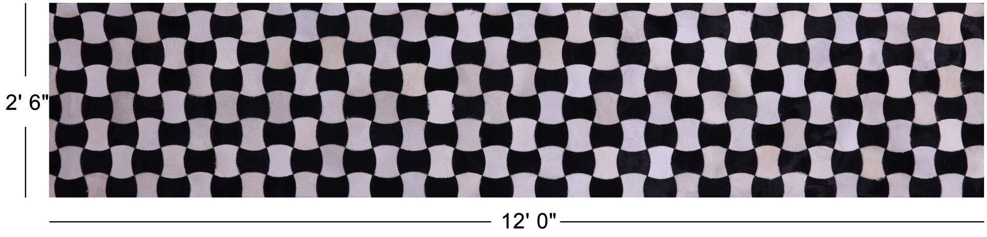 2' 6" X 12' 0" Black & White Natural Cowhide Hand Stitched Runner Rug - C5813