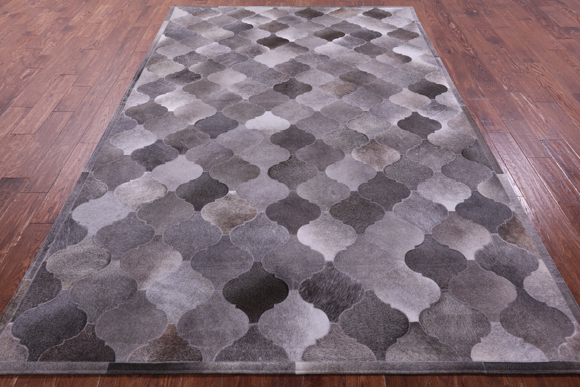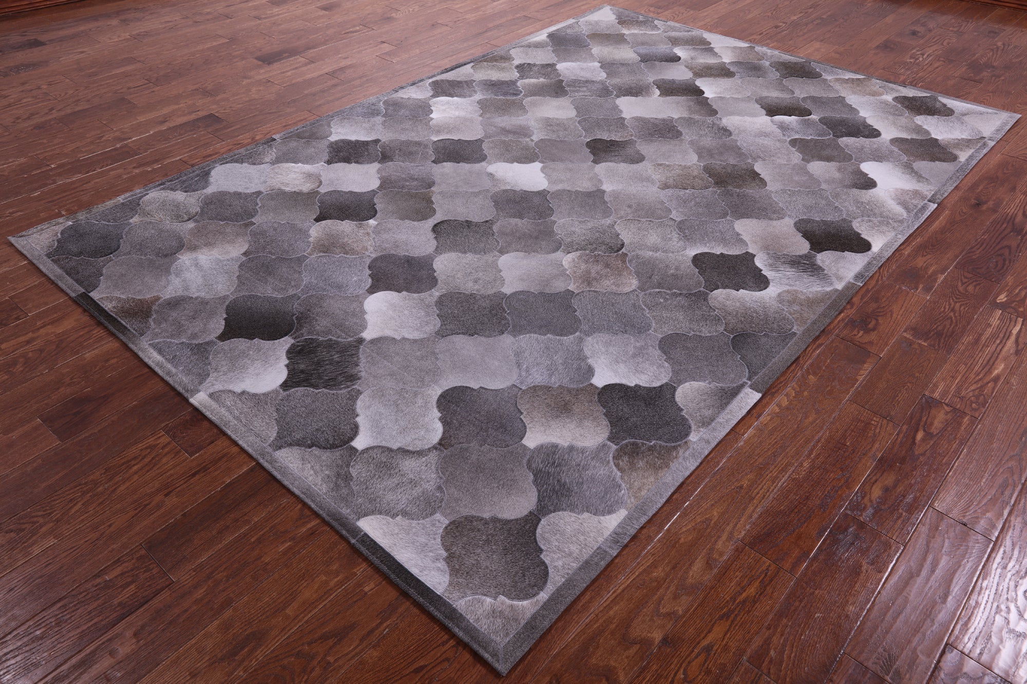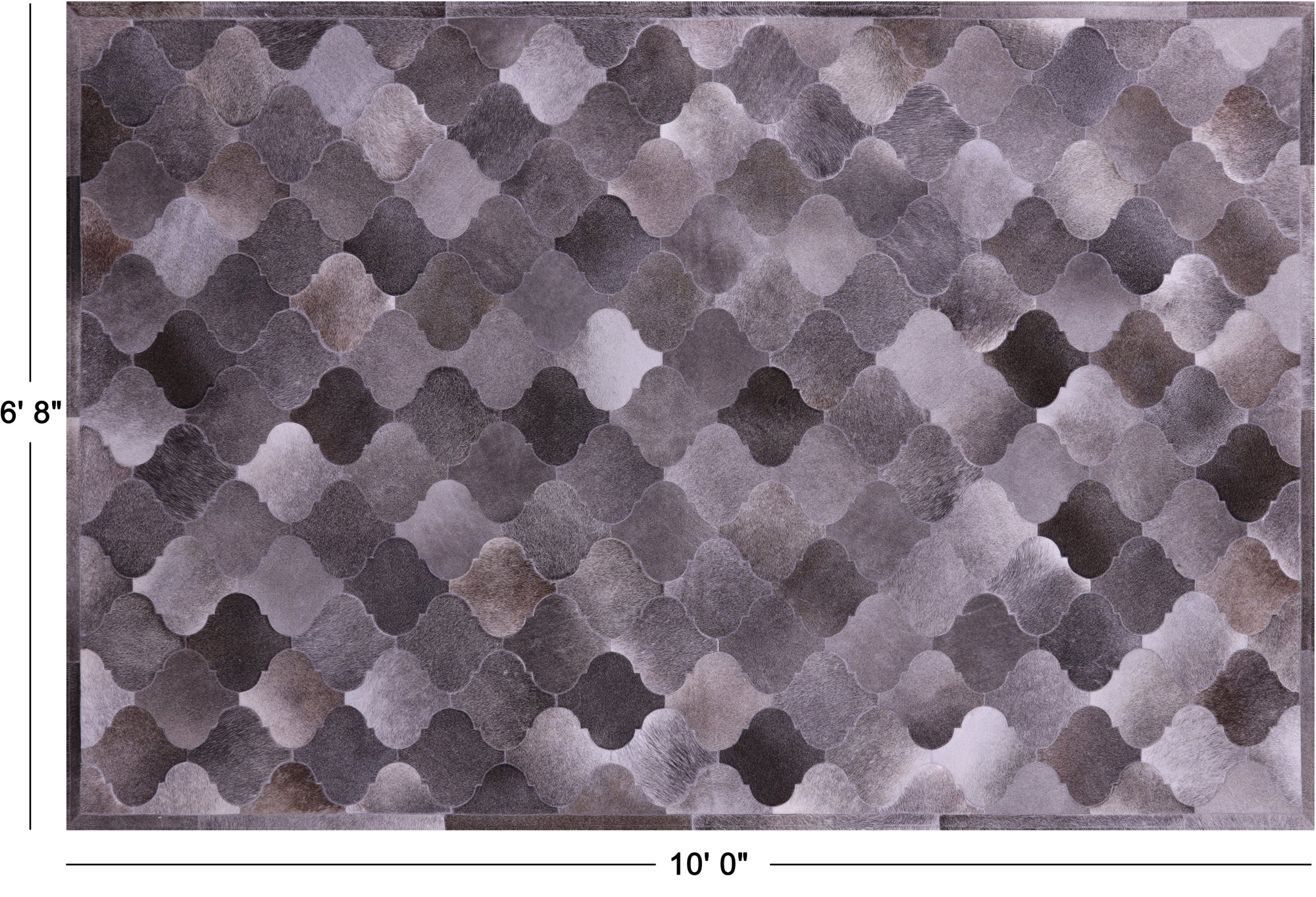 6' 8" X 10' 0" Lantern Tile Grey Natural Cowhide Hand Stitched Rug - C3457