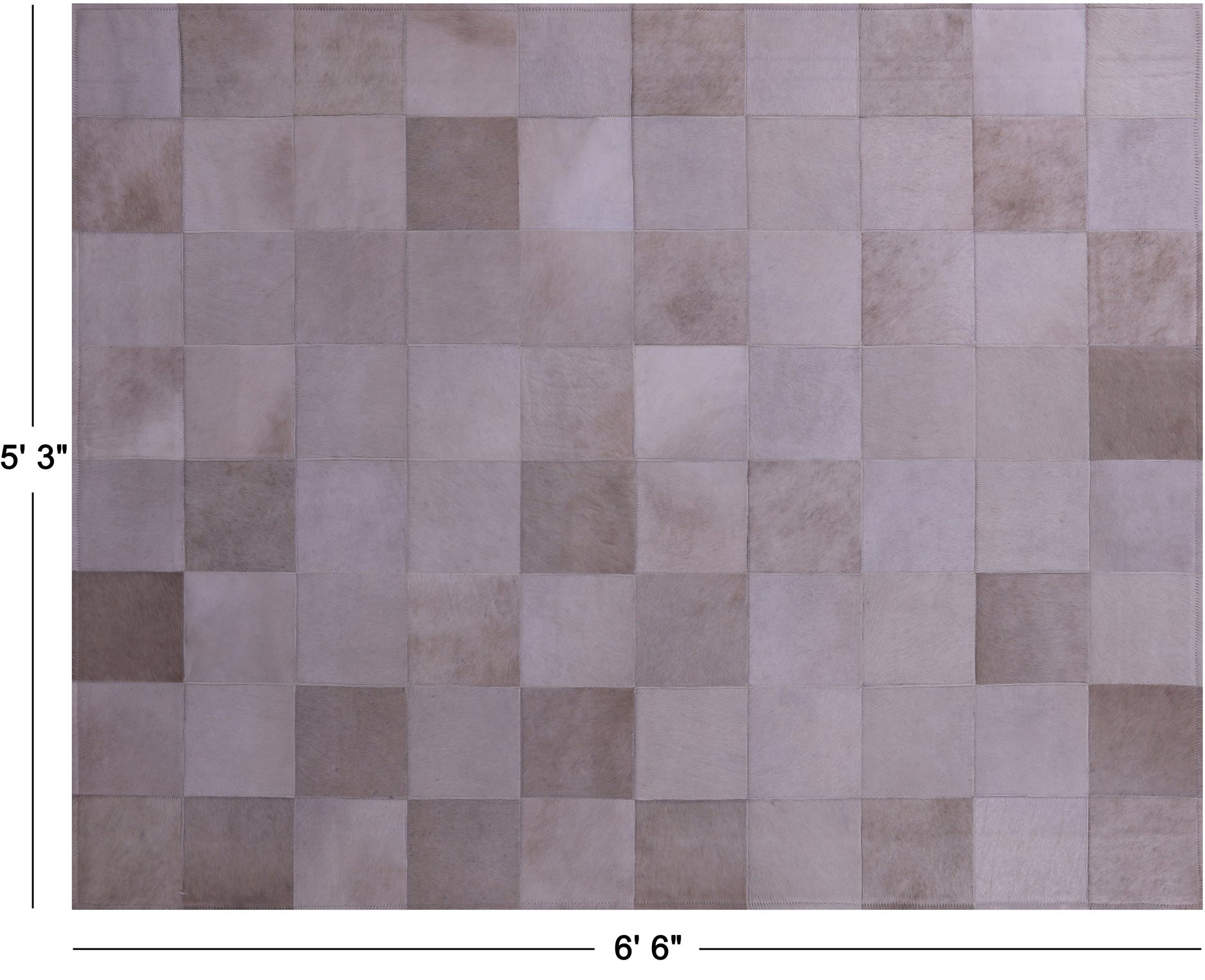 5' 3" X 6' 6" White Natural Cowhide Hand Stitched Rug - C3389