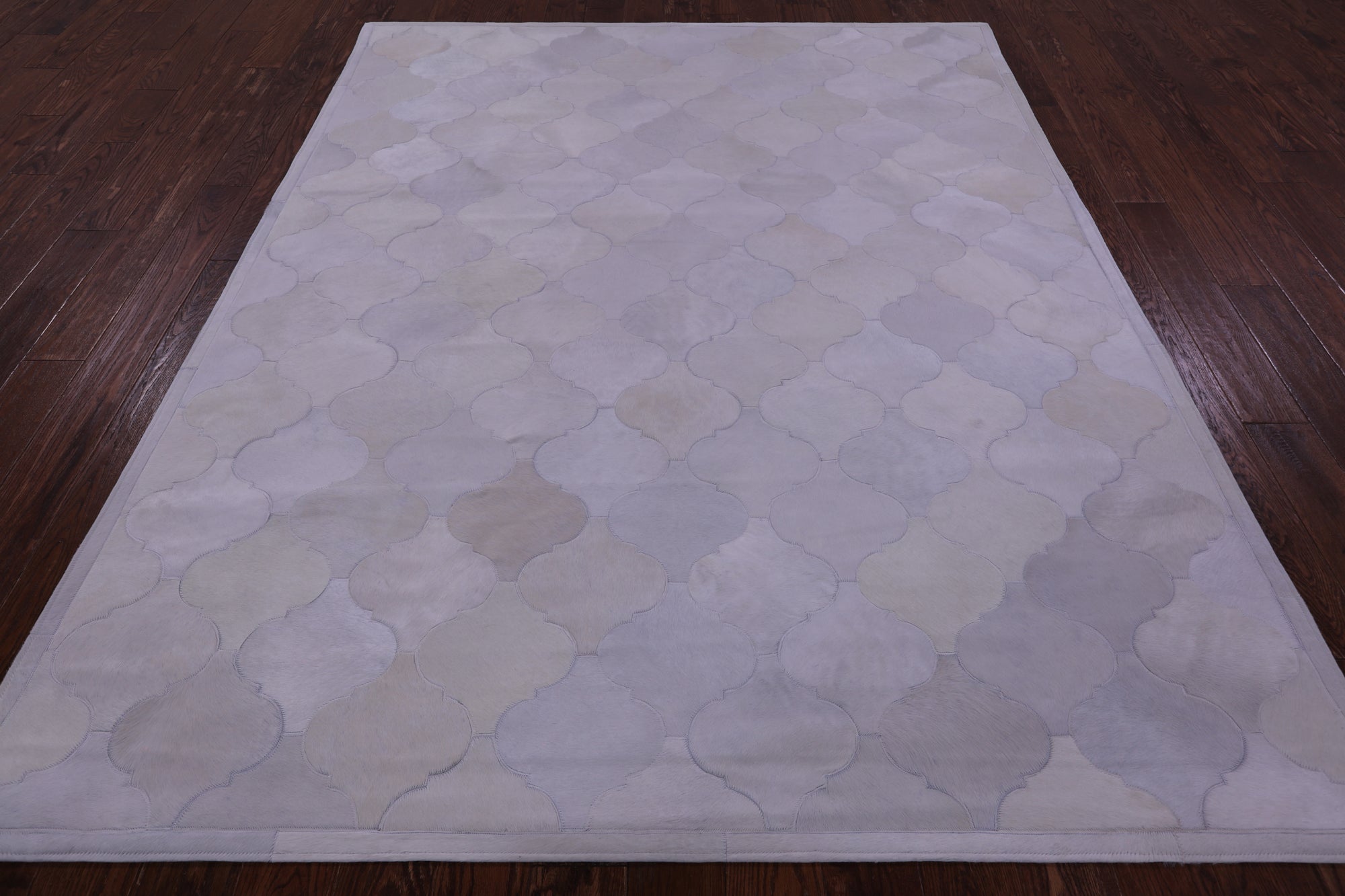 6' 8" X 8' 4" White Natural Cowhide Hand Stitched Rug - C3474