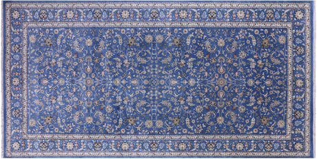Blue 9' 11" X 20' 4" Persian Nain Handmade Wool & Silk Rug - Q23744