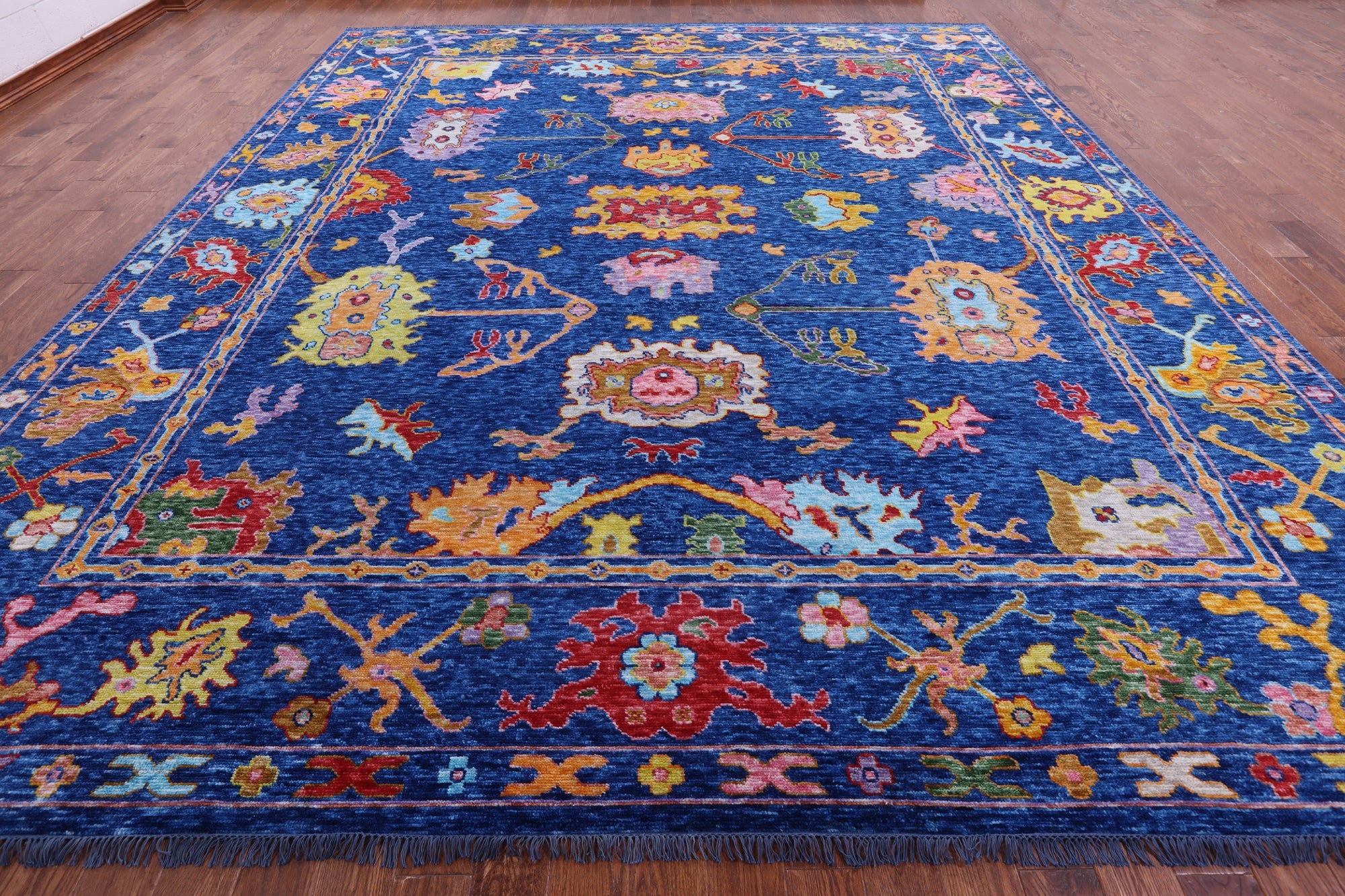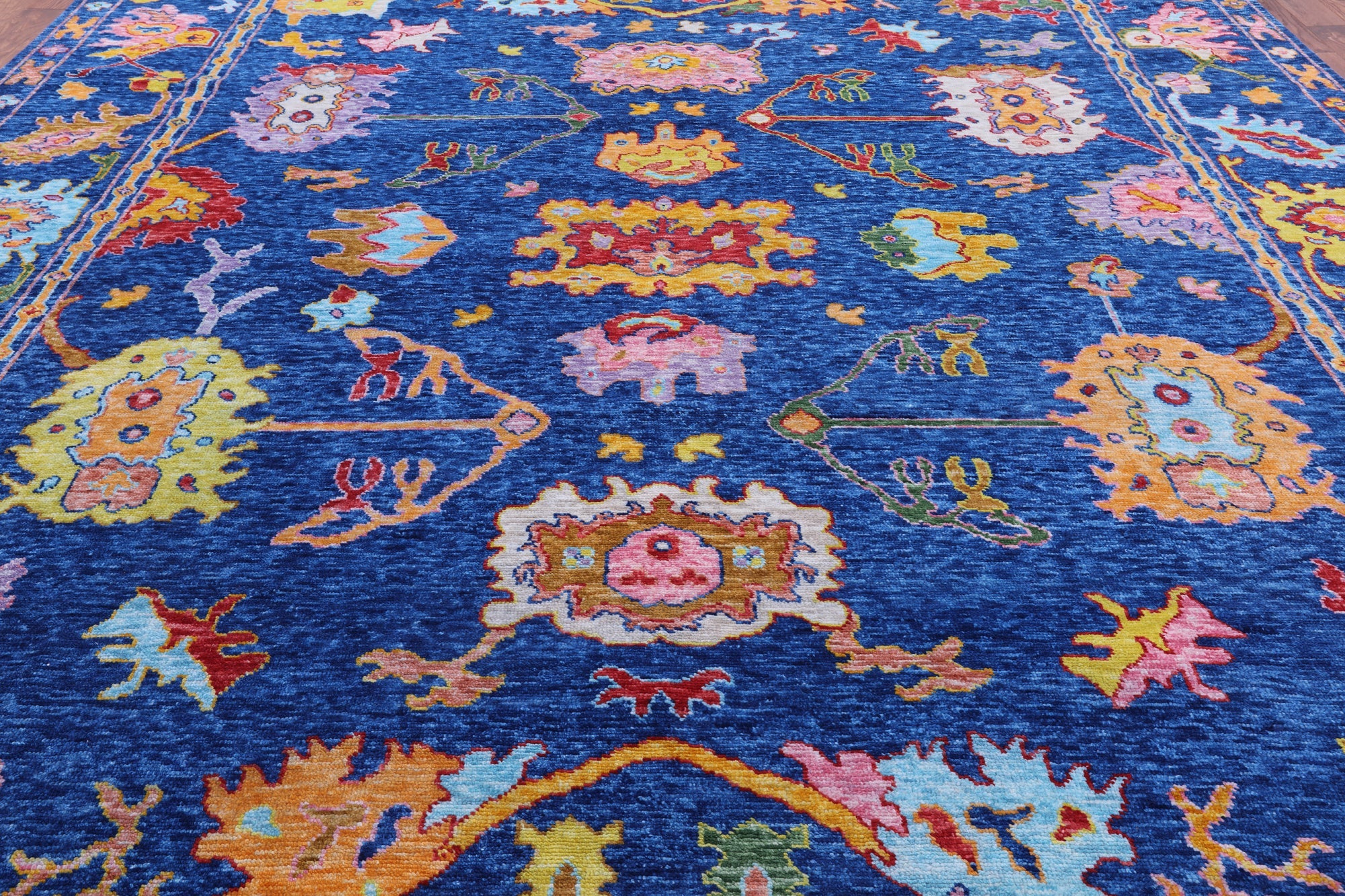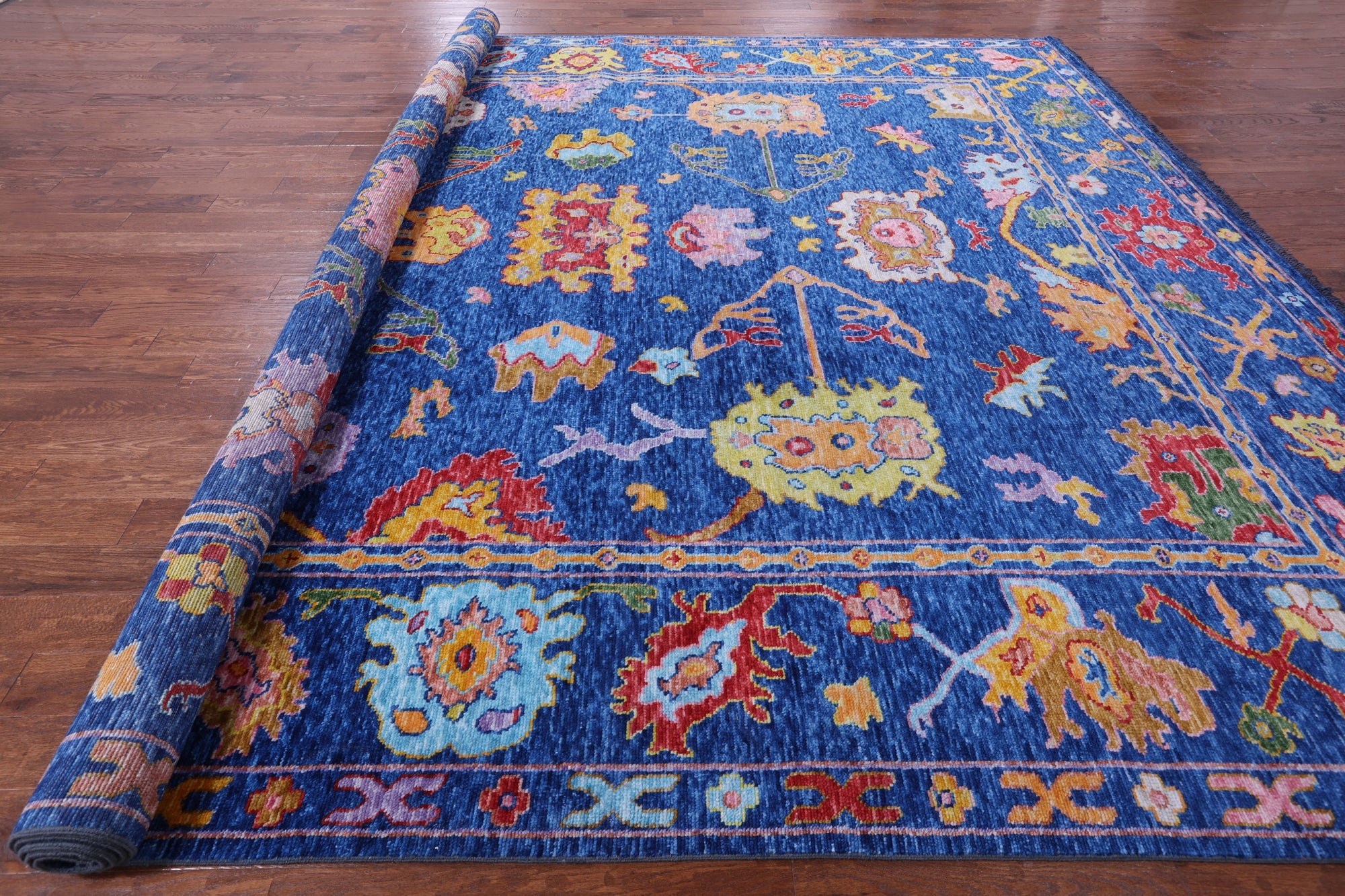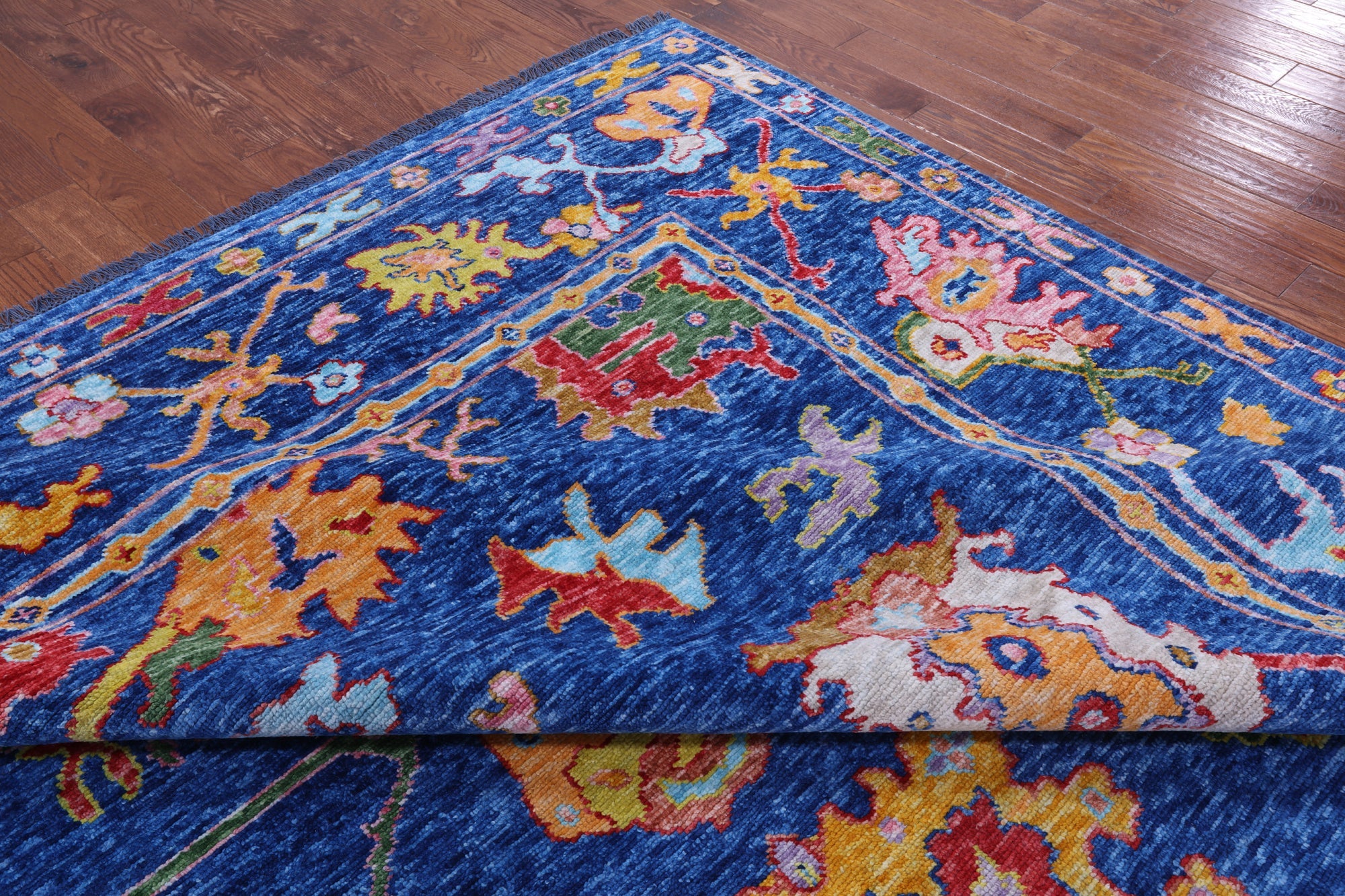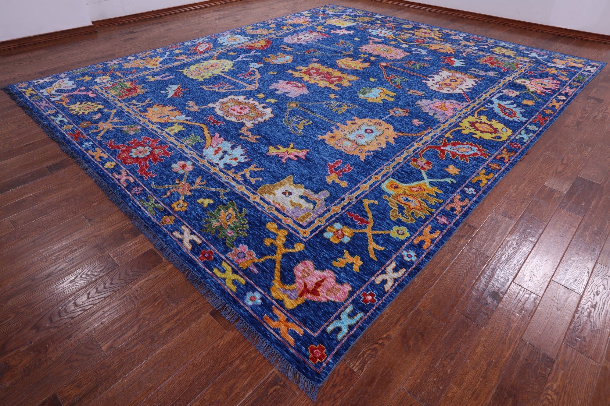 Blue Handmade Turkish Angora Oushak Wool Rug 12' 4" X 14' 8" - Q14770 is backordered and will ship as soon as it is back in stock.