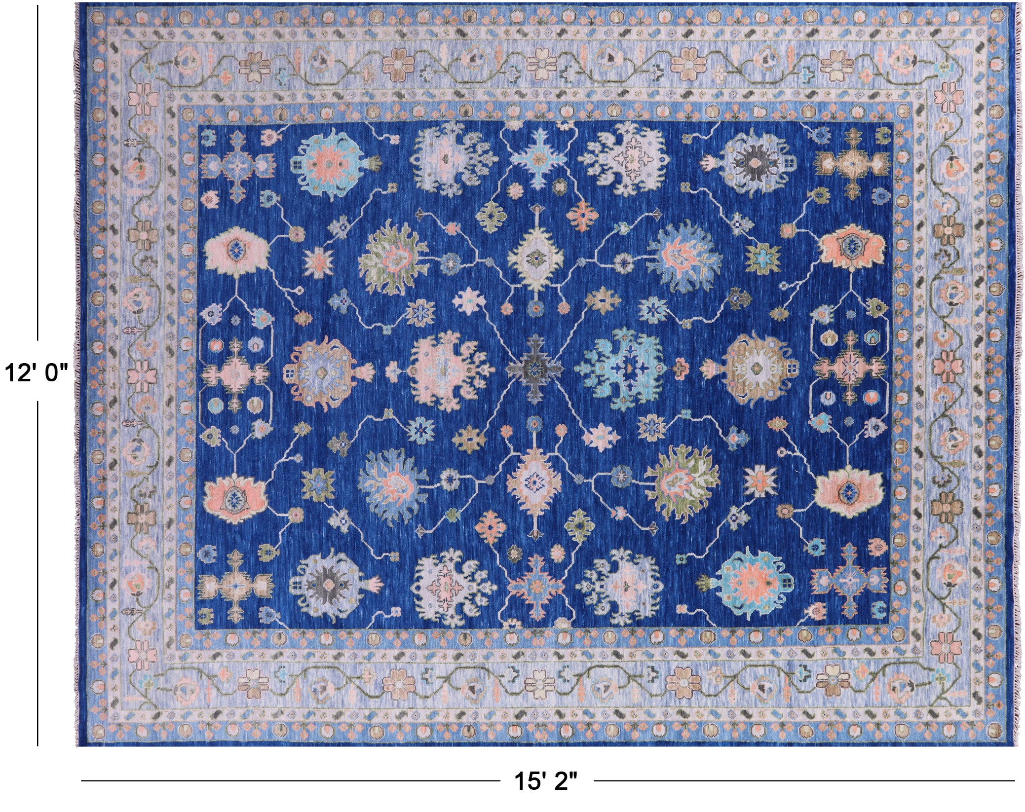 Blue 12' 0" X 15' 2" Handmade Turkish Angora Oushak Wool Rug - Q15416 is backordered and will ship as soon as it is back in stock.