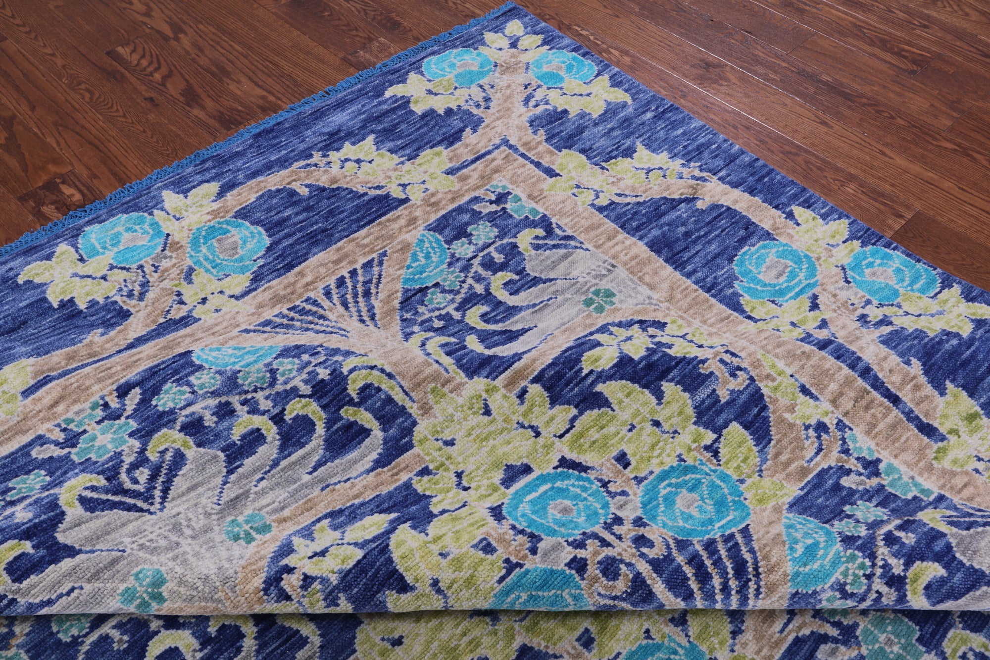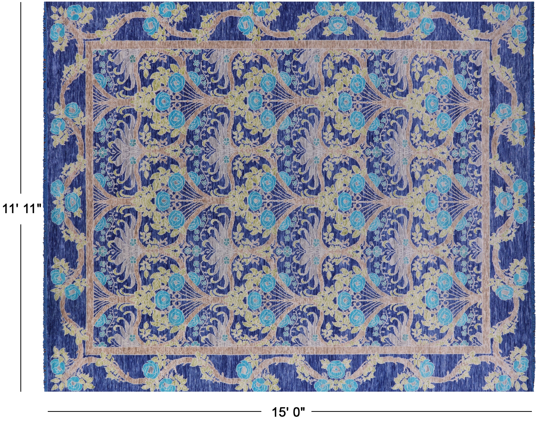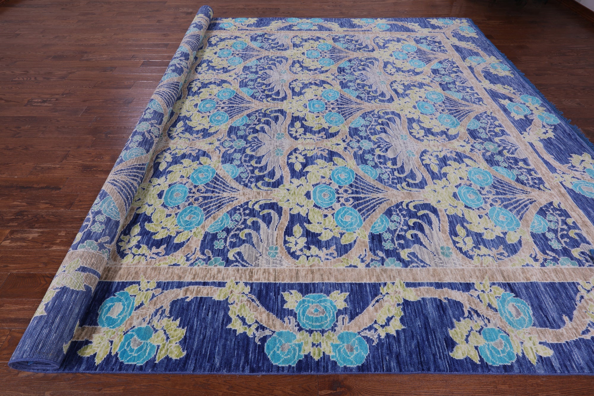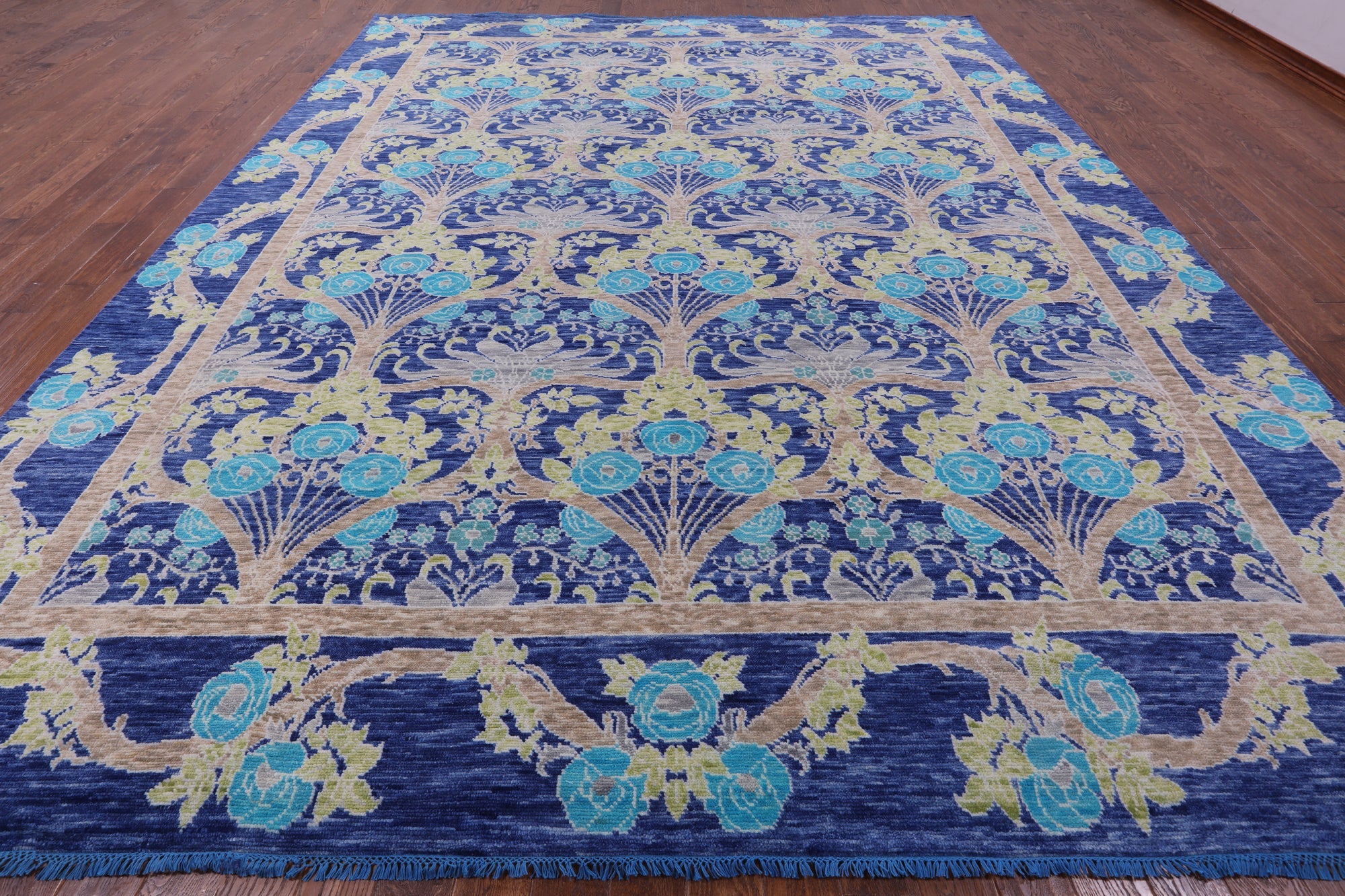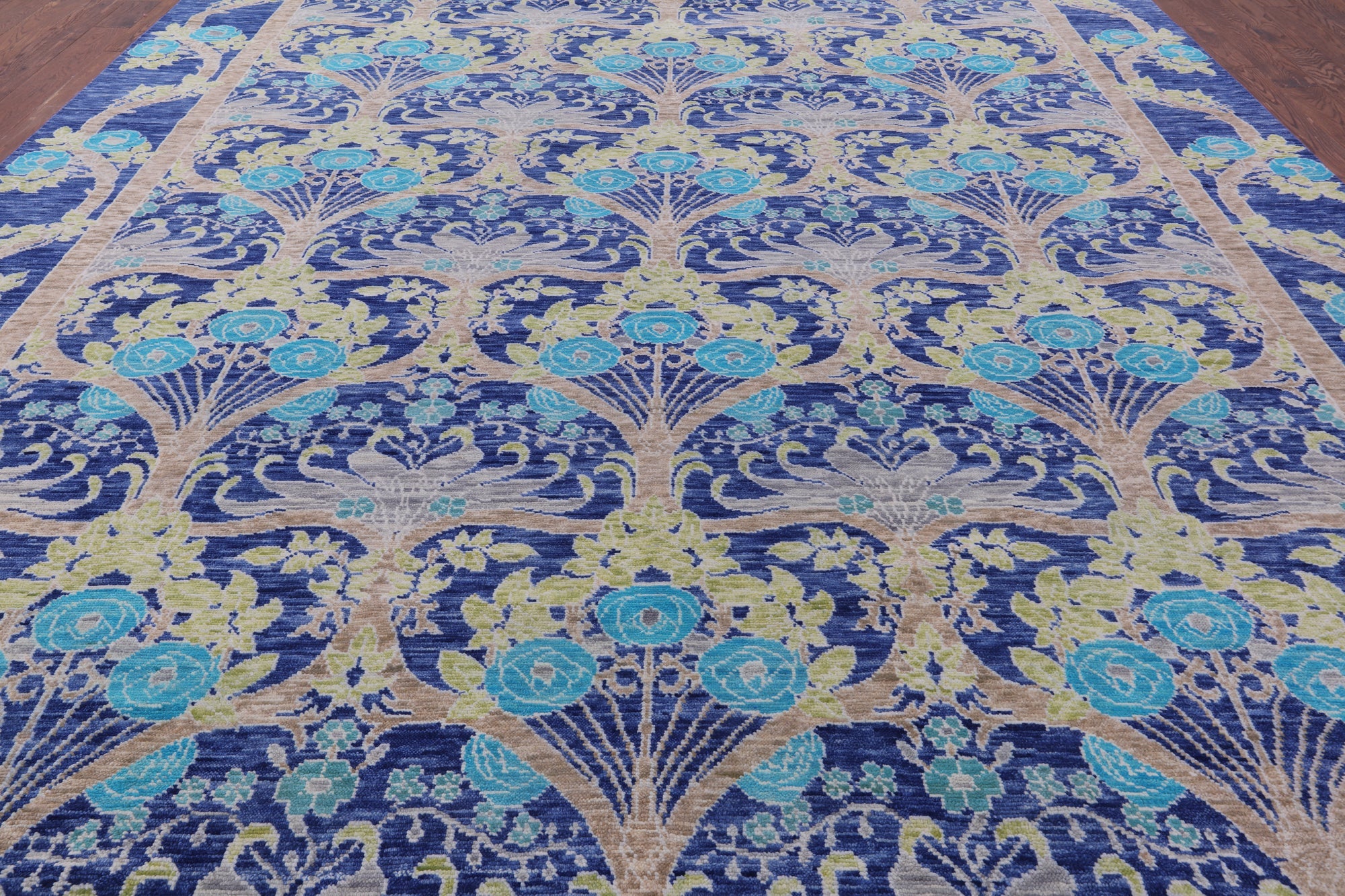 Blue 11' 11" X 15' 0" Handmade William Morris Wool Rug - Q15733 is backordered and will ship as soon as it is back in stock.