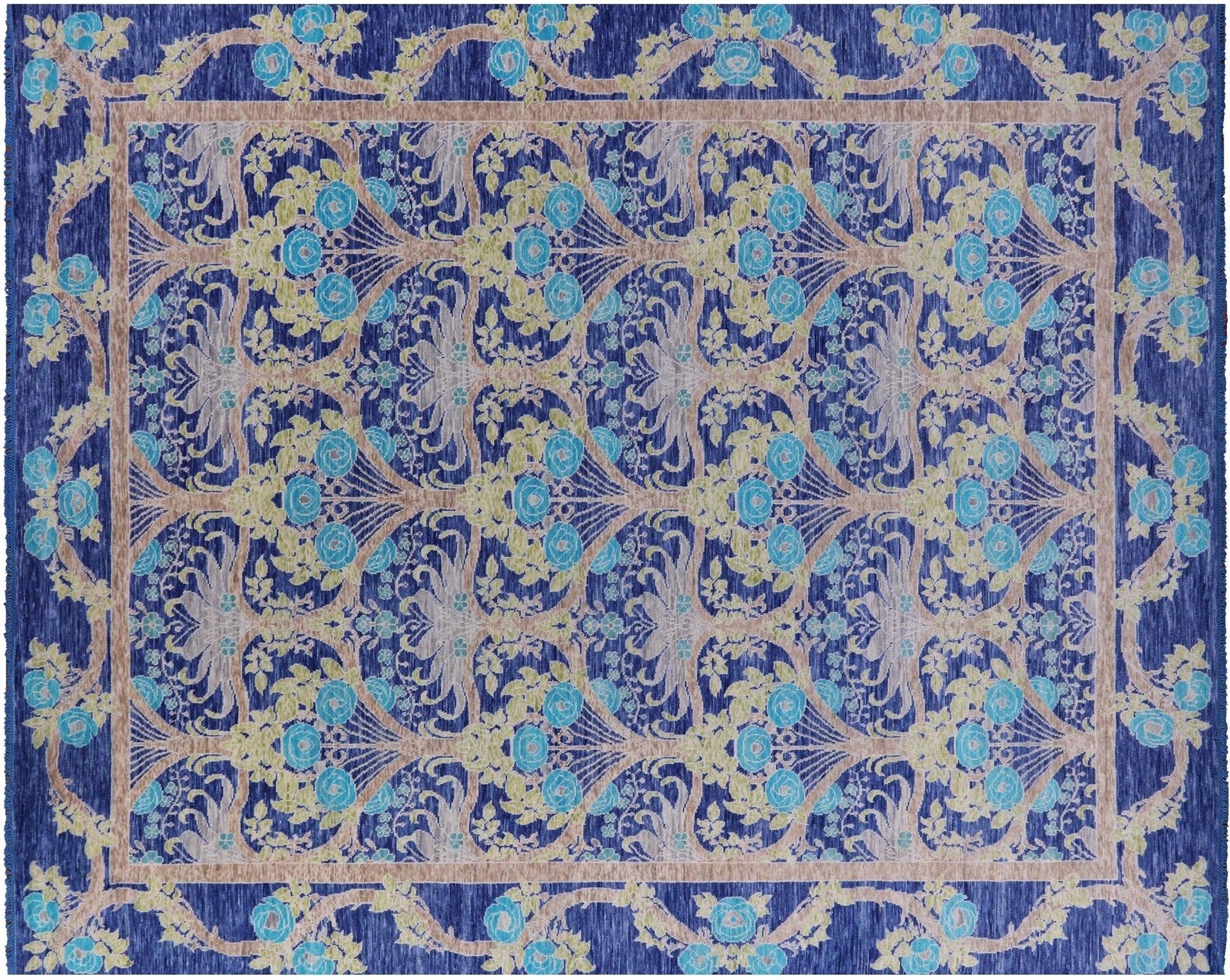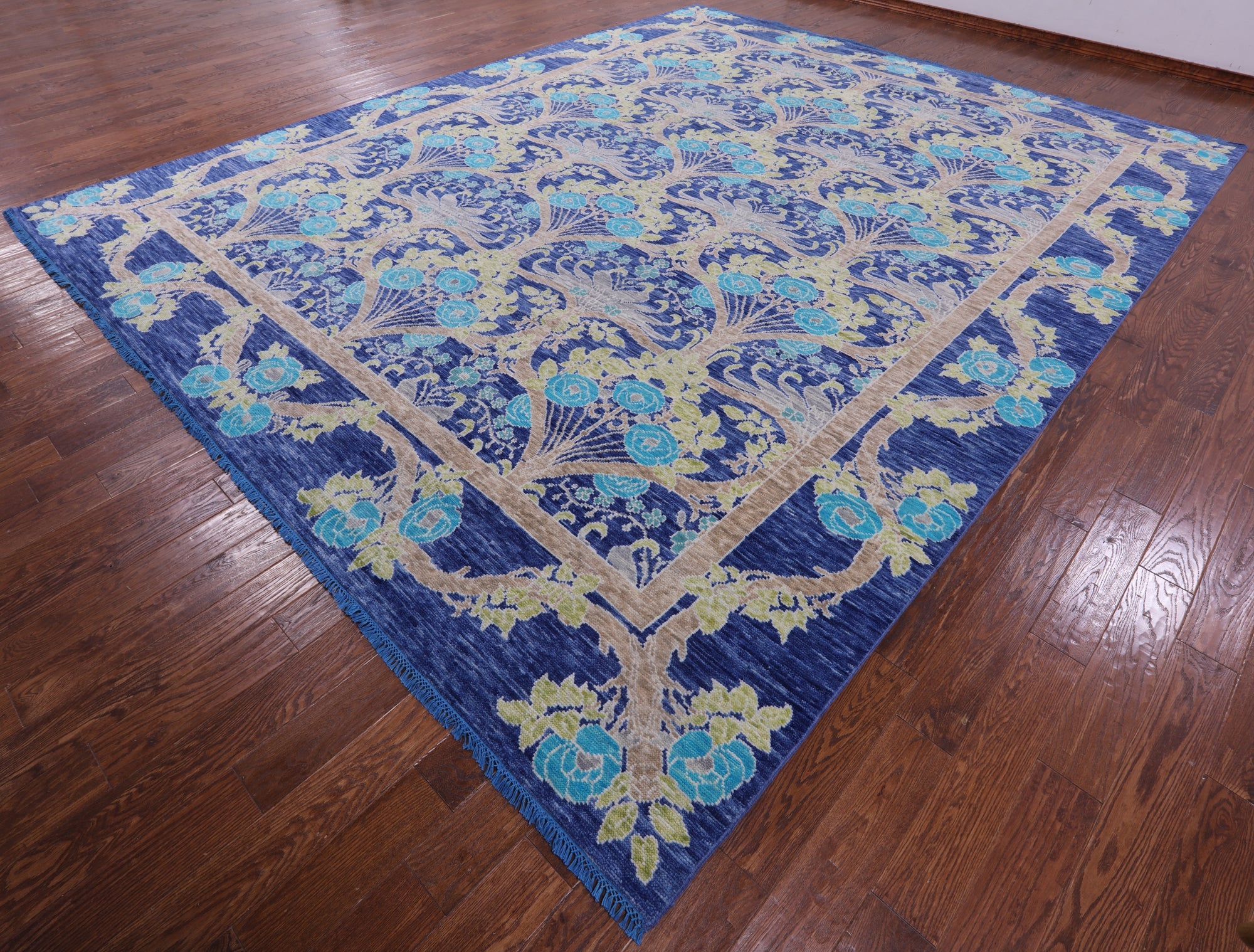 Blue 11' 11" X 15' 0" Handmade William Morris Wool Rug - Q15733