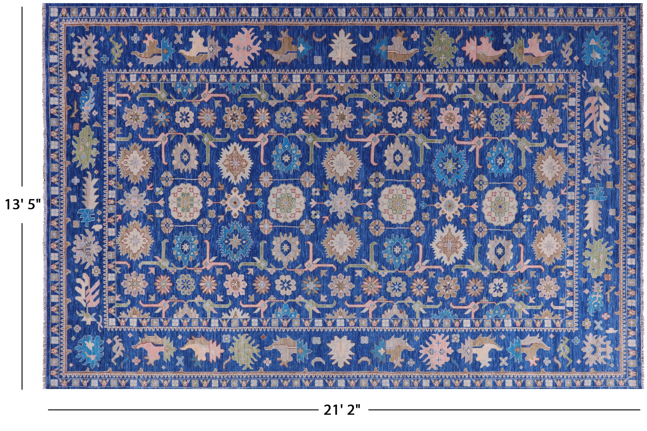 Blue 13' 5" X 21' 2" Turkish Angora Oushak Hand Knotted Wool Rug - Q20181