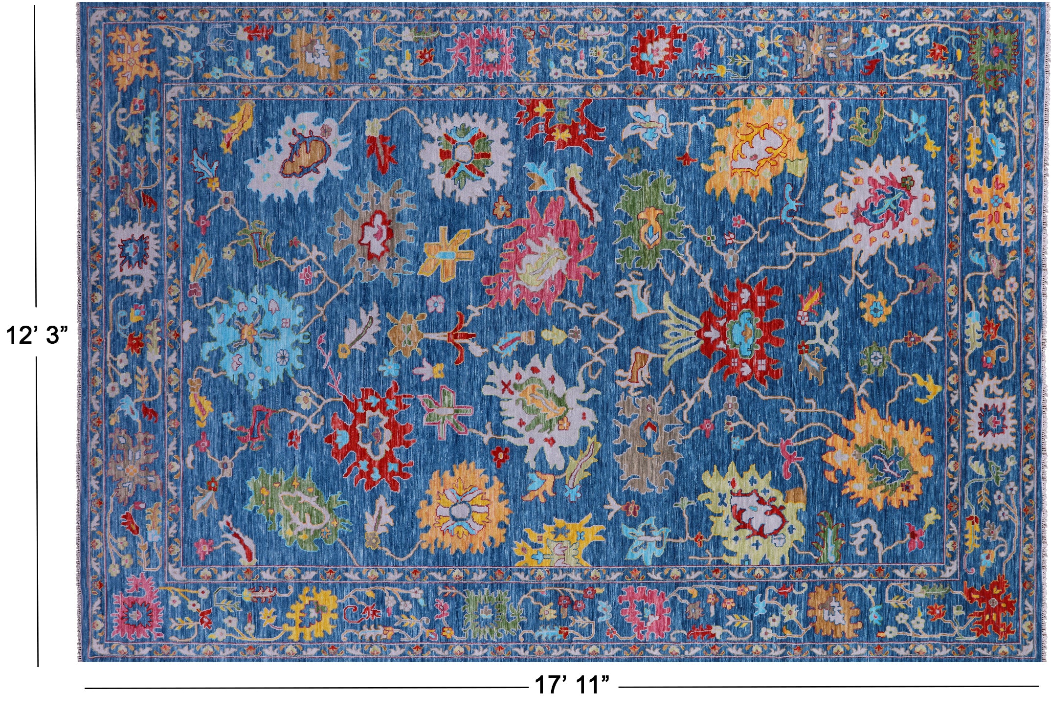 Blue Turkish Angora Oushak Handmade Rug 12' 3" X 17' 11" - Q22420