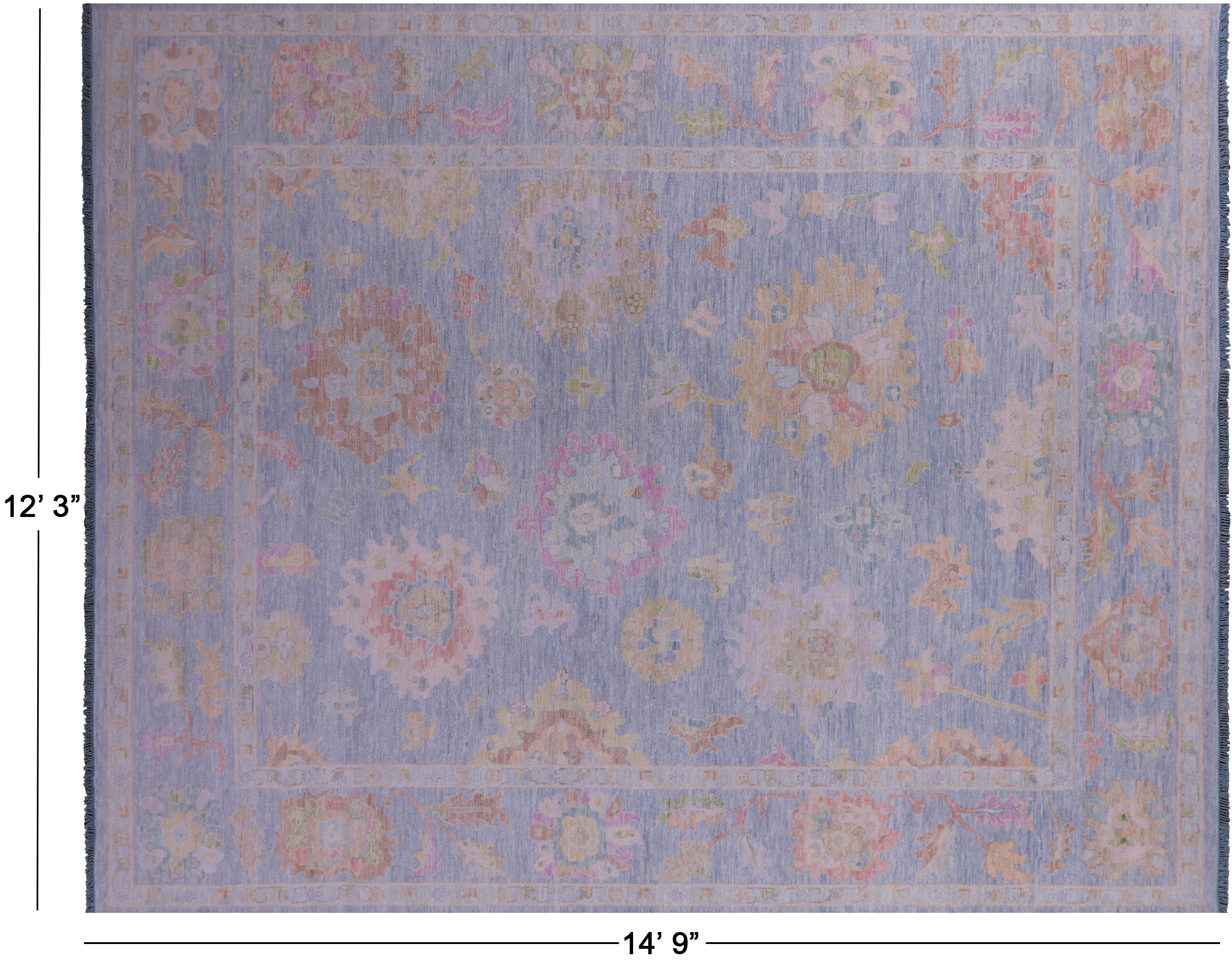 Blue 12' 3" X 14' 9" Turkish Angora Oushak Handmade Wool Rug - Q21210