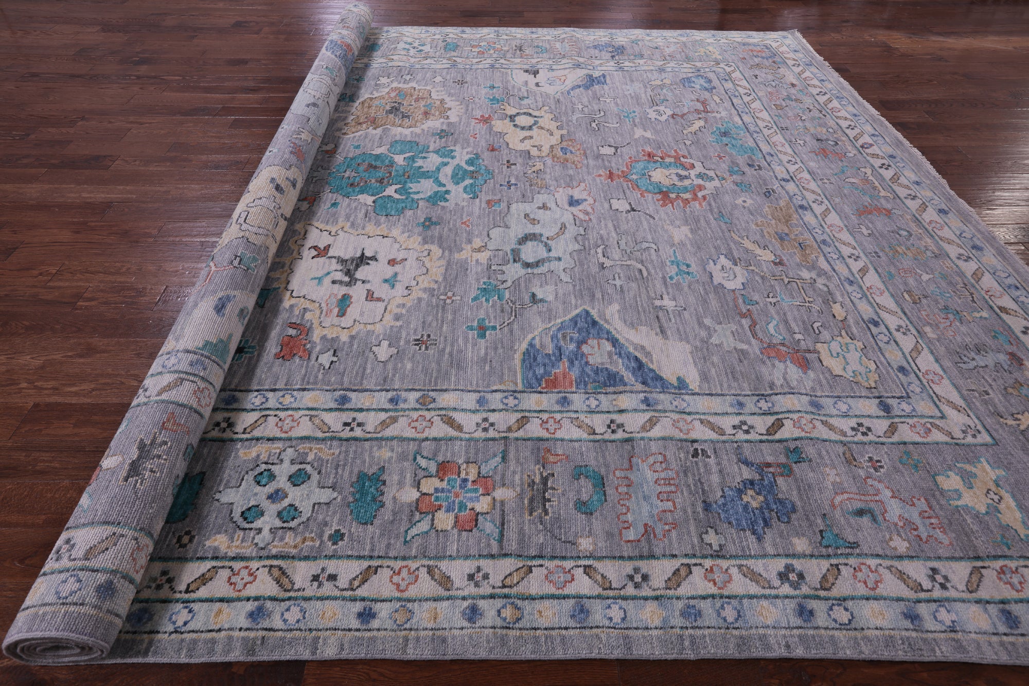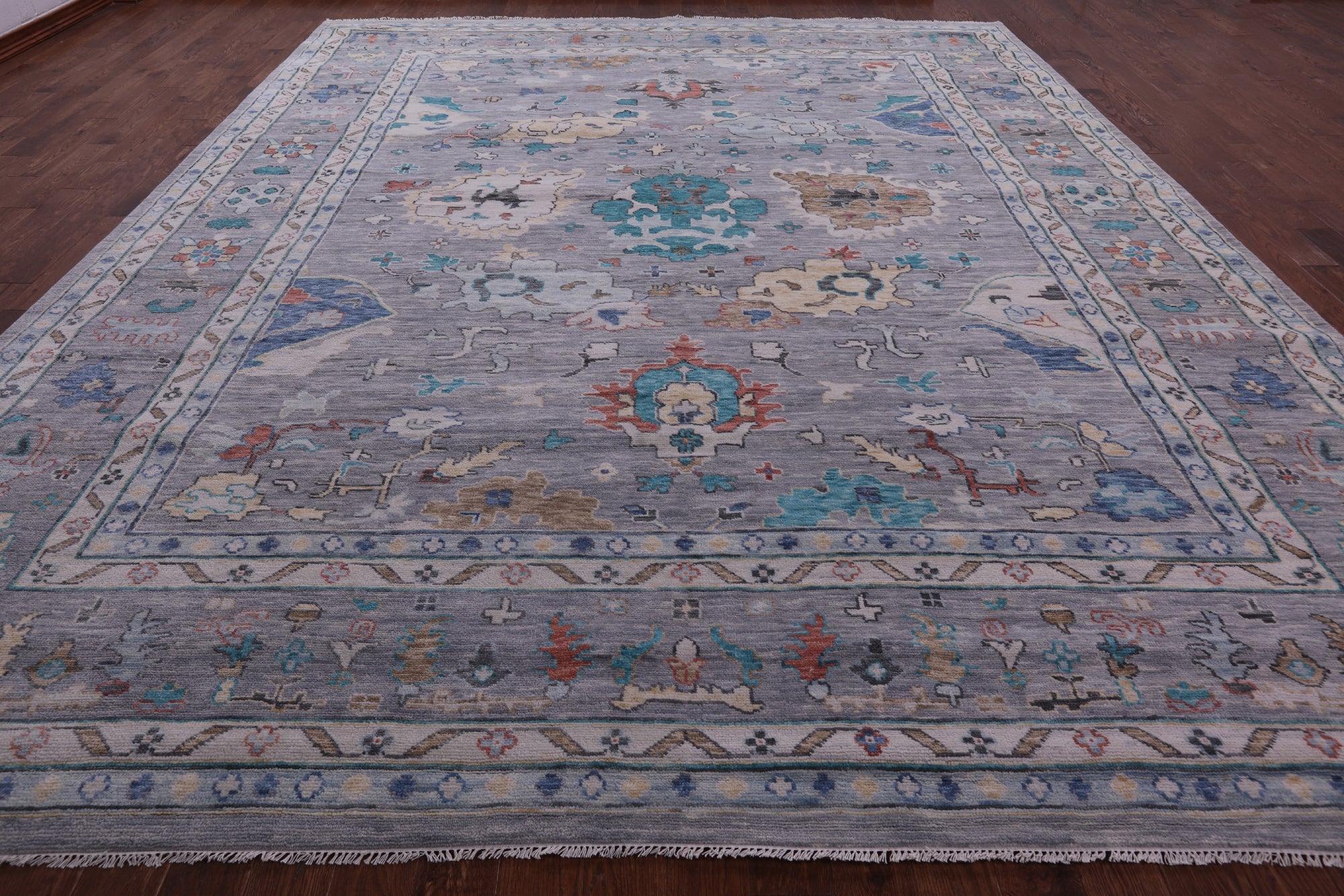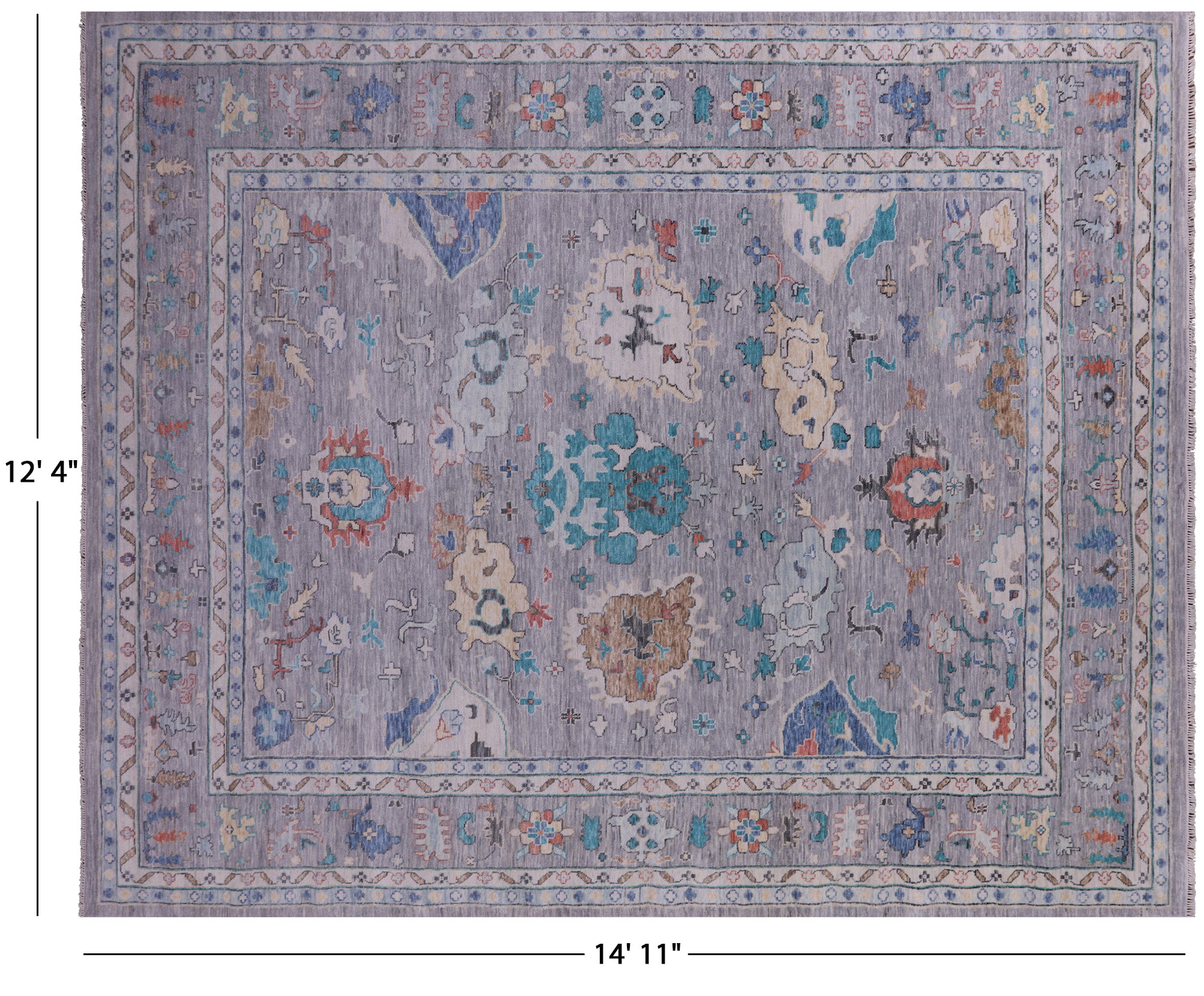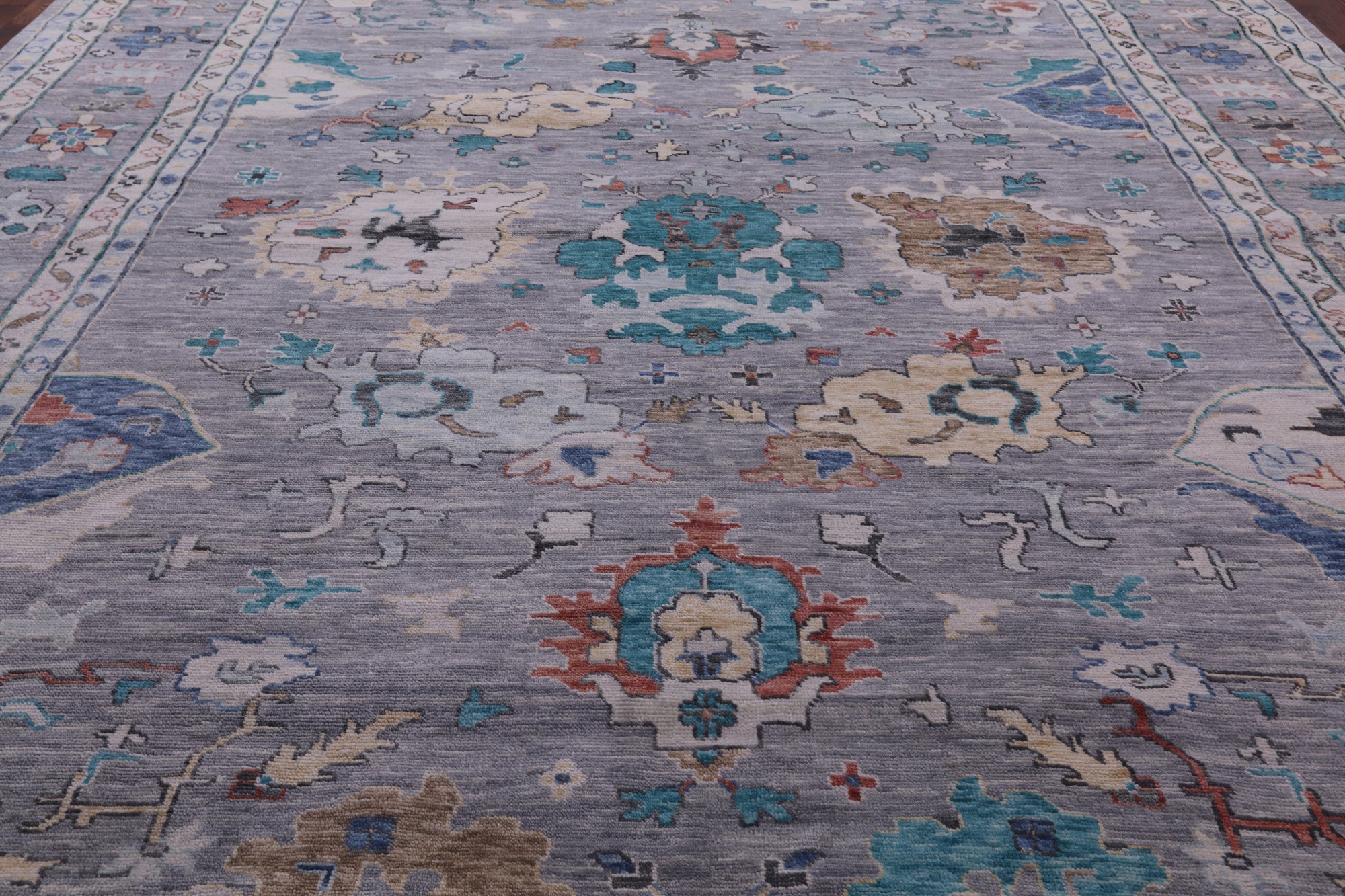 Grey 12' 4" X 14' 11" Hand-Knotted Turkish Angora Oushak Wool Rug - Q19901 is backordered and will ship as soon as it is back in stock.