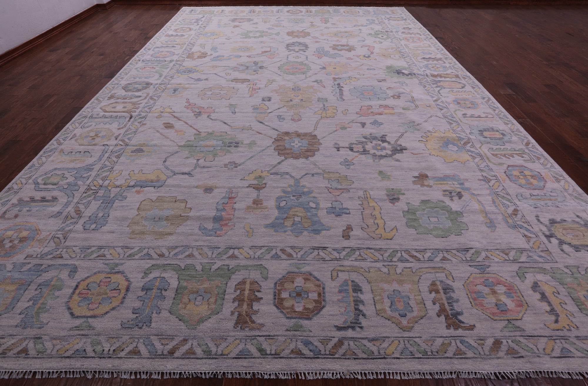 Grey Hand Knotted Turkish Angora Oushak Wool Rug 12' 2" X 18' 2" - Q21451 is backordered and will ship as soon as it is back in stock.