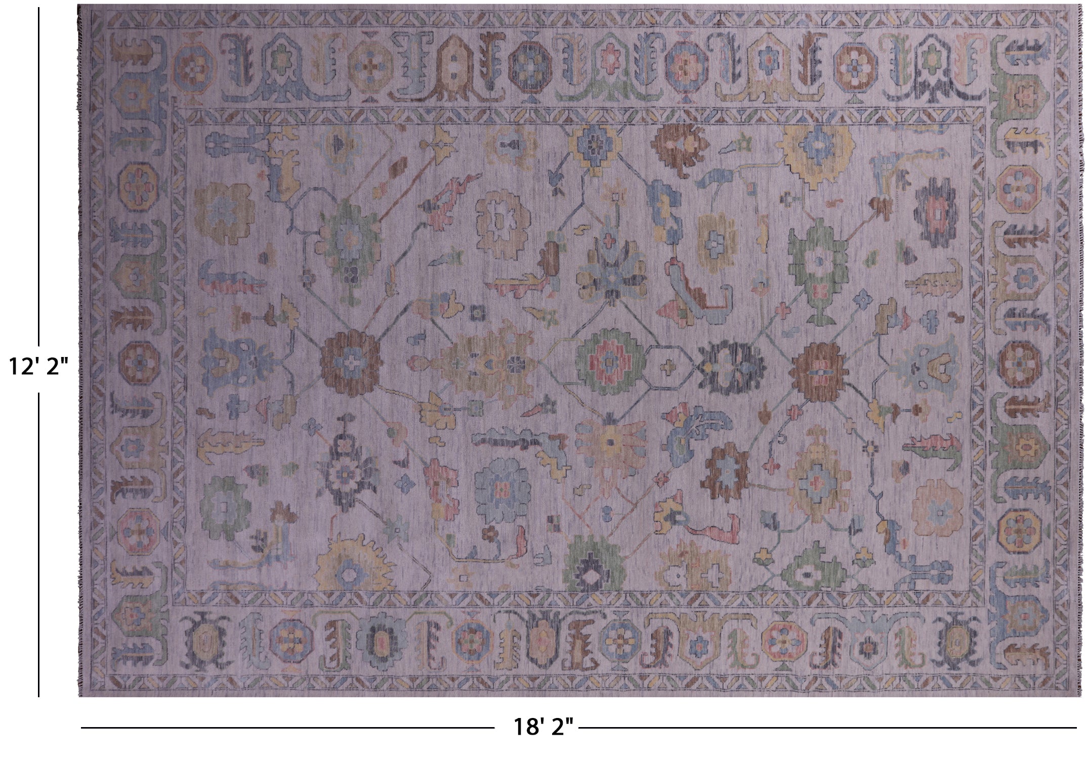 Grey Hand Knotted Turkish Angora Oushak Wool Rug 12' 2" X 18' 2" - Q21451