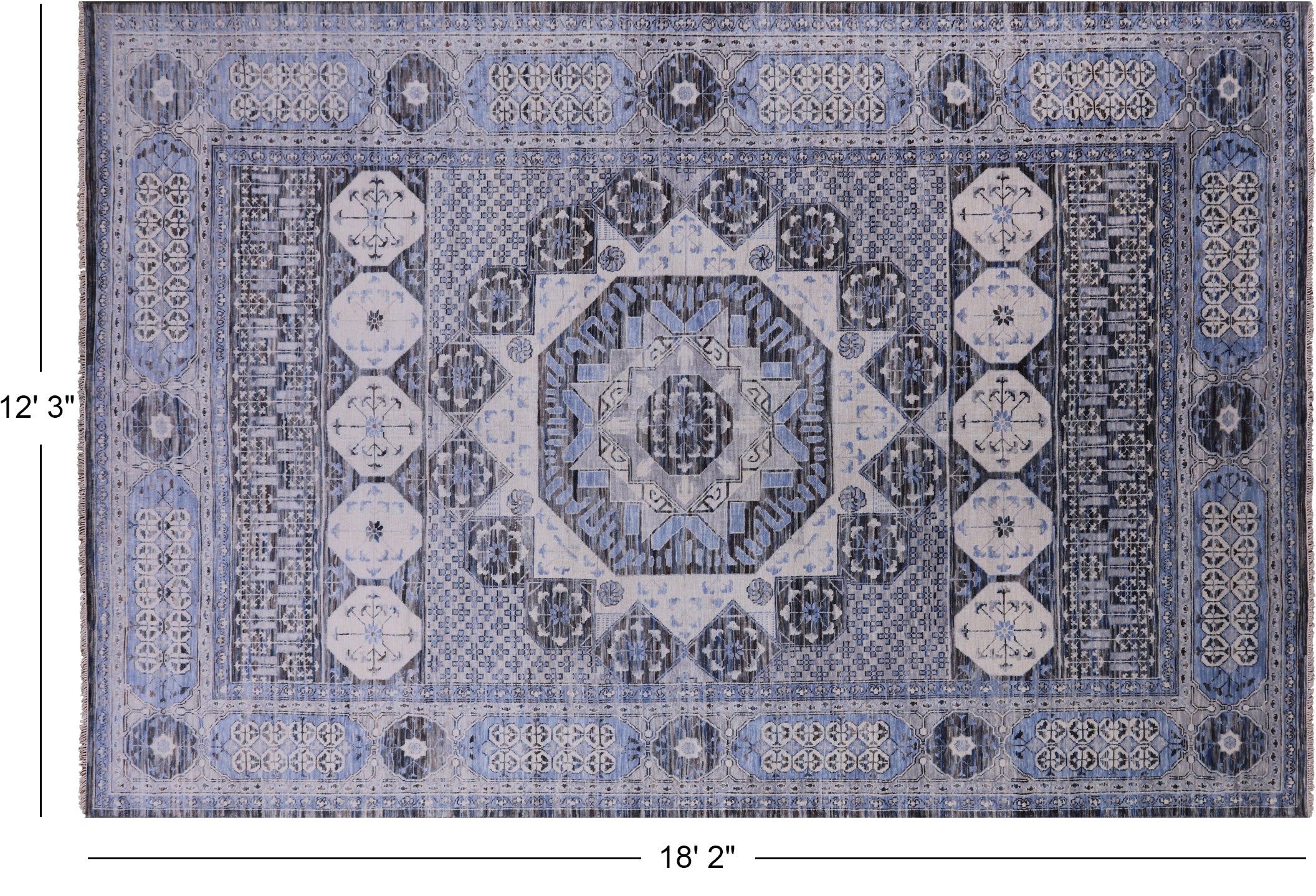 Grey 12' 3" X 18' 2" Mamluk Hand Knotted Wool Rug - Q3986 is backordered and will ship as soon as it is back in stock.
