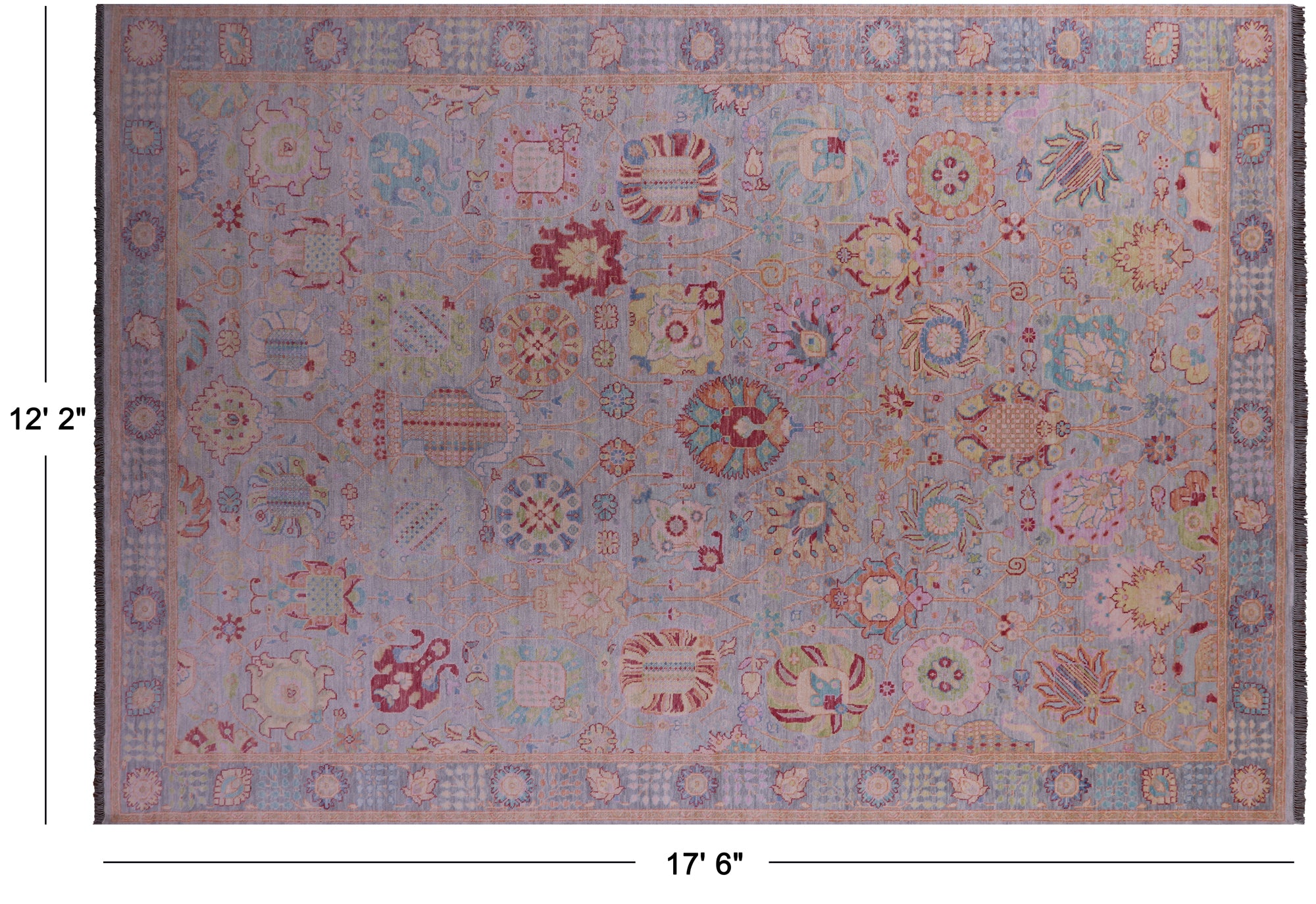 Grey 12' 2" X 17' 6" Turkish Angora Oushak Hand Knotted Rug - Q22638