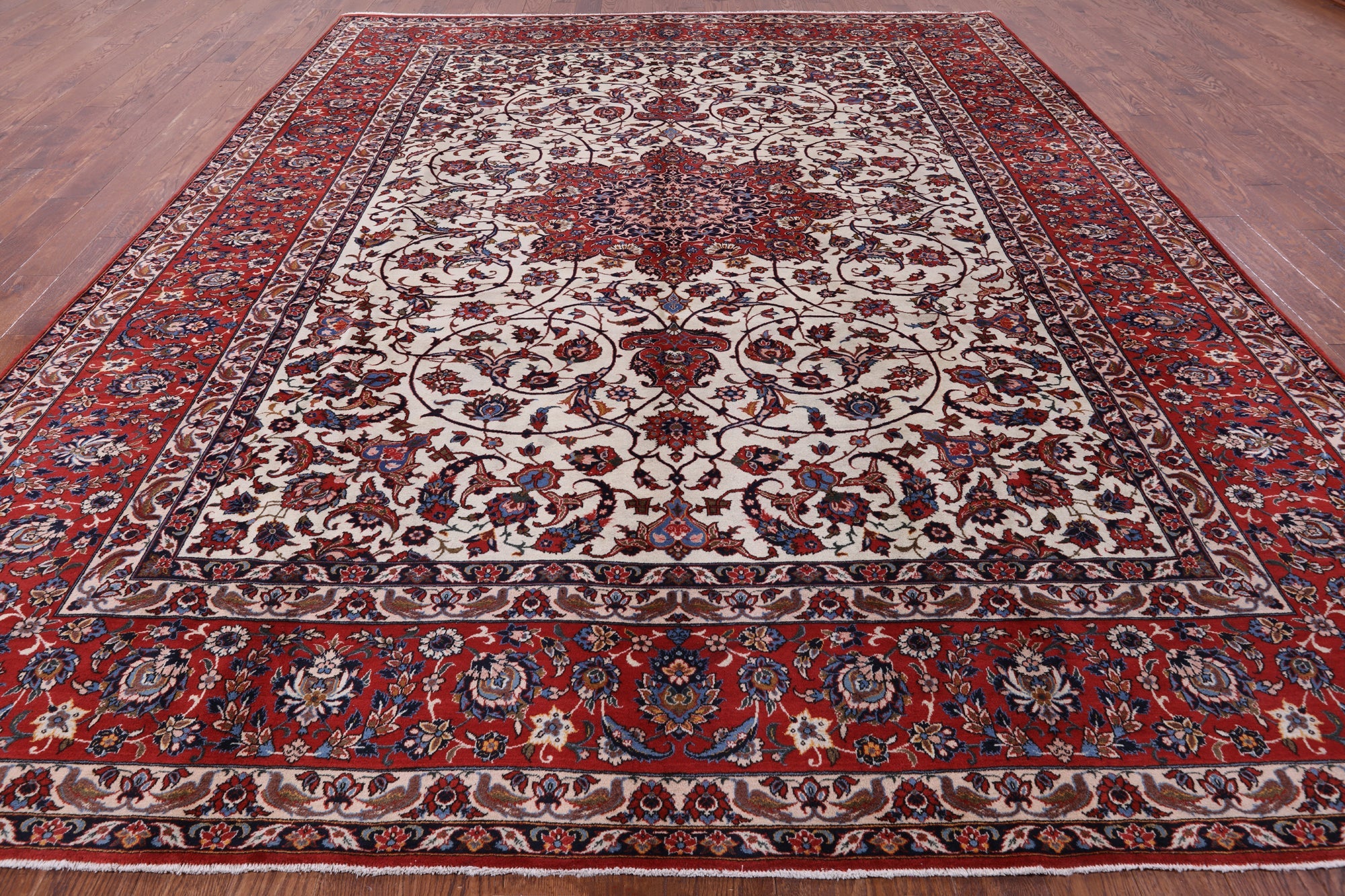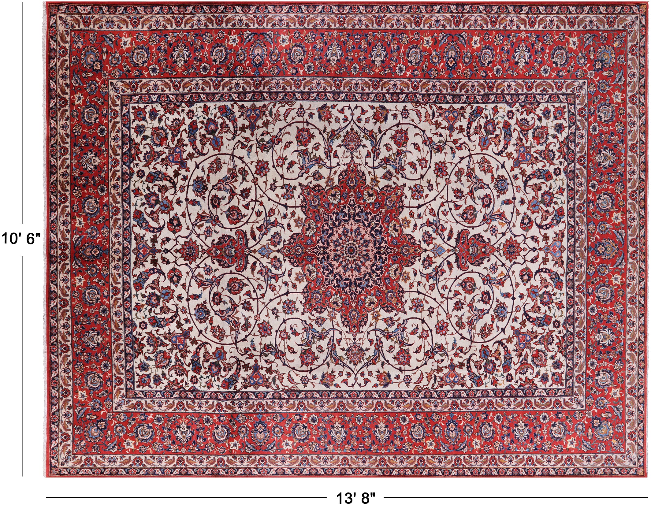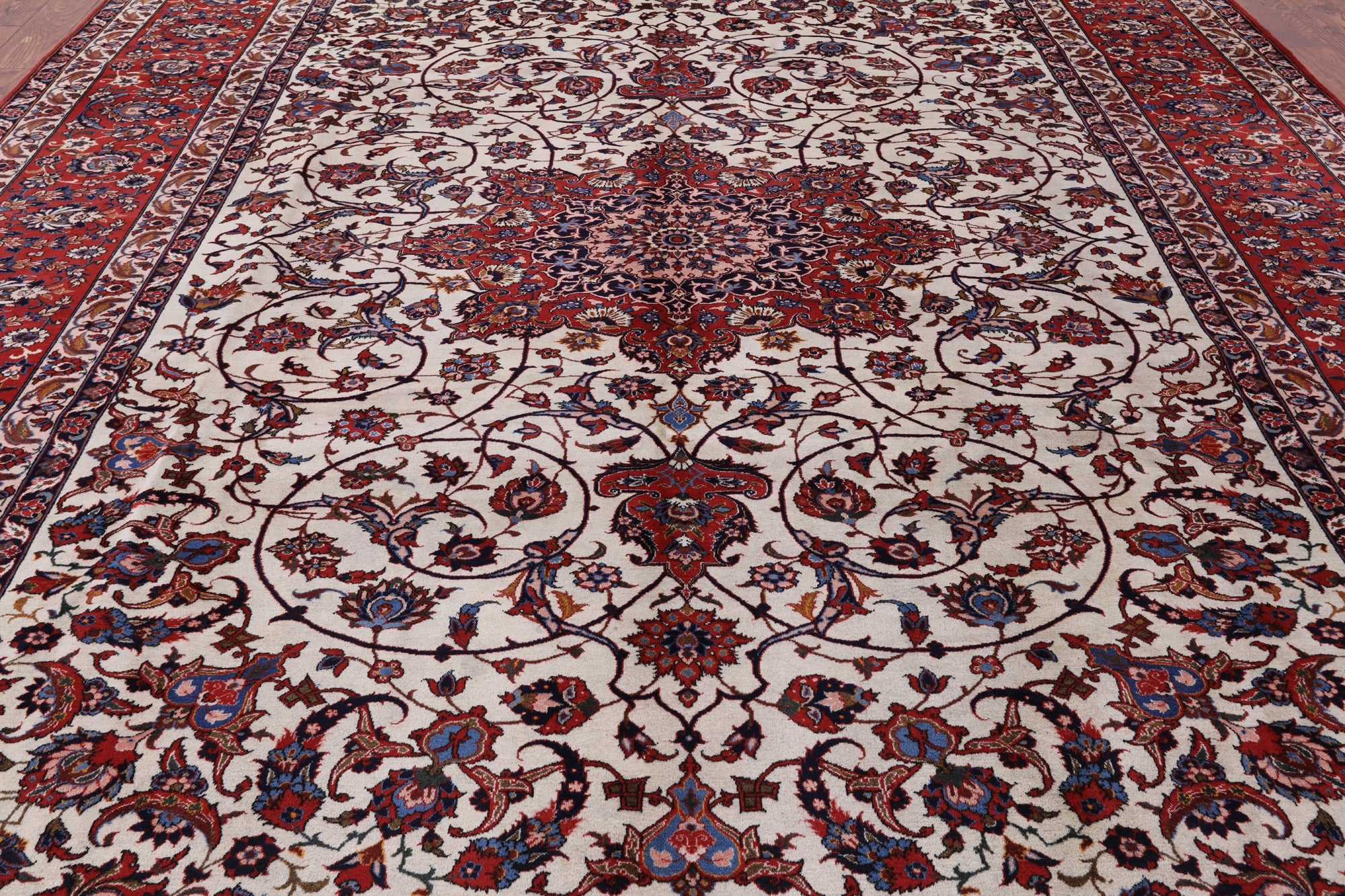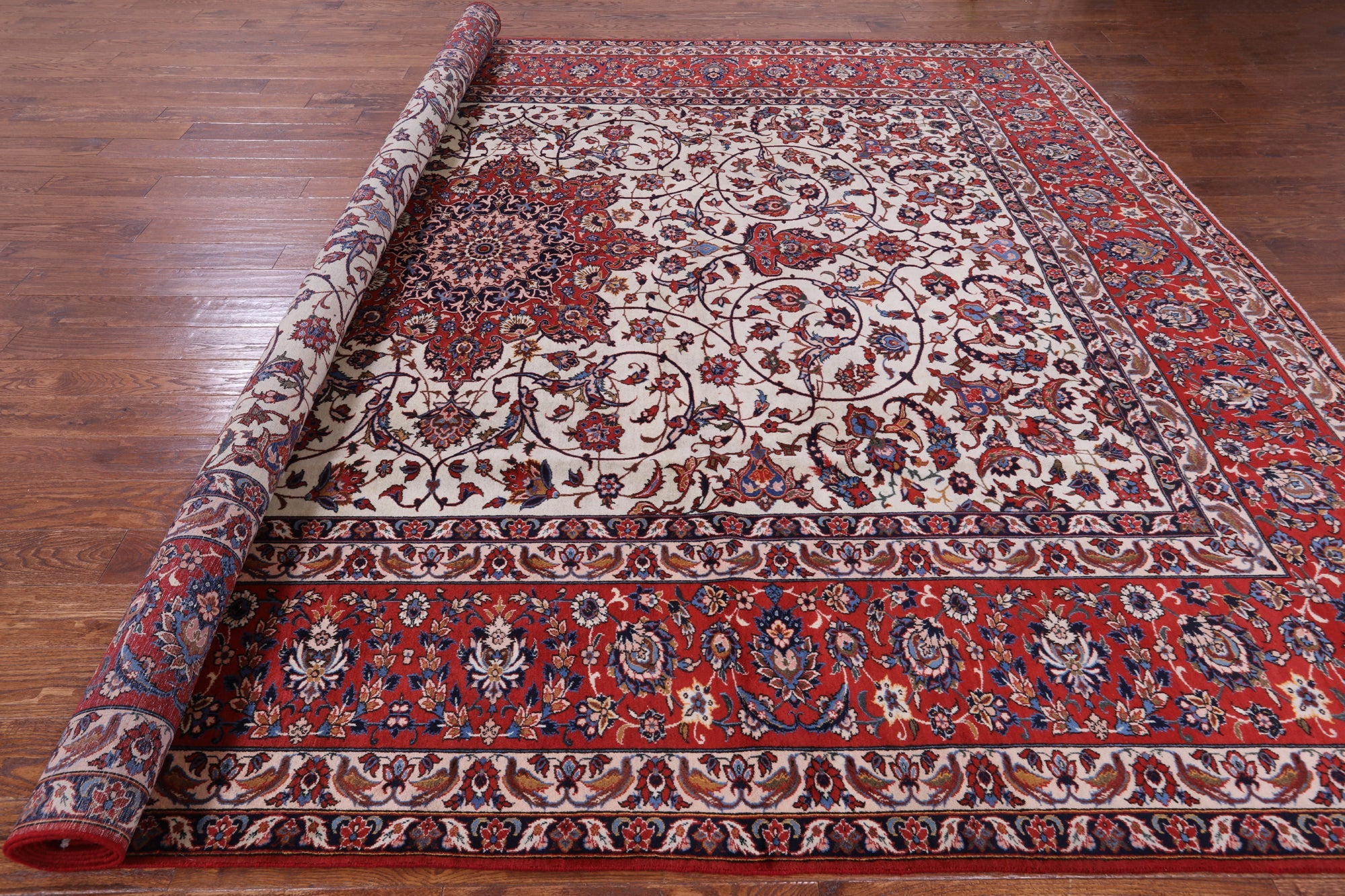 Ivory Antique Persian Isfahan Cotton Foundation Excellent Condition Area Rug 10' 6" X 13' 8" - S1444 is backordered and will ship as soon as it is back in stock.