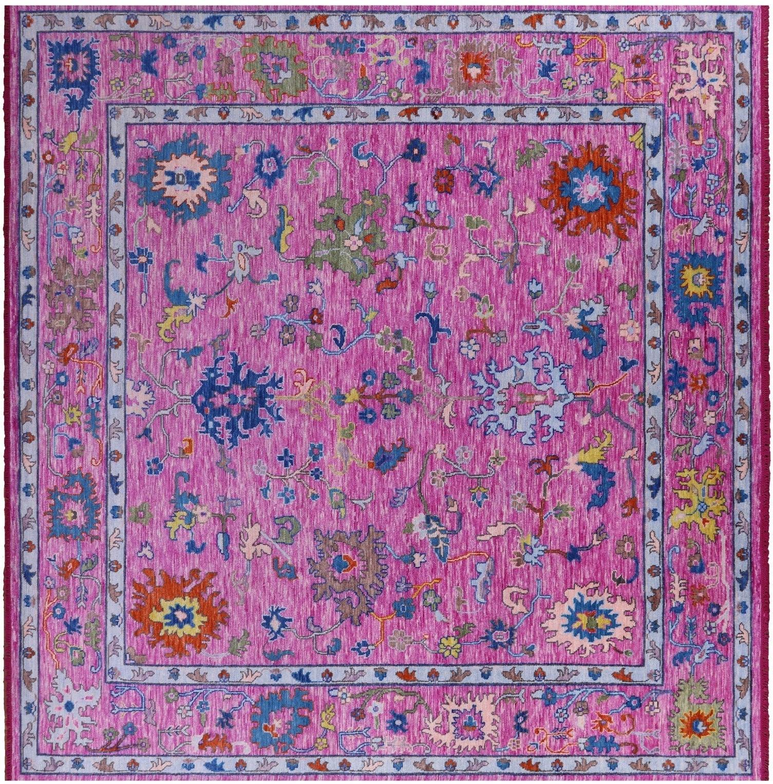 Pink 12' Square Hand Knotted Turkish Angora Oushak Wool Rug - Q13547 is backordered and will ship as soon as it is back in stock.