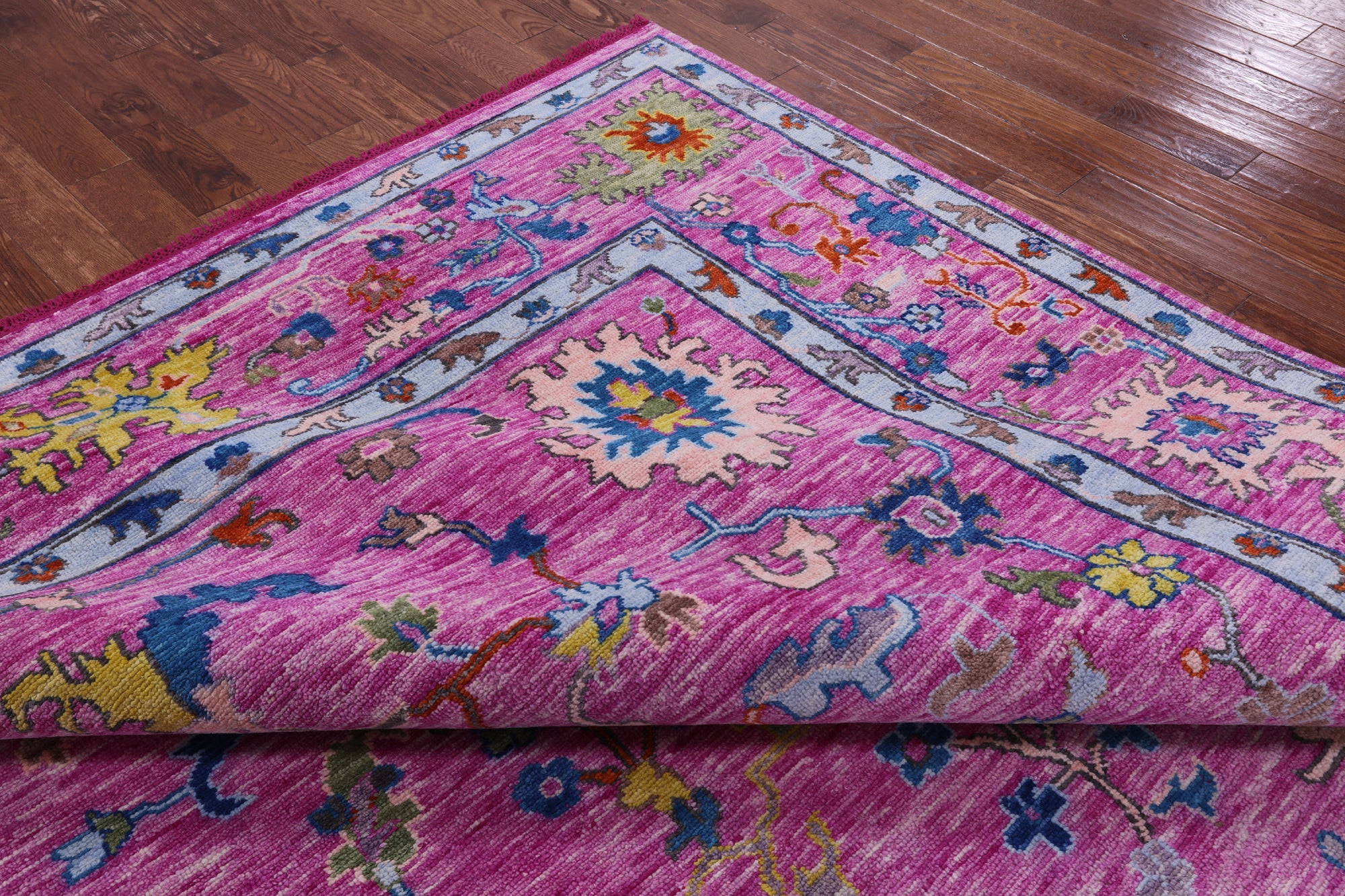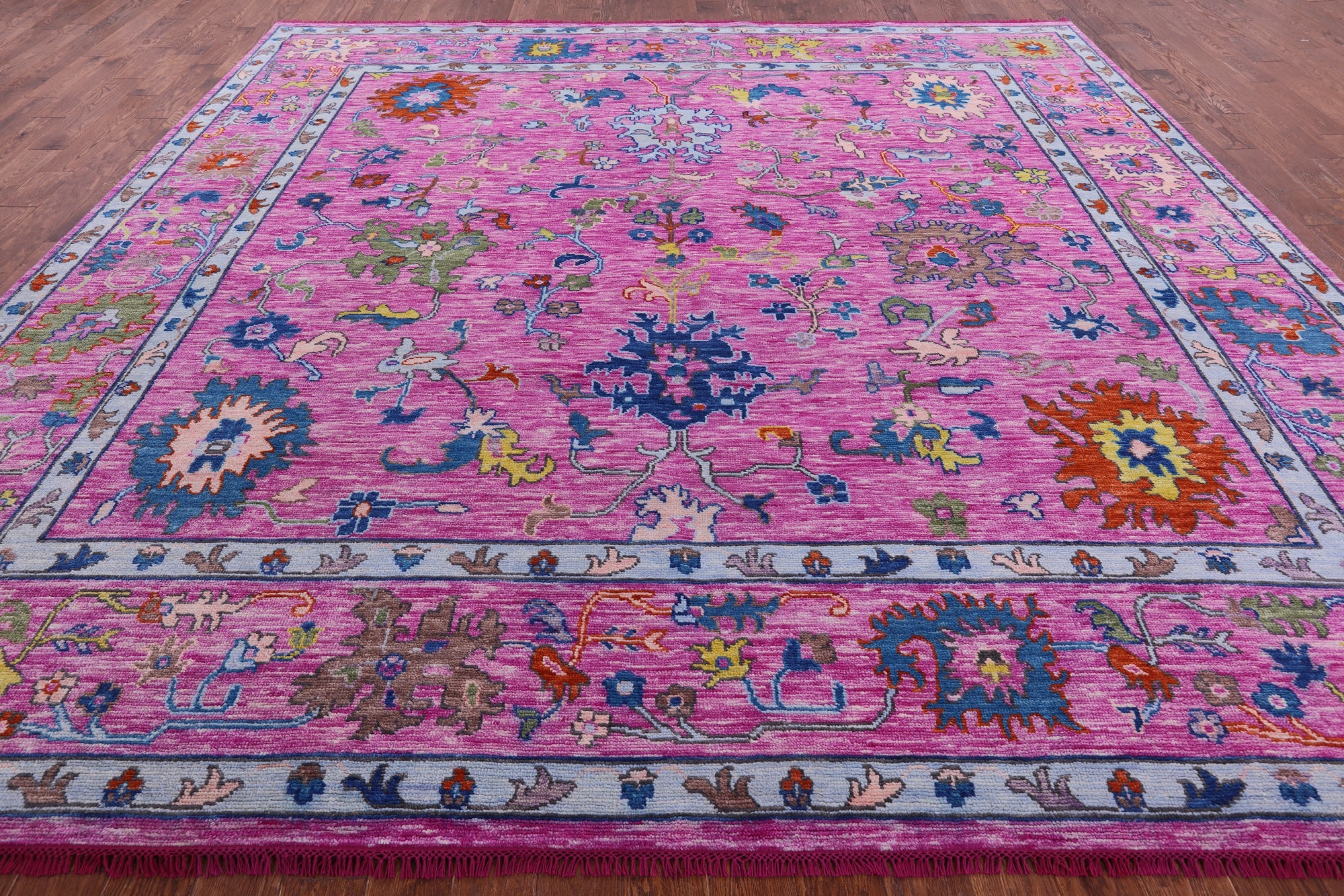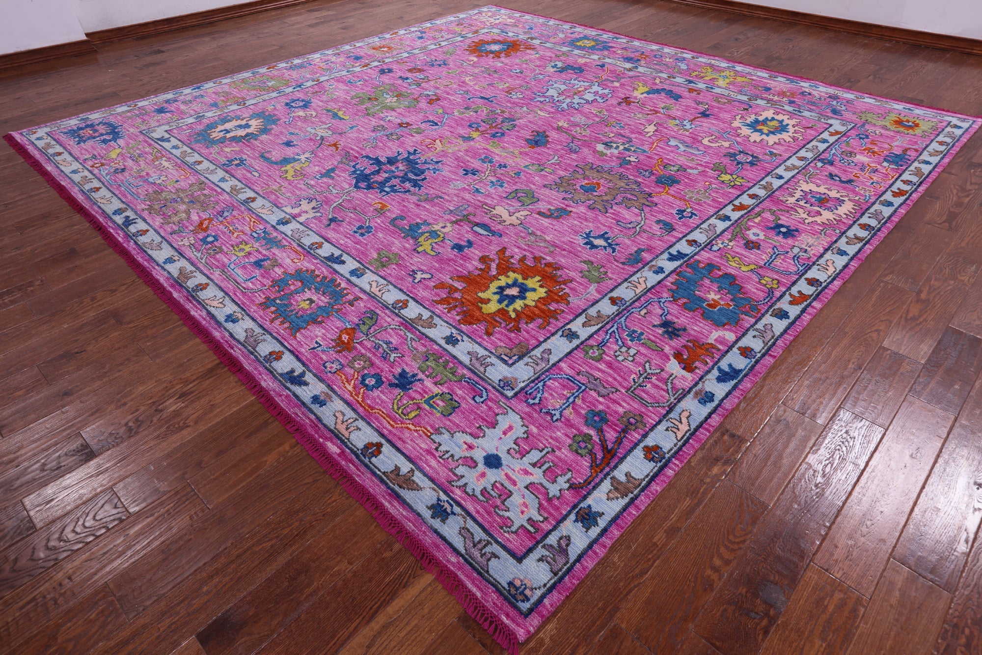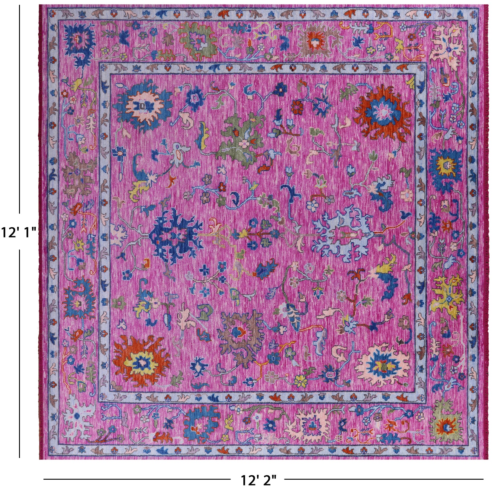 Pink 12' Square Hand Knotted Turkish Angora Oushak Wool Rug - Q13547
