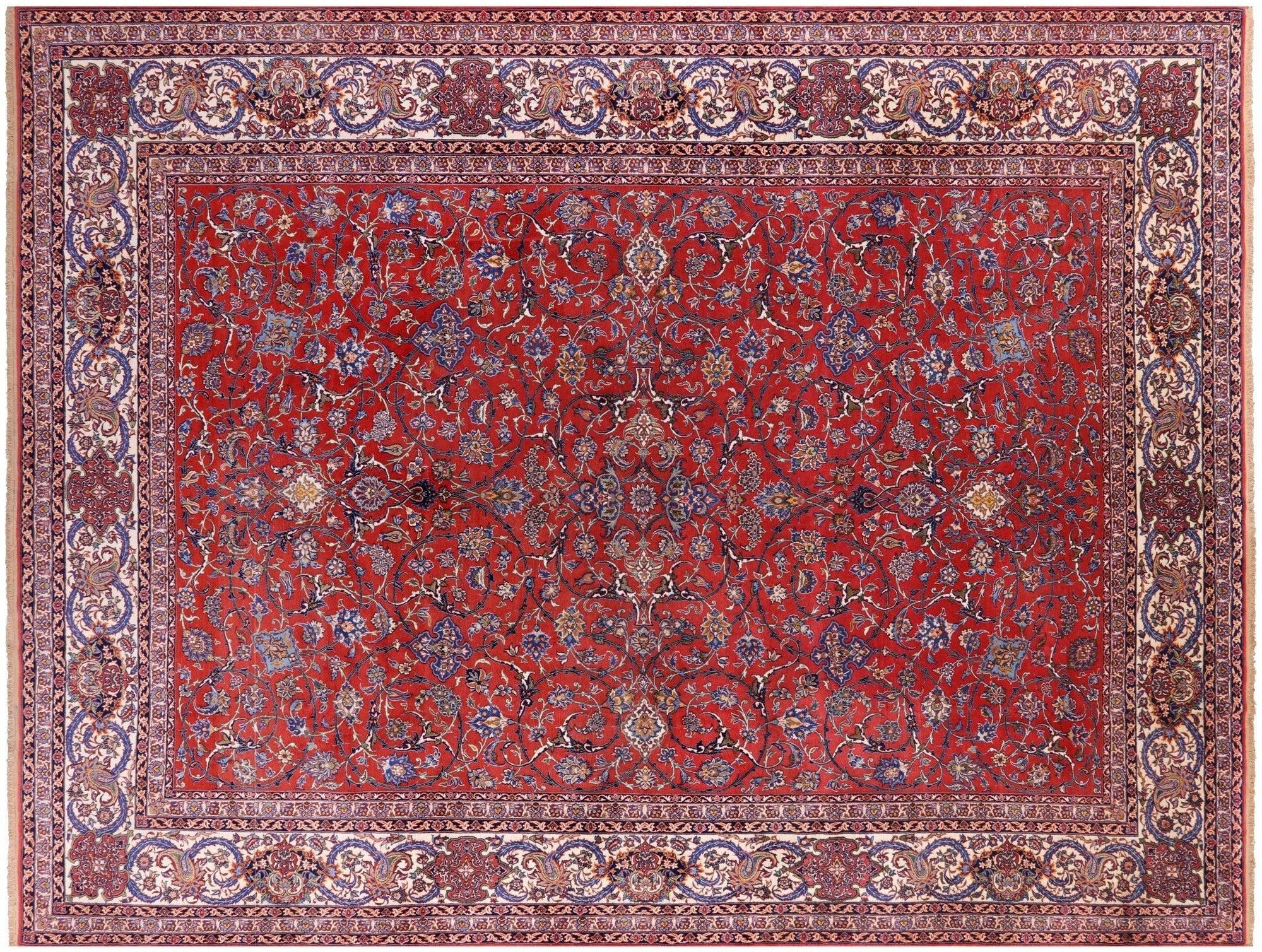 Red 10' 9" X 14' 1" Antique Isfahan Hand Knotted Wool Rug - Q9455
