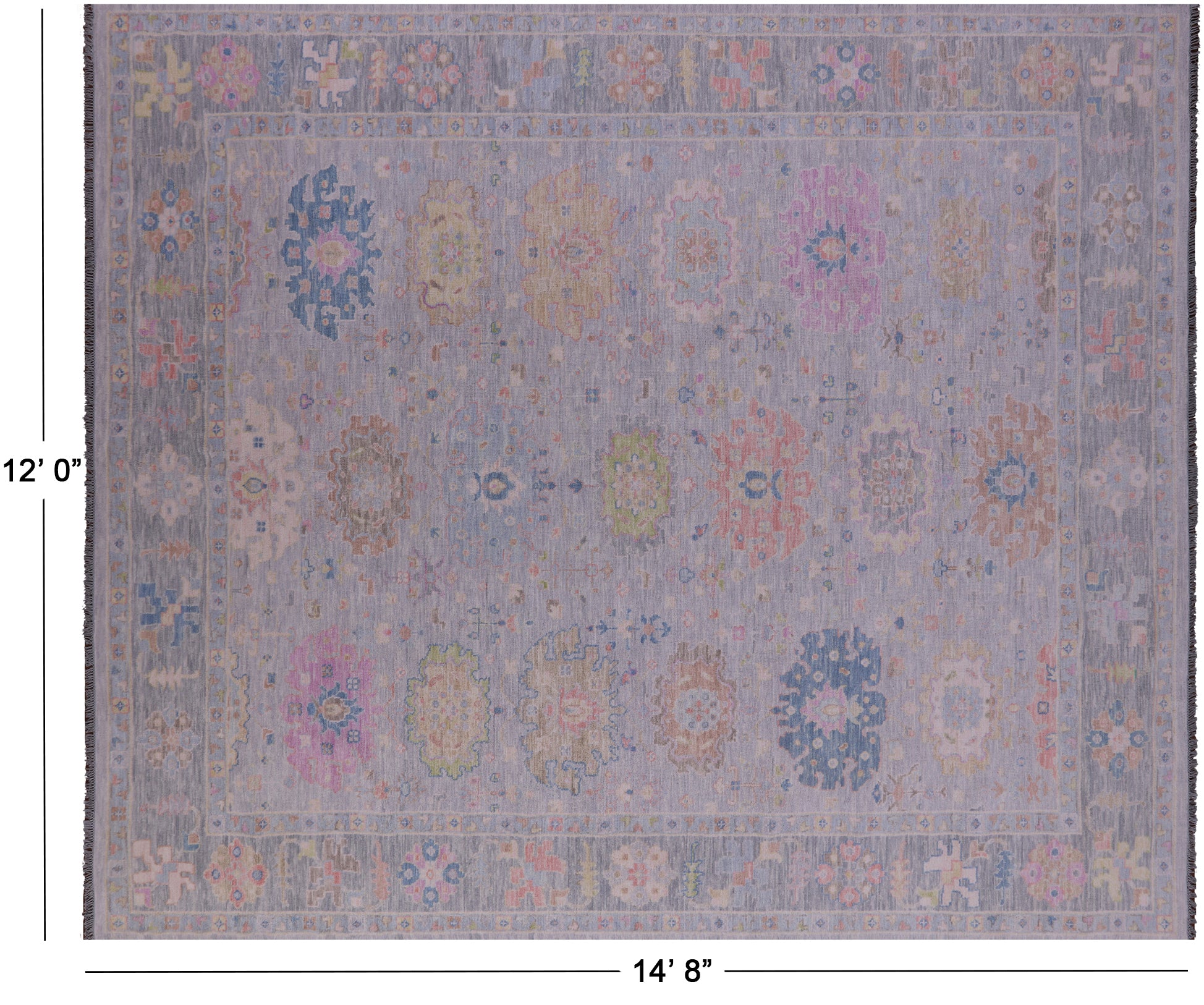 Silver Hand-Knotted Turkish Angora Oushak Rug 12' 0" X 14' 8" - Q21206