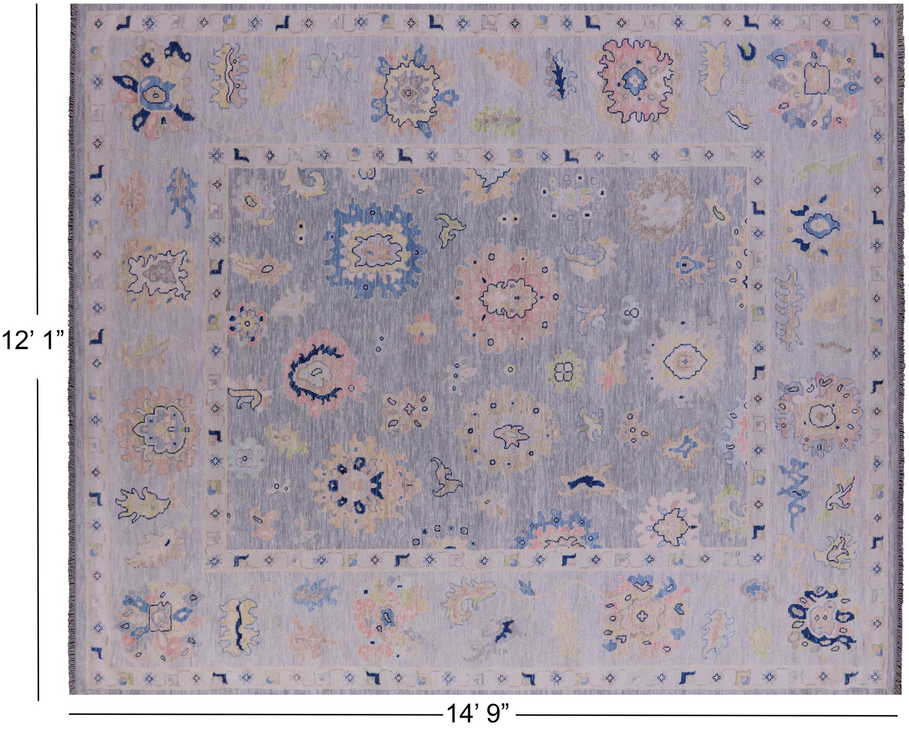 Silver 12' 1" X 14' 9" Turkish Angora Oushak Handmade Rug - Q22239