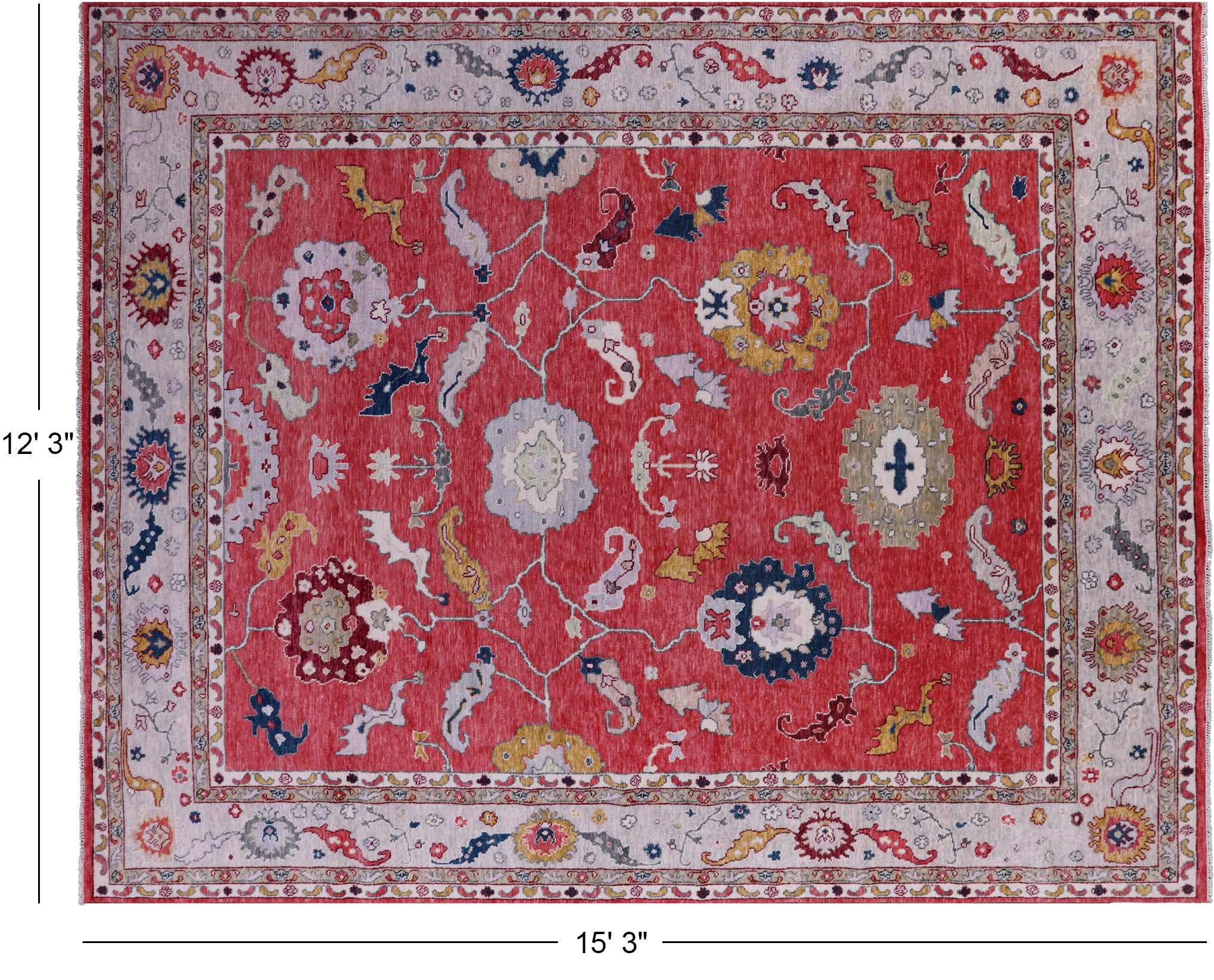 12' 3" X 15' 3" Turkish Angora Oushak Hand Knotted Wool Rug - Q9186
