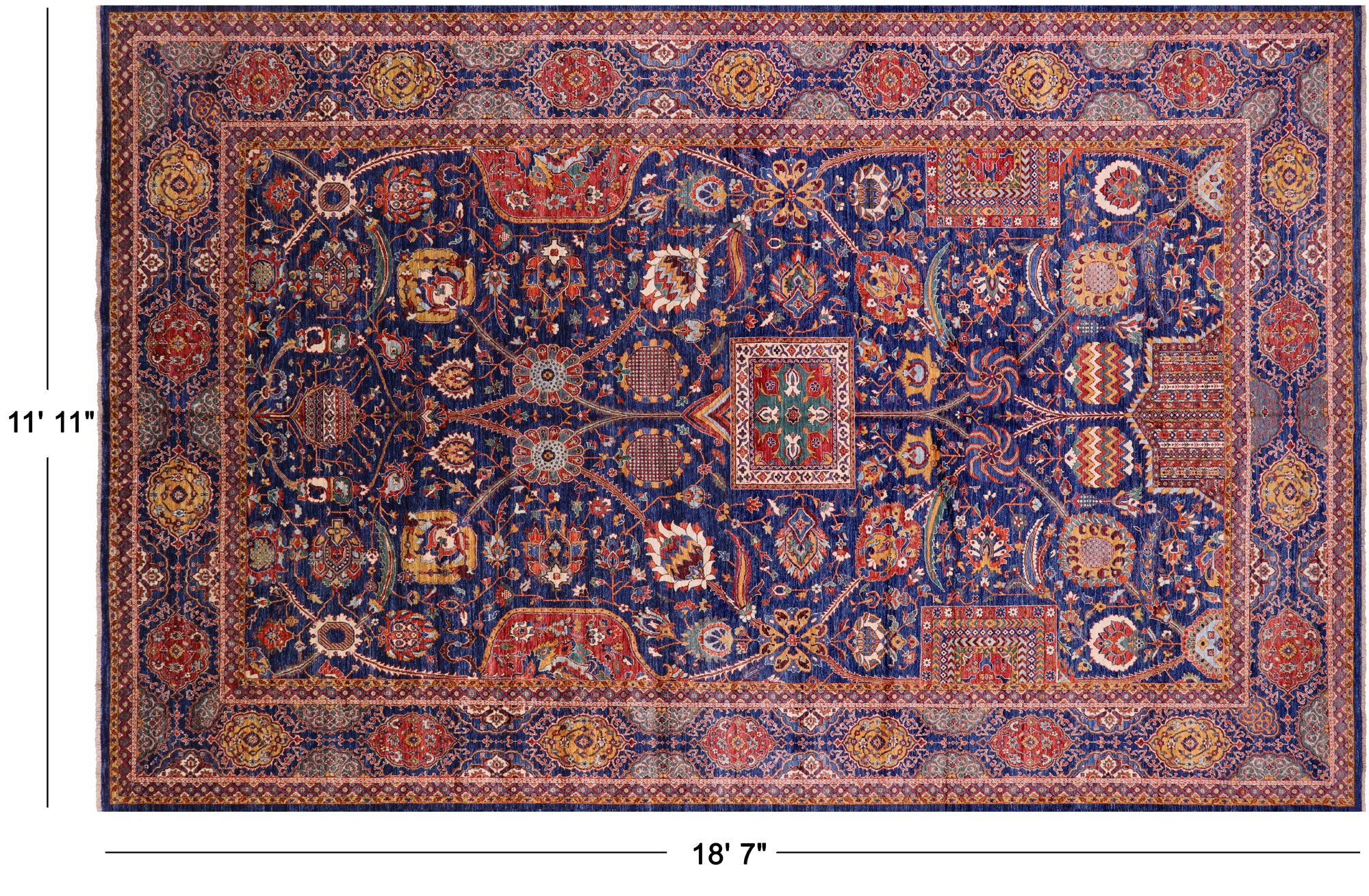 Blue 11' 11" X 18' 7" Handmade Persian Heriz Serapi Wool Rug - Q22741