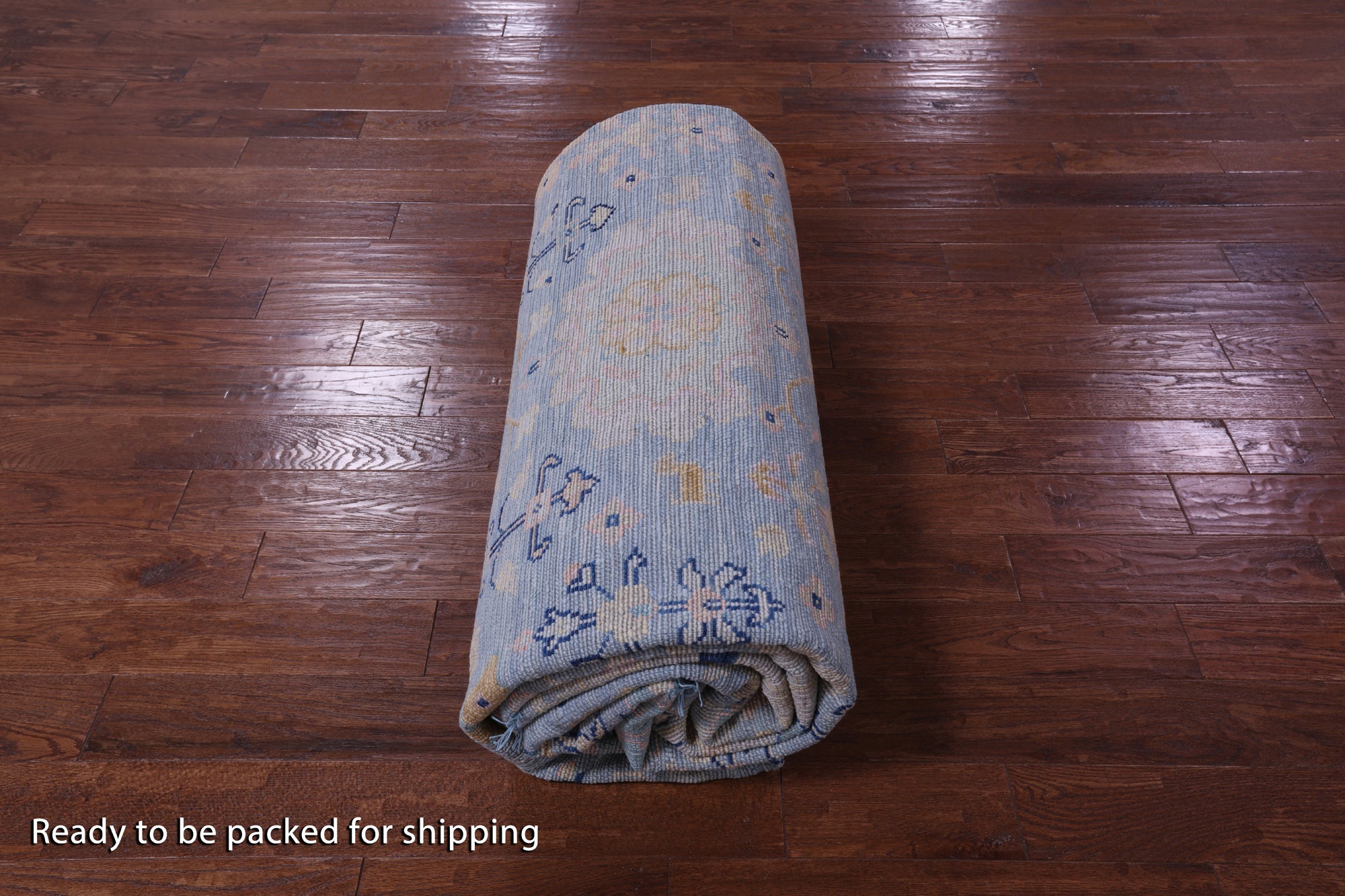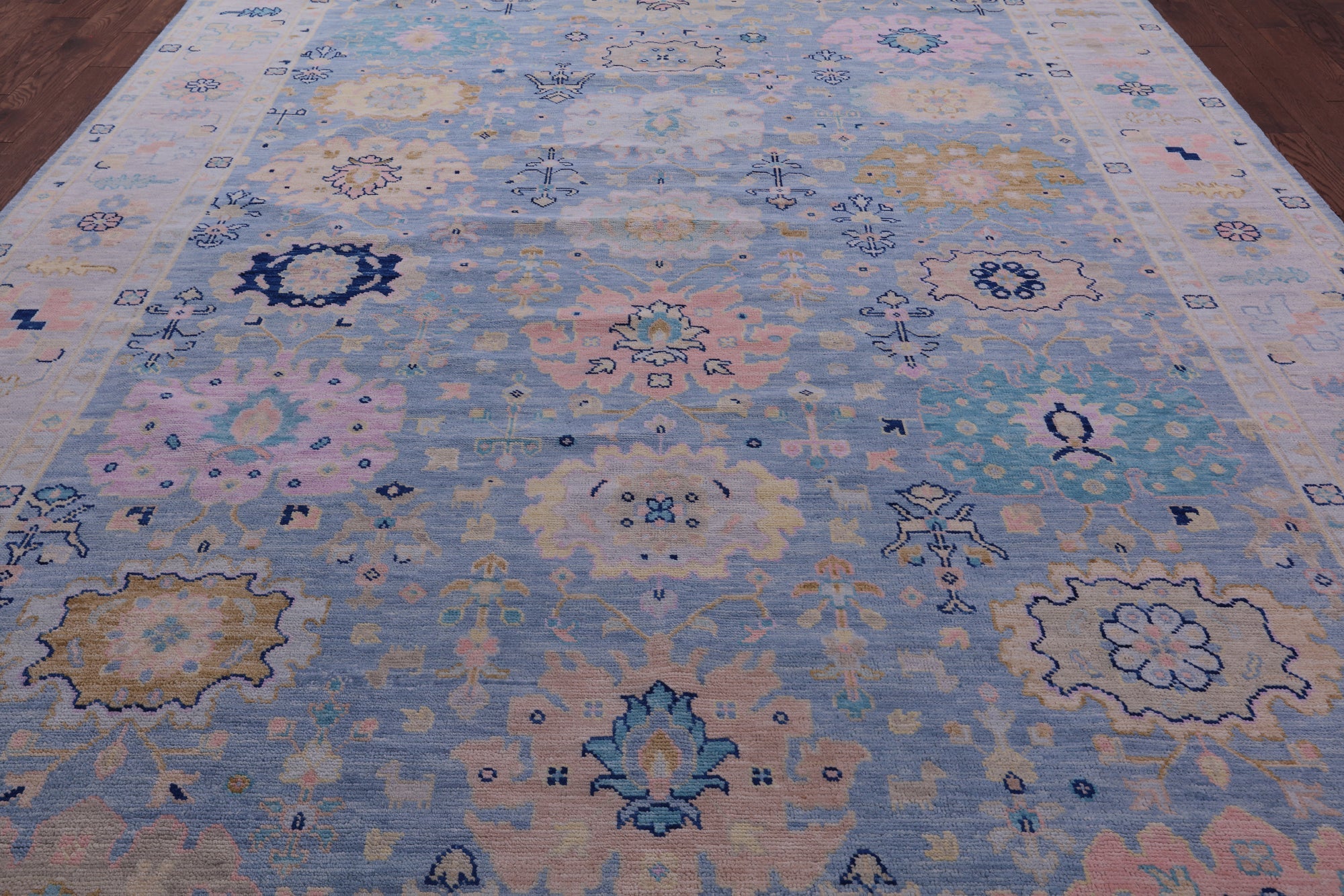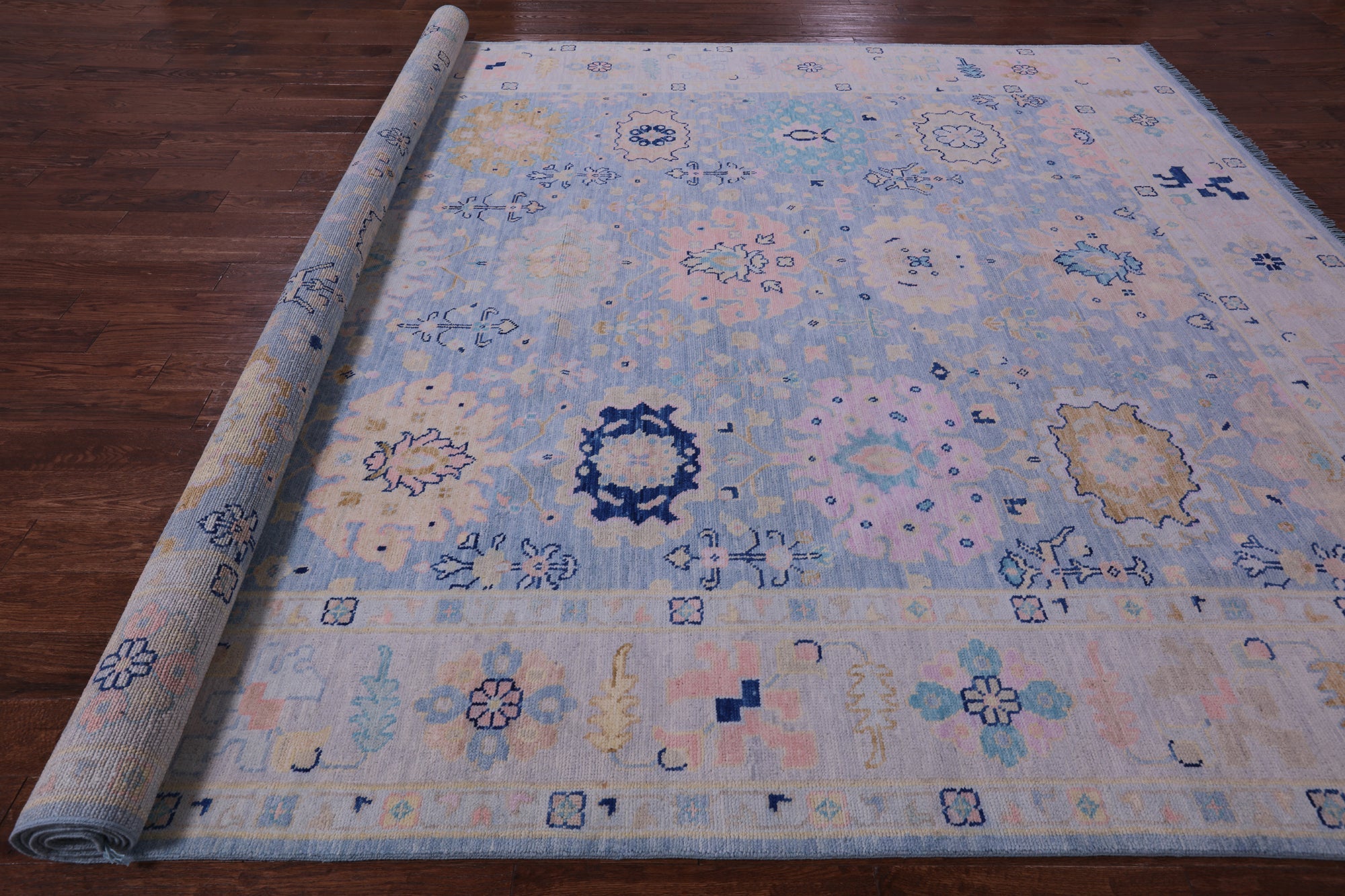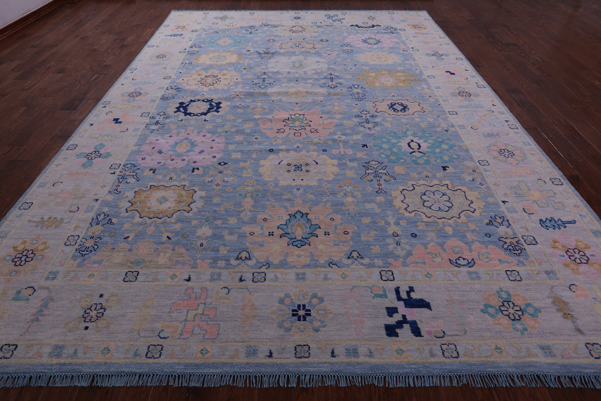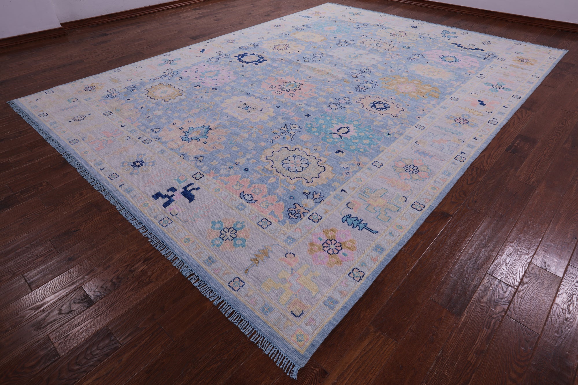 Blue Handmade Turkish Angora Oushak Rug 10' 1" X 13' 8" - Q22676