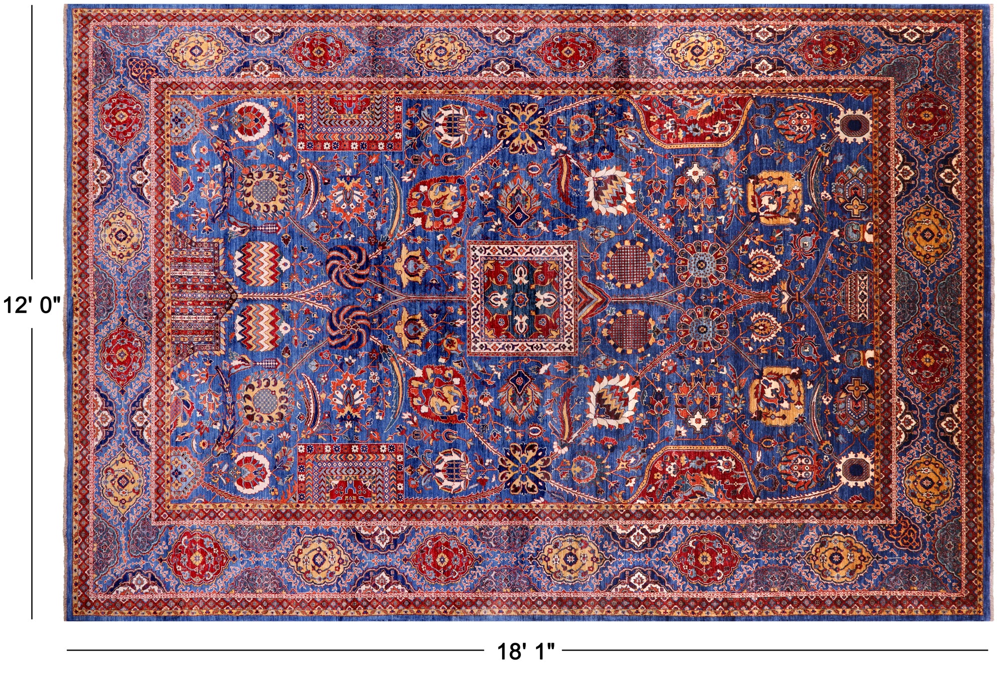 Blue Persian Heriz Serapi Hand-Knotted Wool Rug 12' 0" X 18' 1" - Q22749