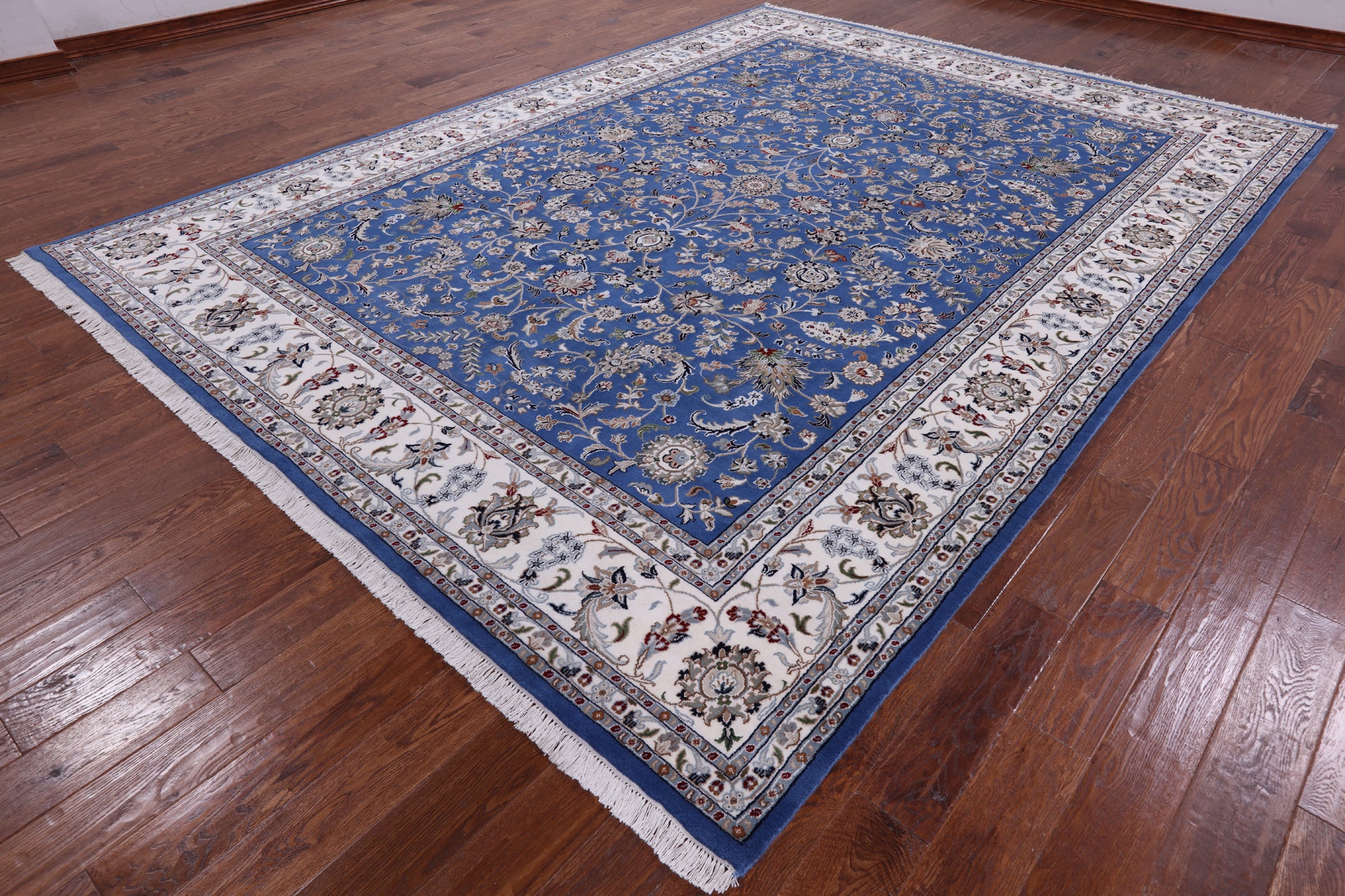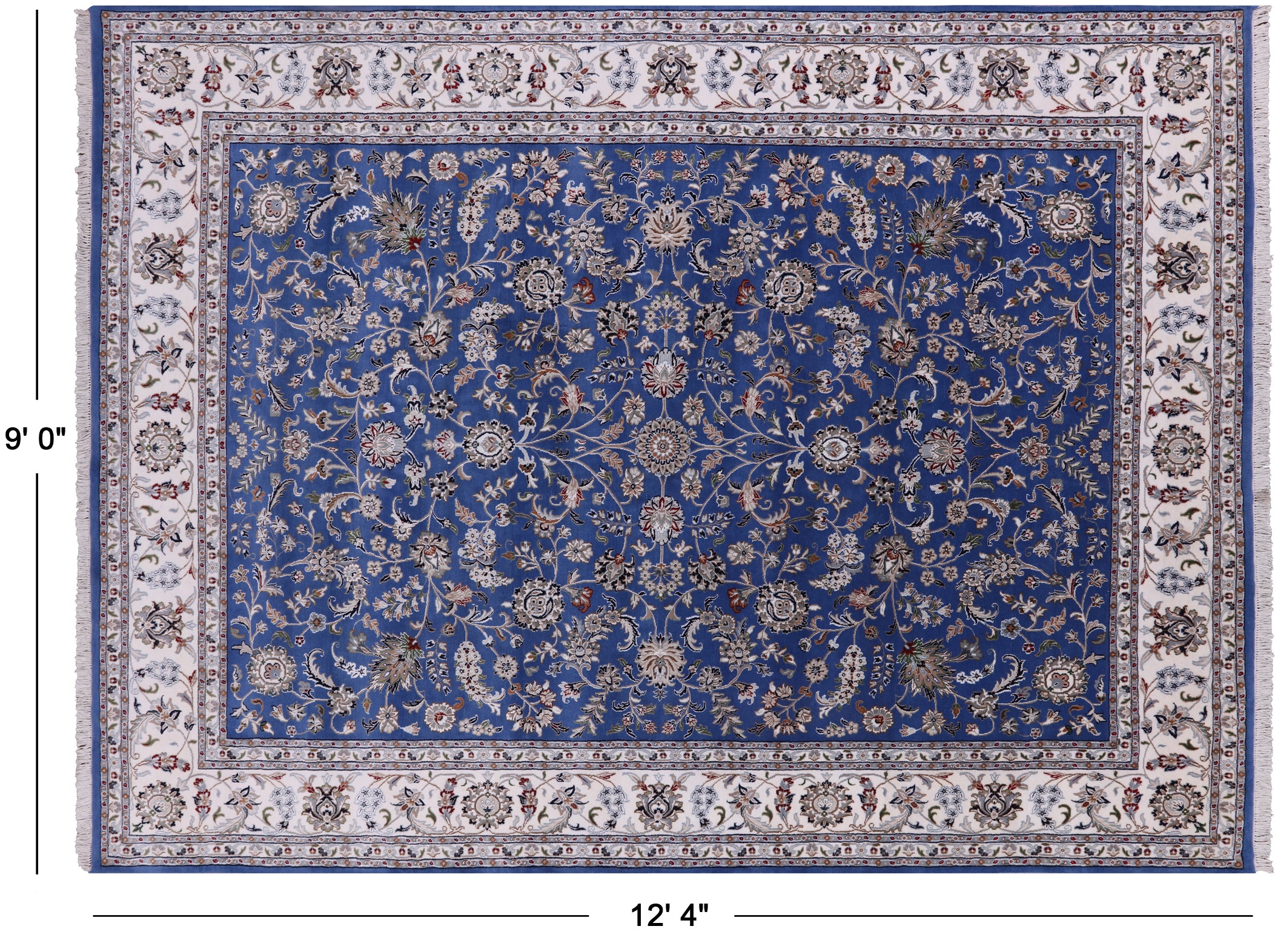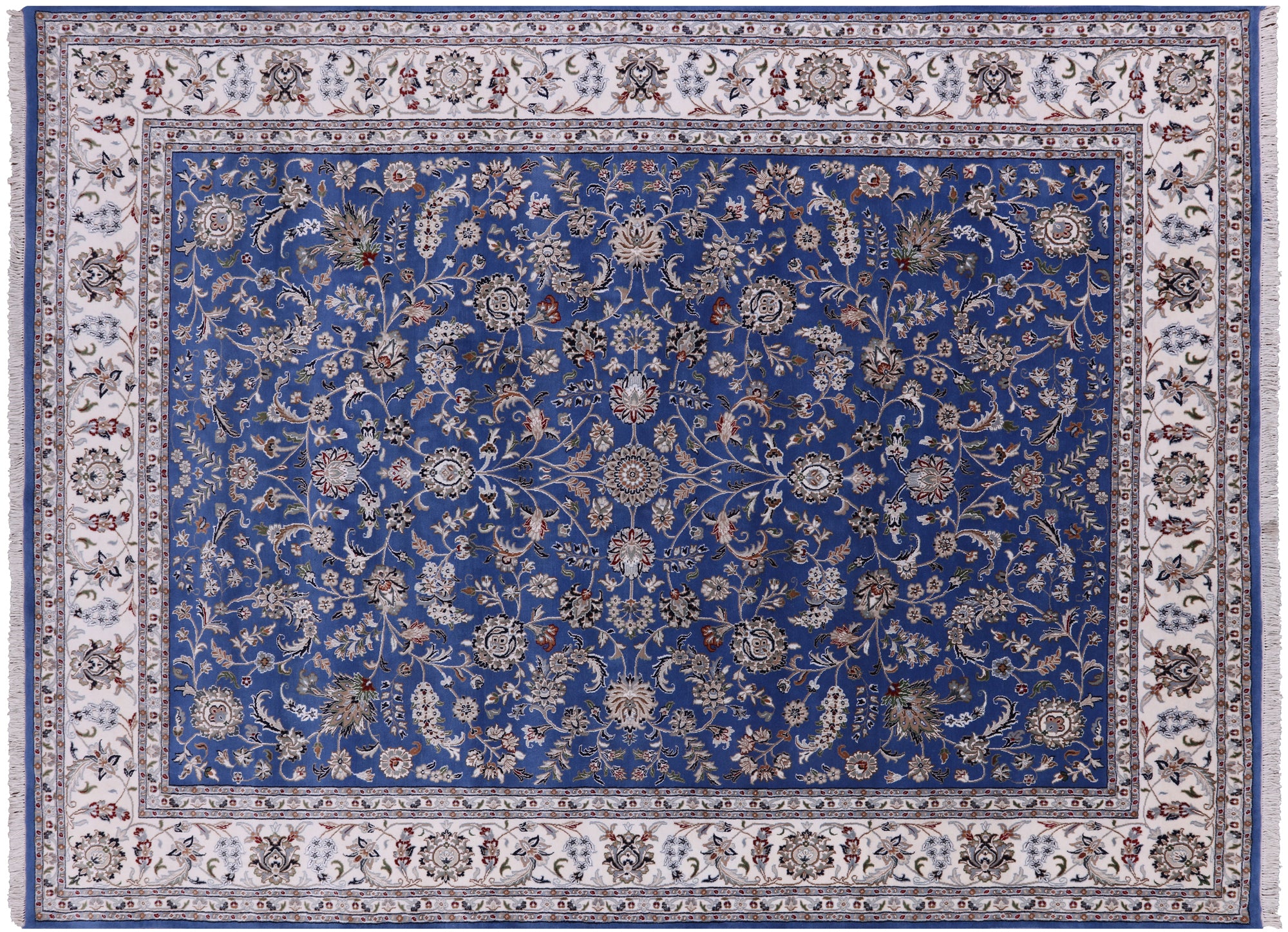 Blue 9' 0" X 12' 4" Persian Nain Hand Knotted Wool & Silk Rug - Q23607