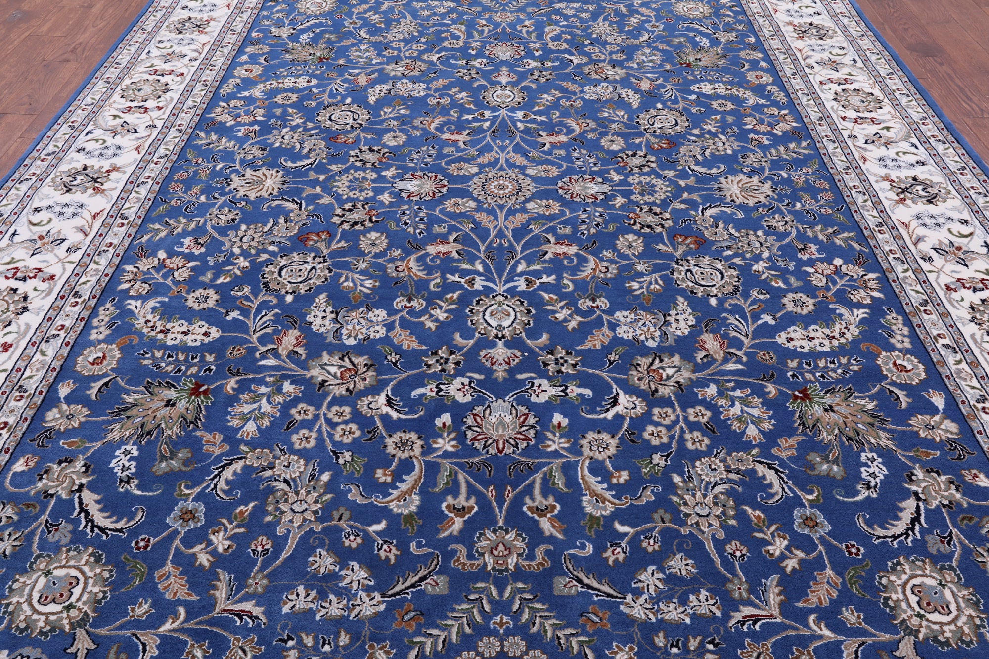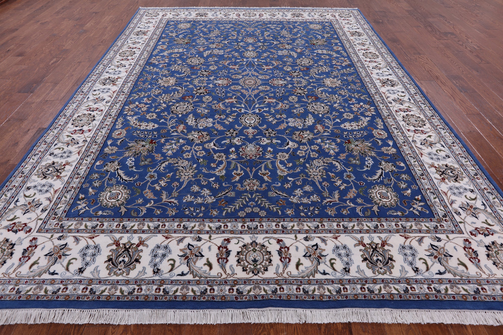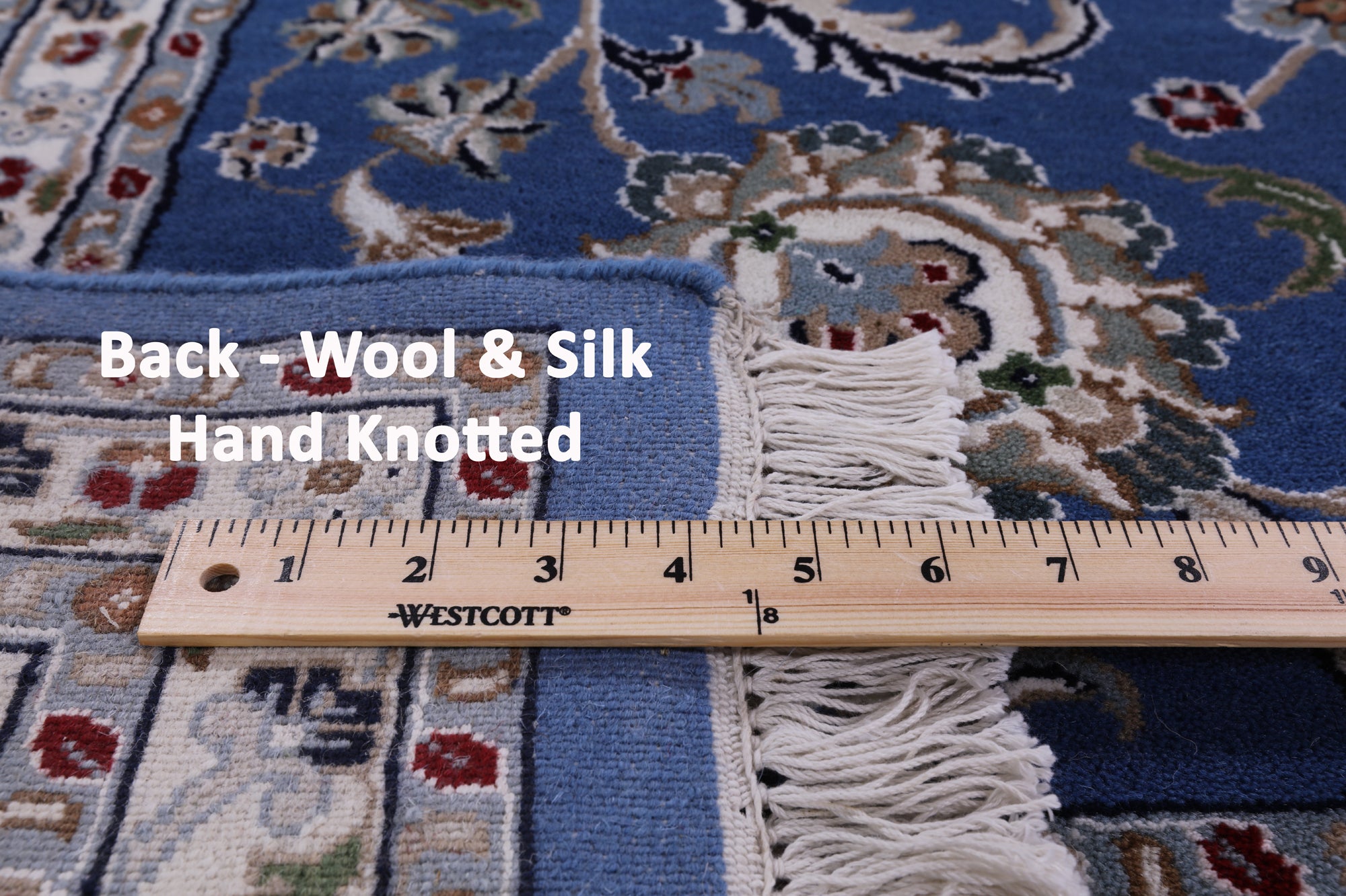 Blue 9' 0" X 12' 4" Persian Nain Hand Knotted Wool & Silk Rug - Q23607