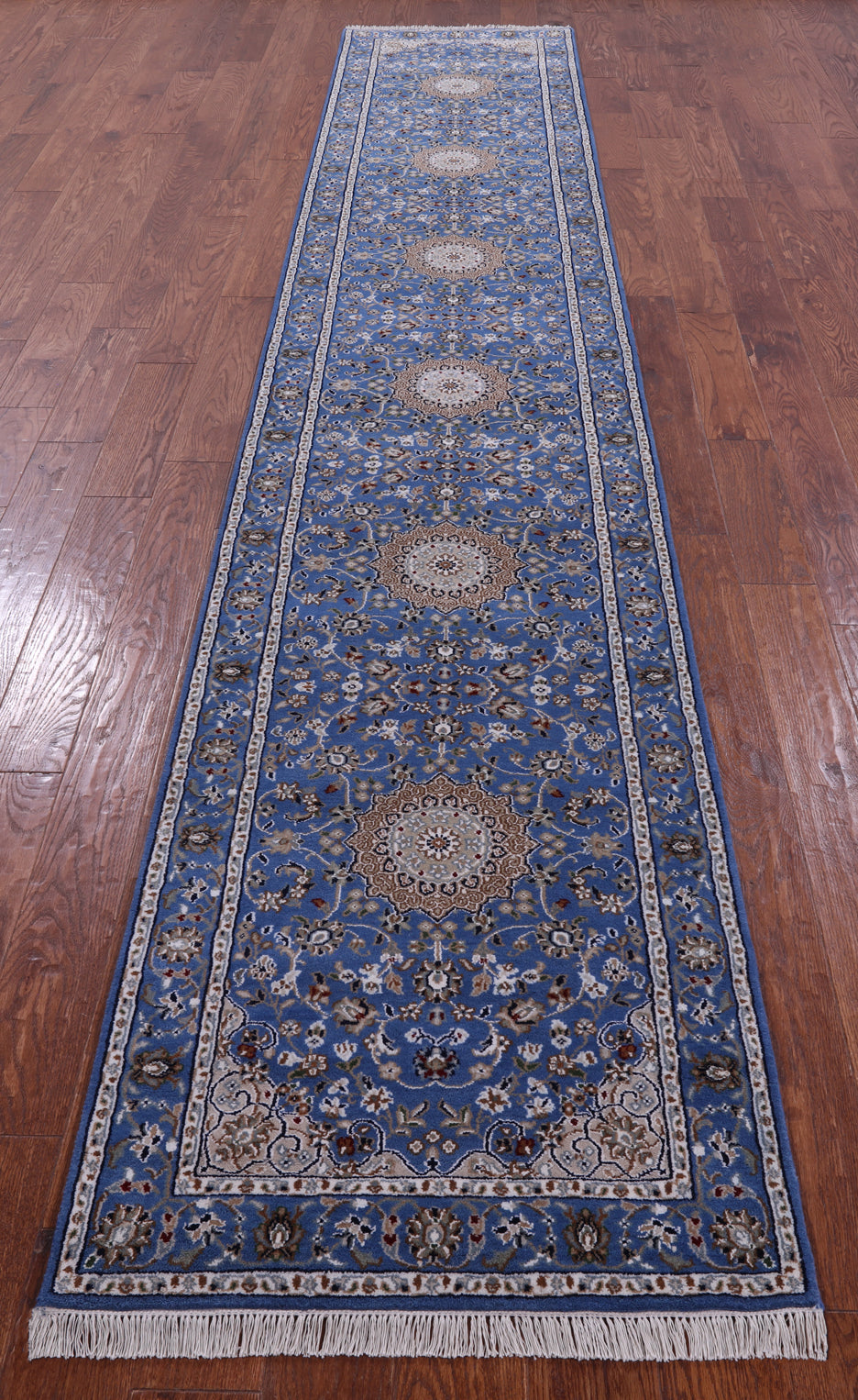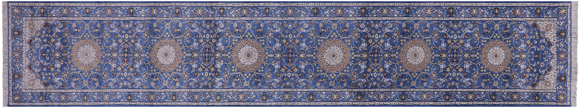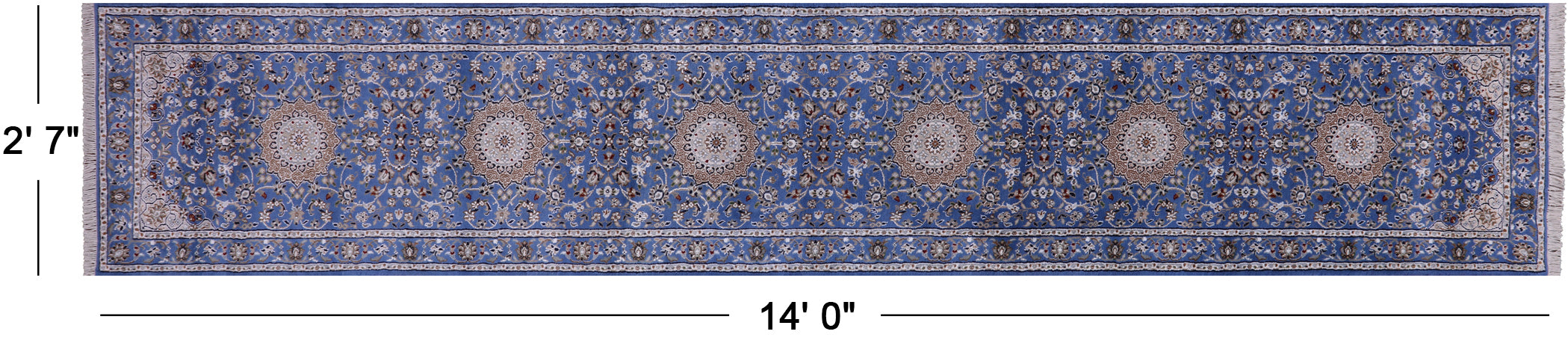 Blue Persian Nain Hand Knotted Wool & Silk Runner Rug 2' 7" X 14' 0" - Q23617