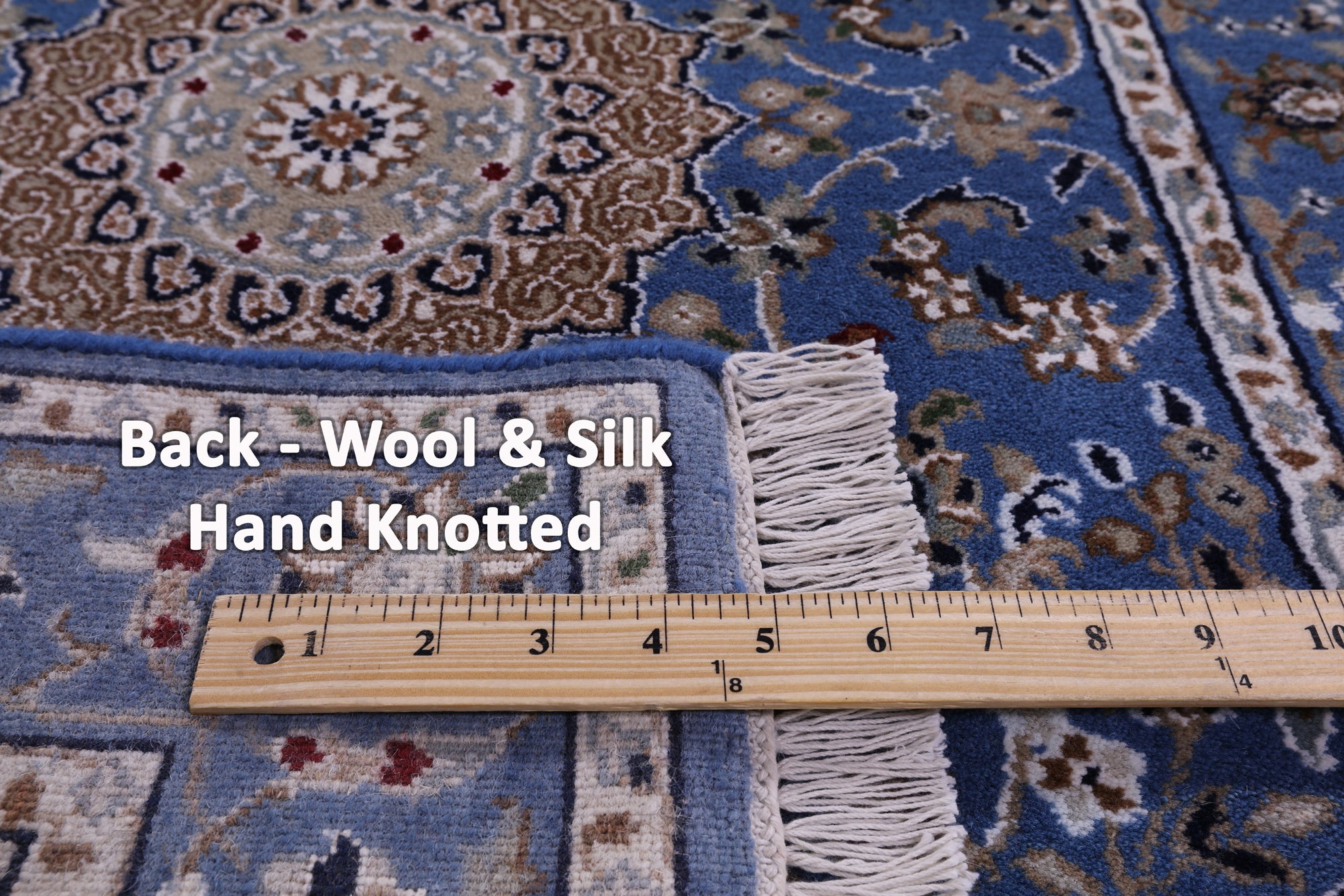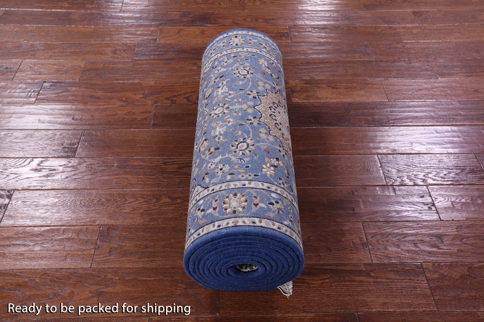 Blue Persian Nain Hand Knotted Wool & Silk Runner Rug 2' 7" X 14' 0" - Q23617 is backordered and will ship as soon as it is back in stock.