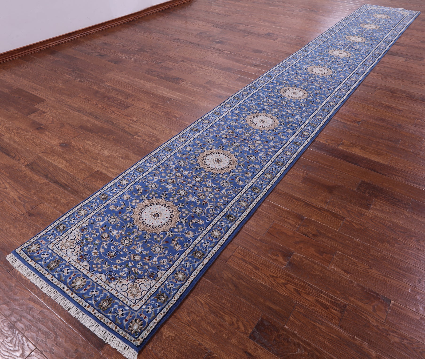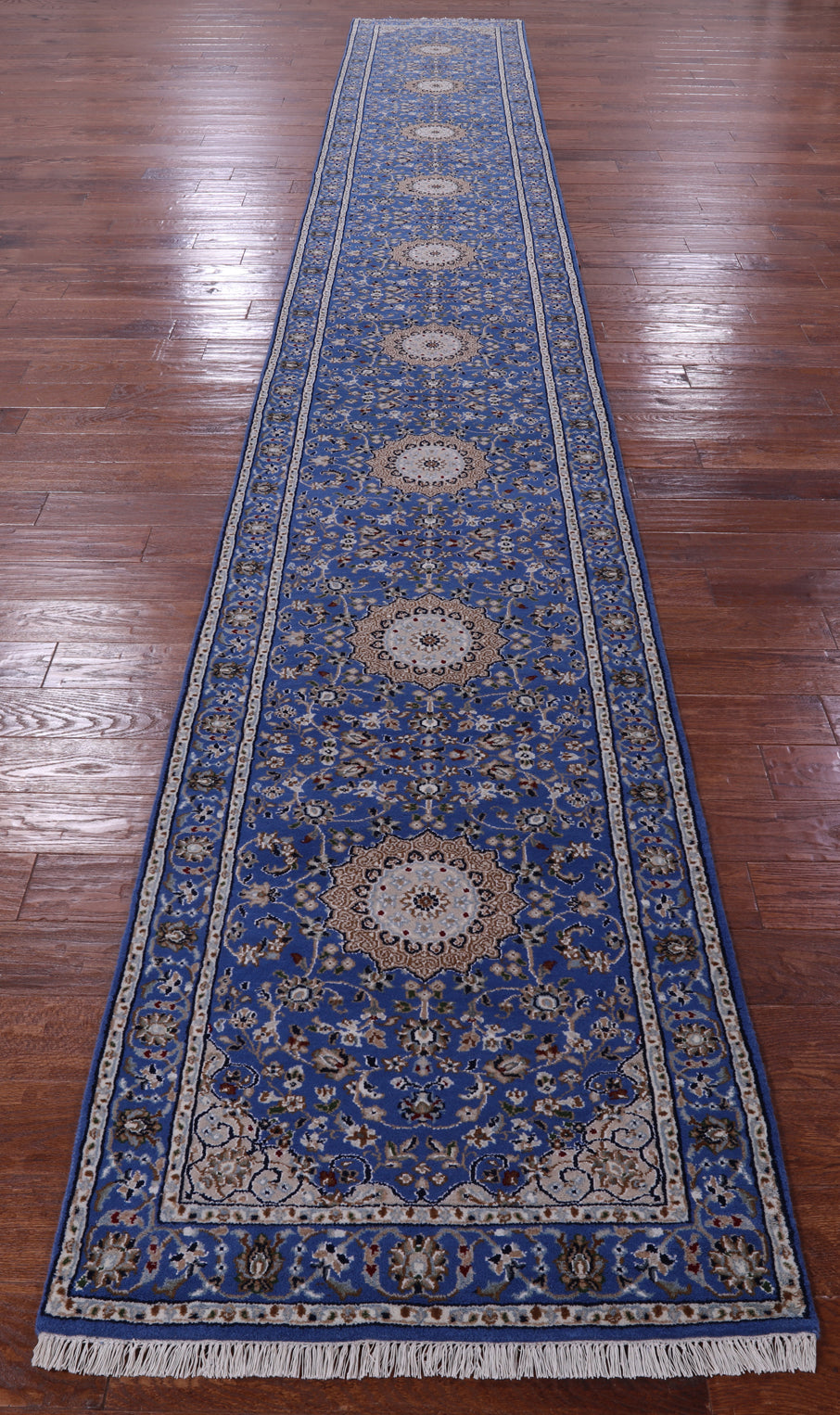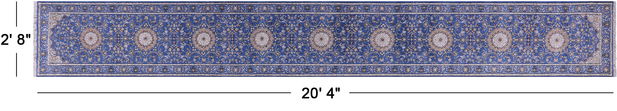 Blue Persian Nain Hand Knotted Wool & Silk Runner Rug 2' 8" X 20' 4" - Q23620 is backordered and will ship as soon as it is back in stock.