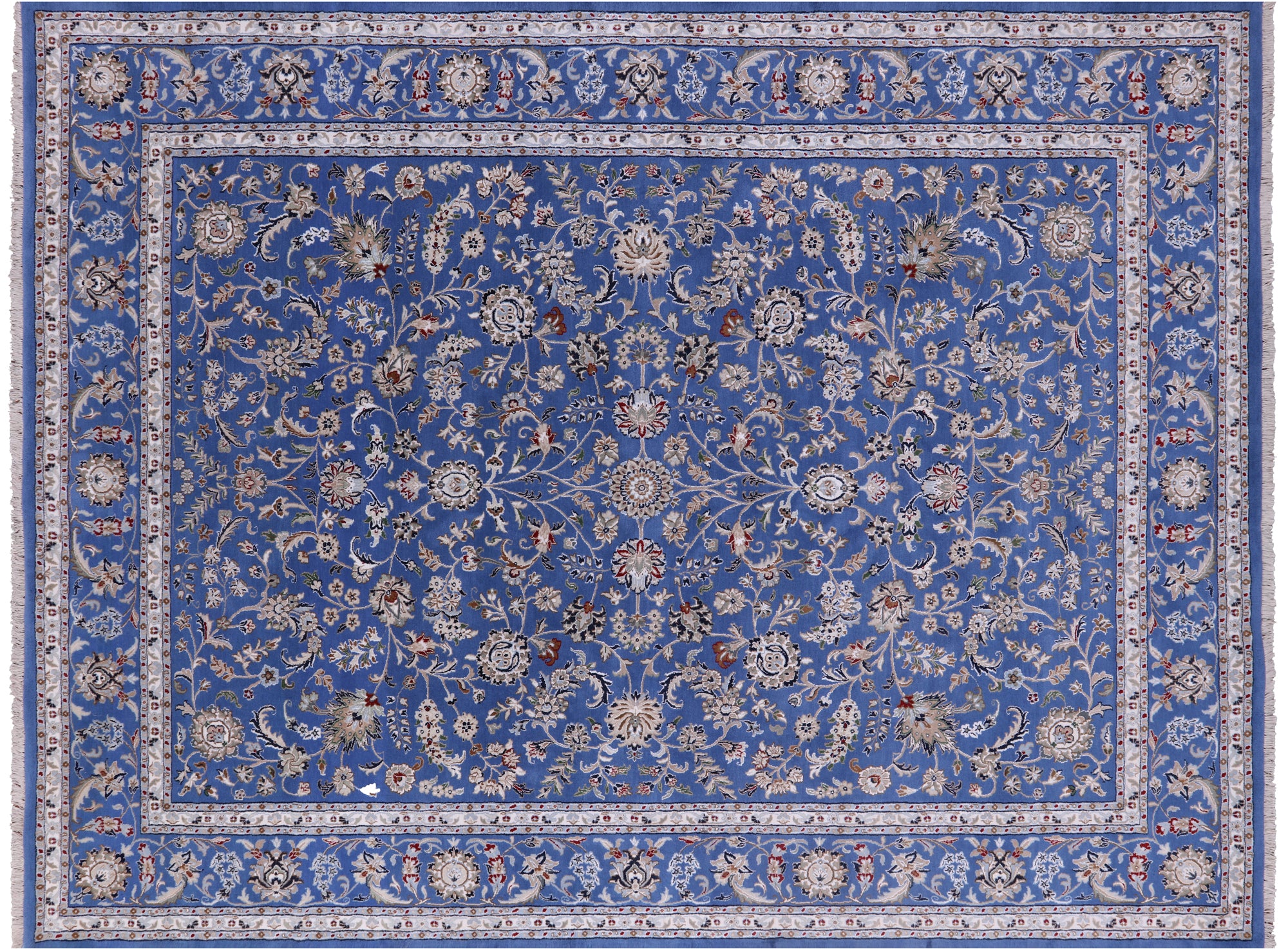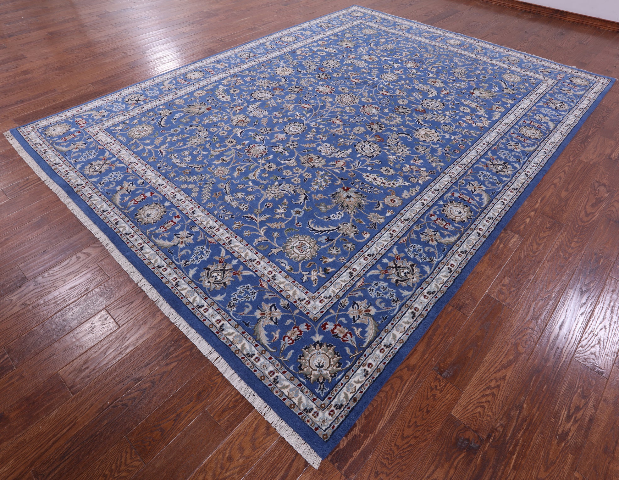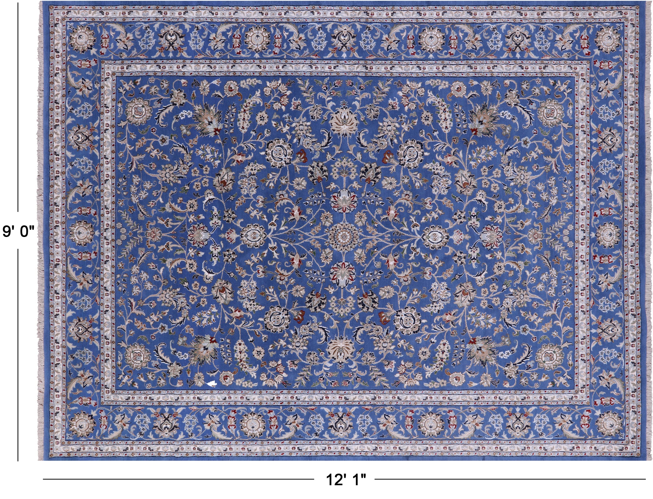 Blue 9' 0" X 12' 1" Persian Nain Handmade Wool & Silk Rug - Q23626