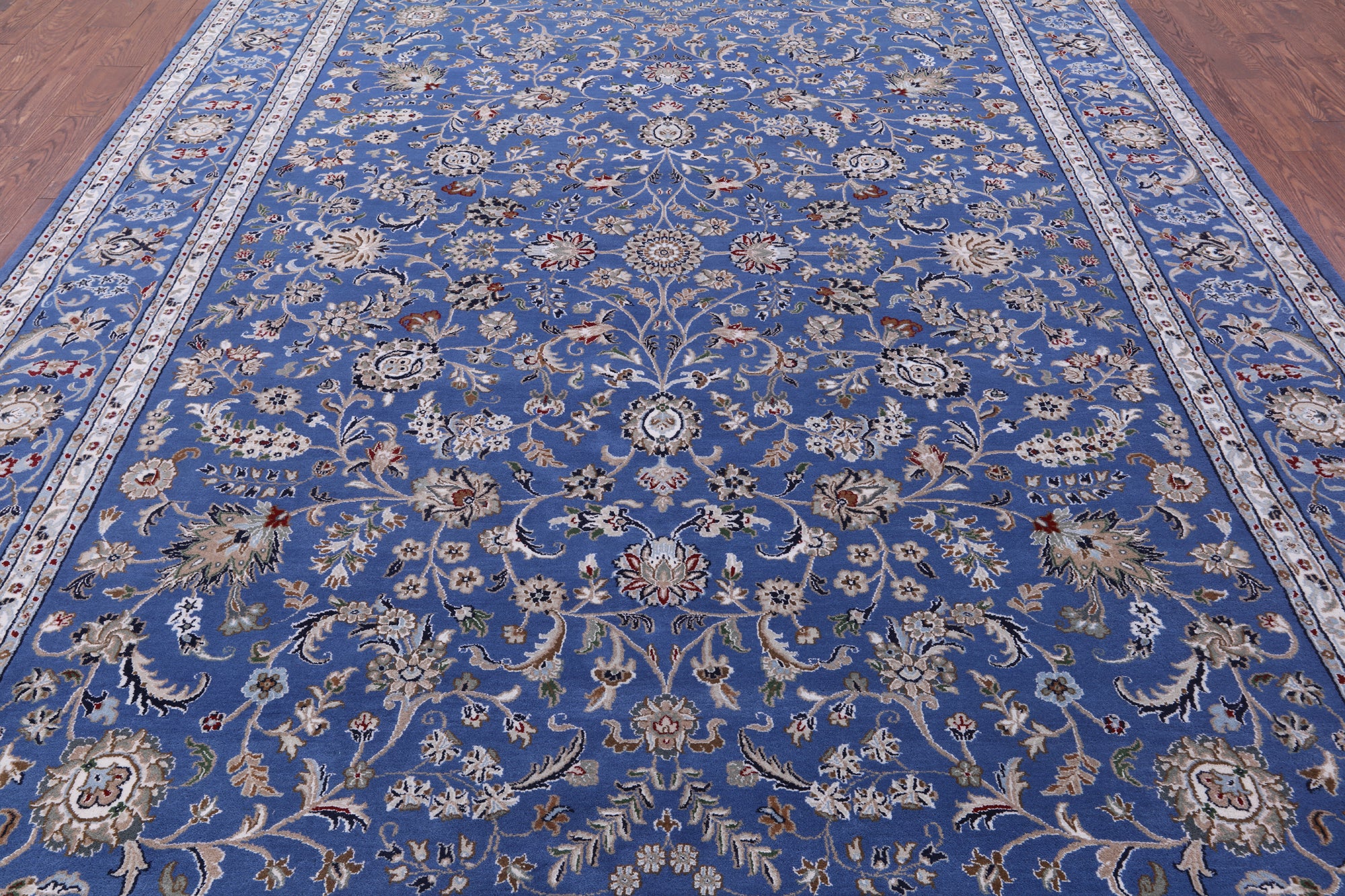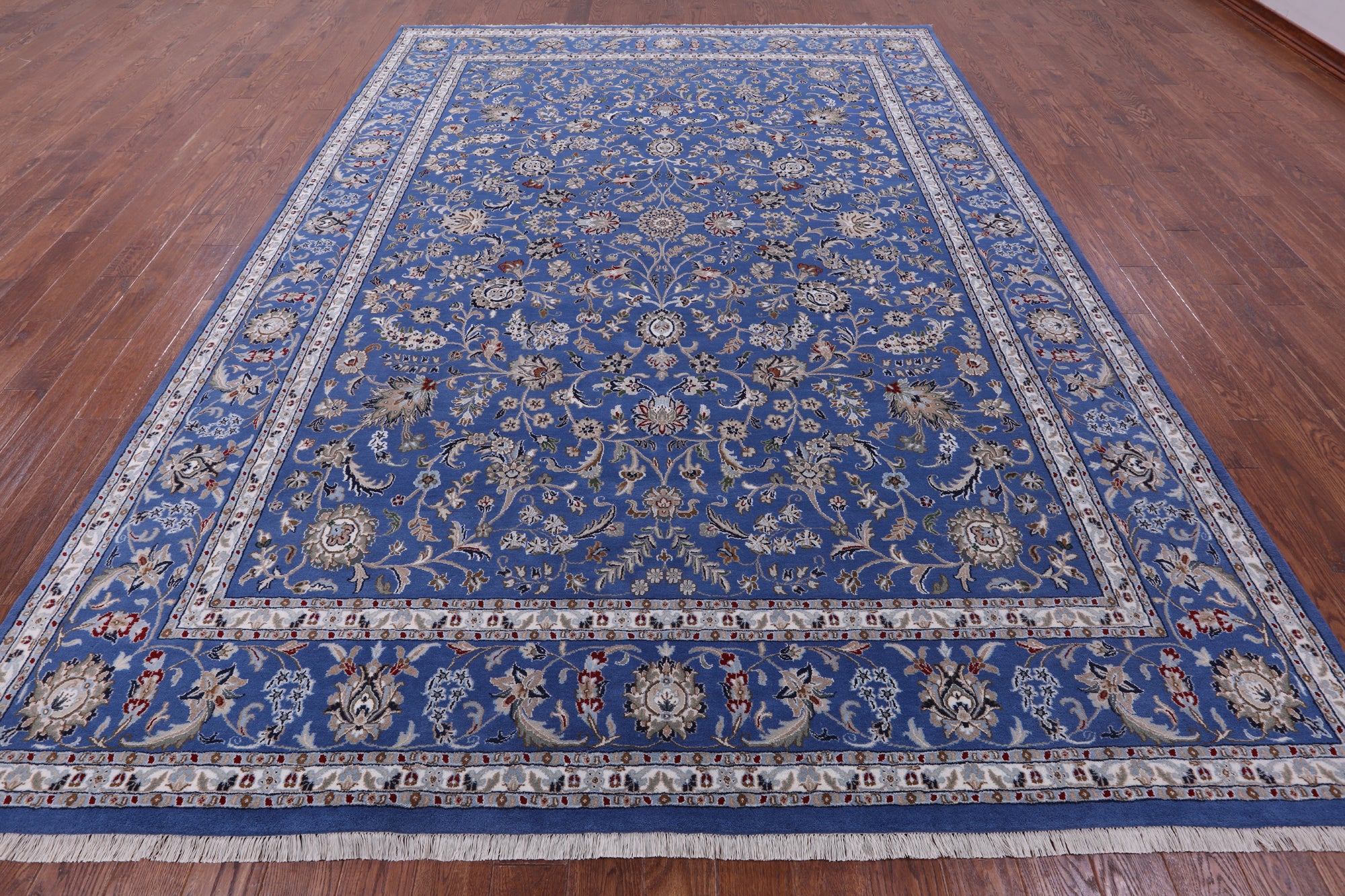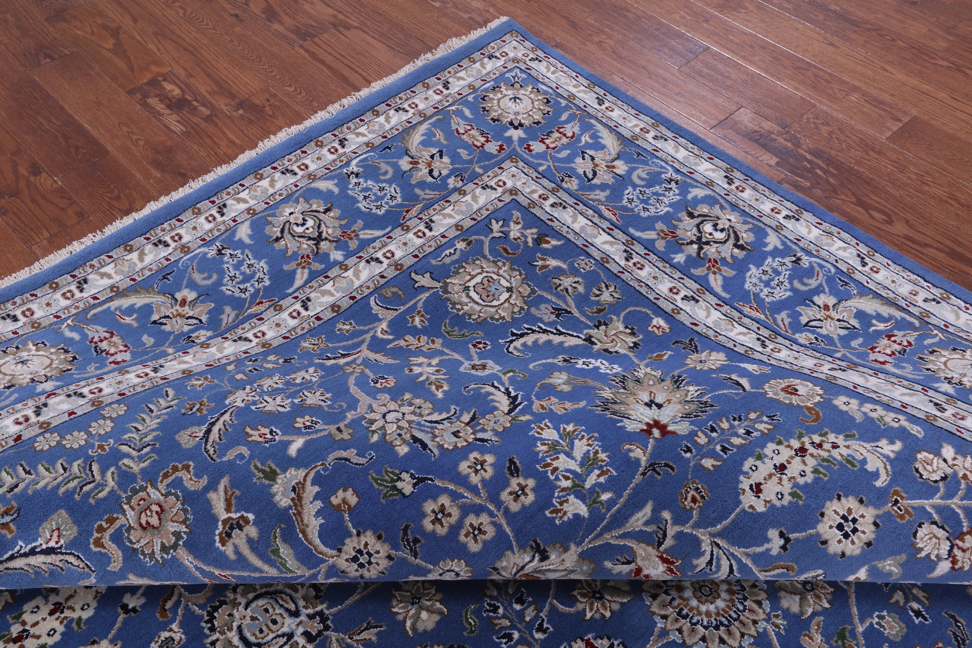 Blue 9' 0" X 12' 1" Persian Nain Handmade Wool & Silk Rug - Q23626