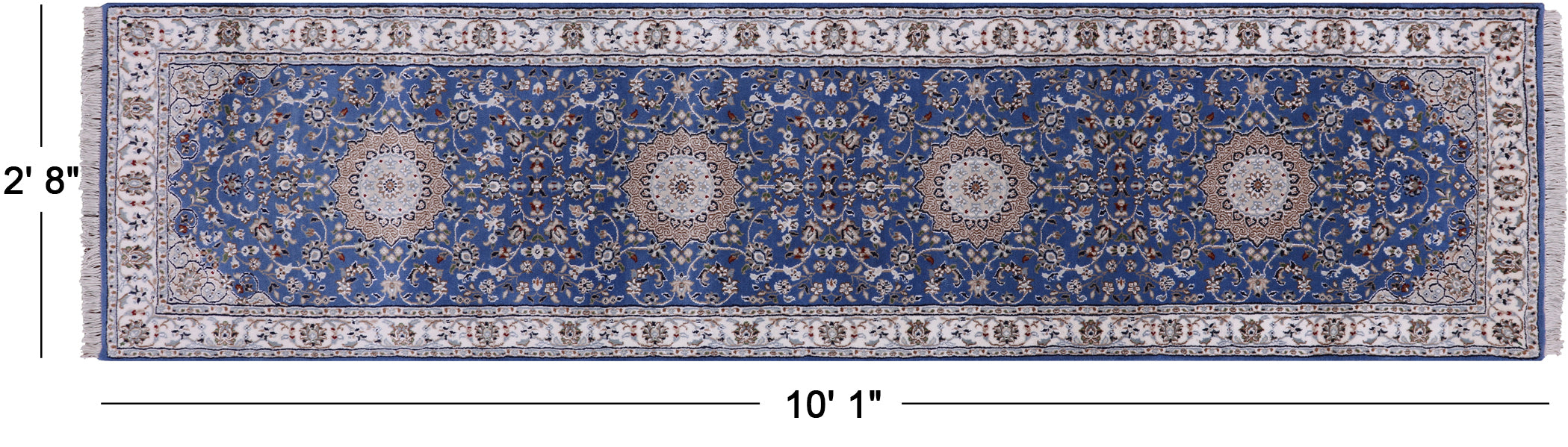 Blue Persian Nain Handmade Wool & Silk Runner Rug 2' 8" X 10' 1" - Q23614