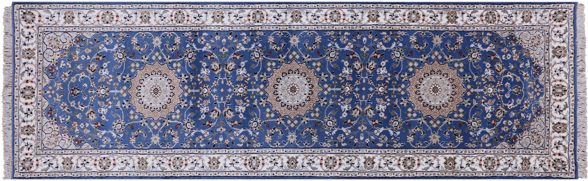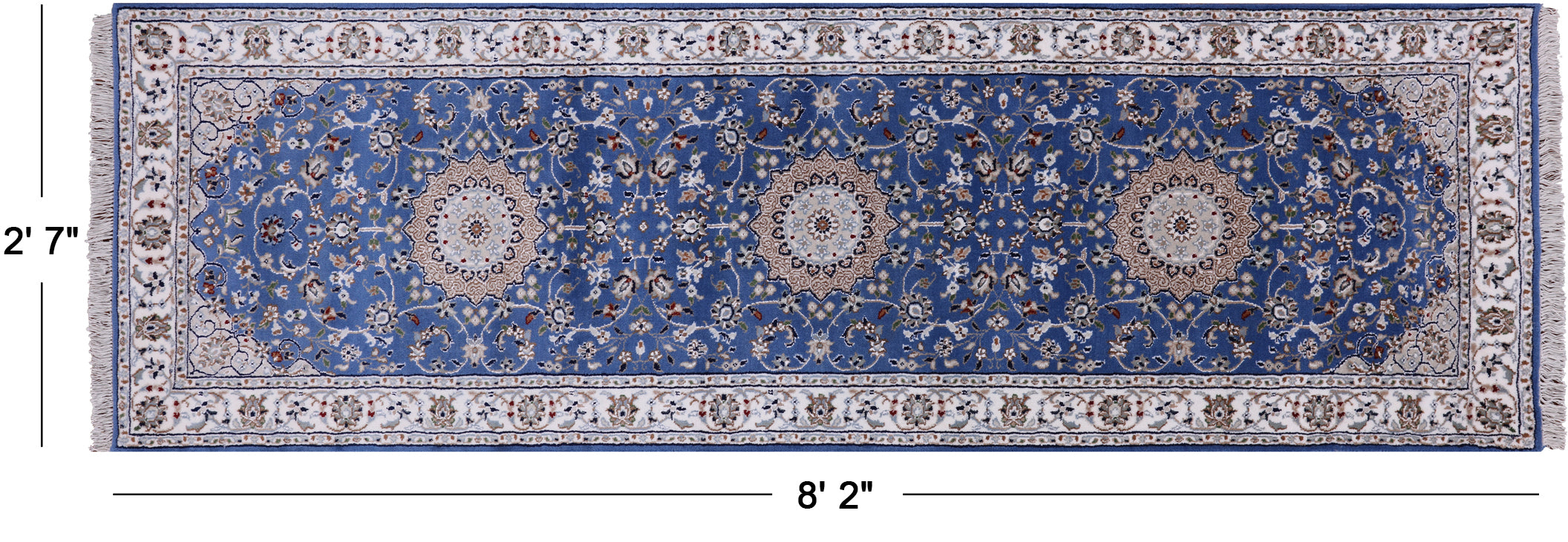 Blue 2' 7" X 8' 2" Persian Nain Handmade Wool & Silk Runner Rug - Q23619