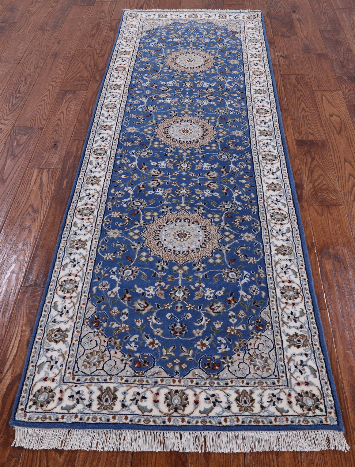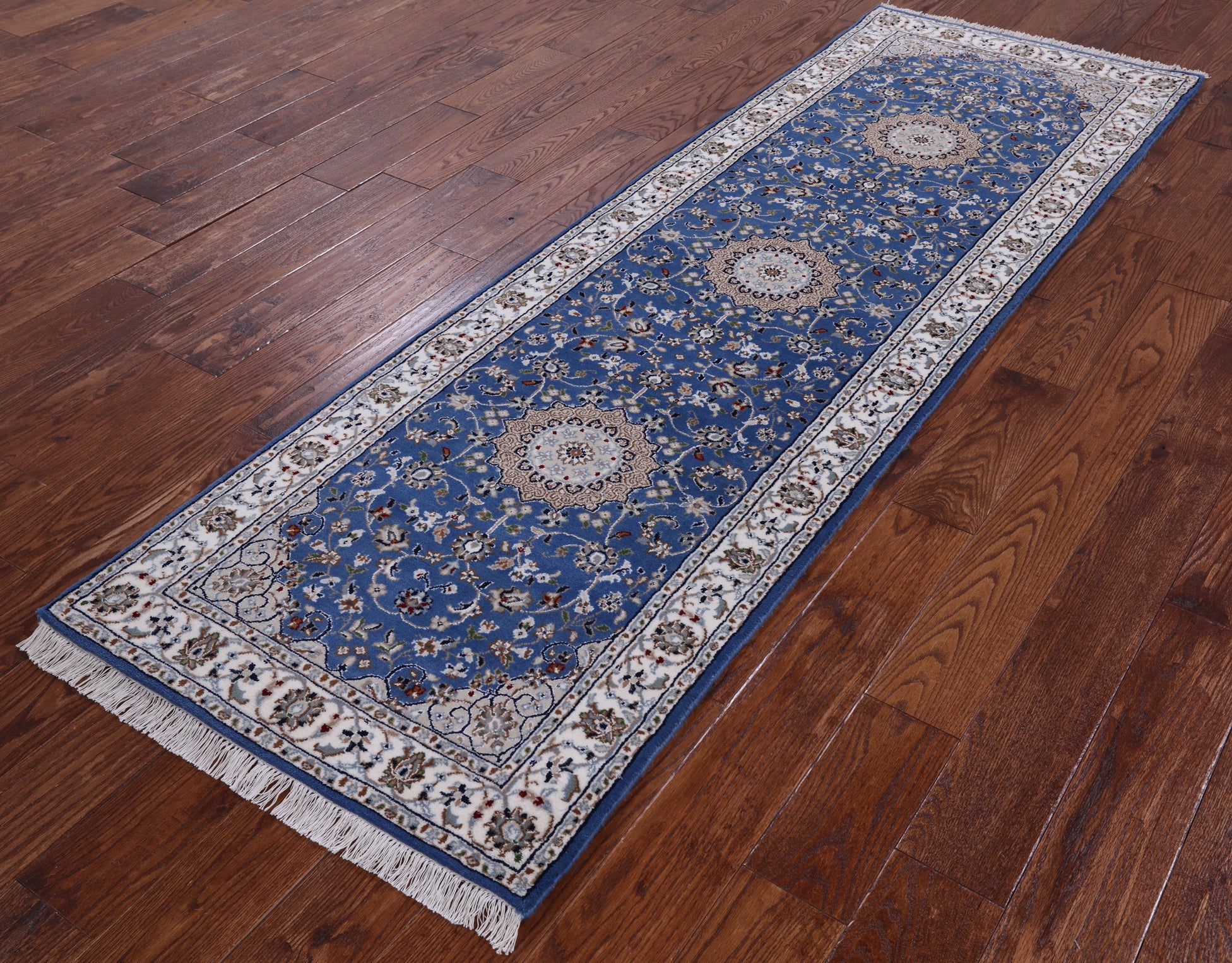 Blue 2' 7" X 8' 2" Persian Nain Handmade Wool & Silk Runner Rug - Q23619 is backordered and will ship as soon as it is back in stock.