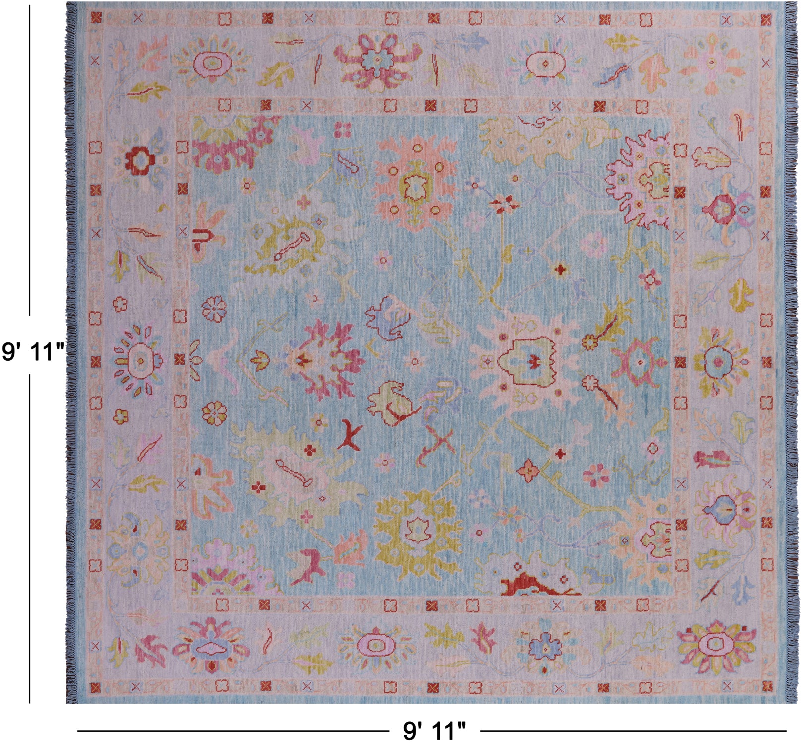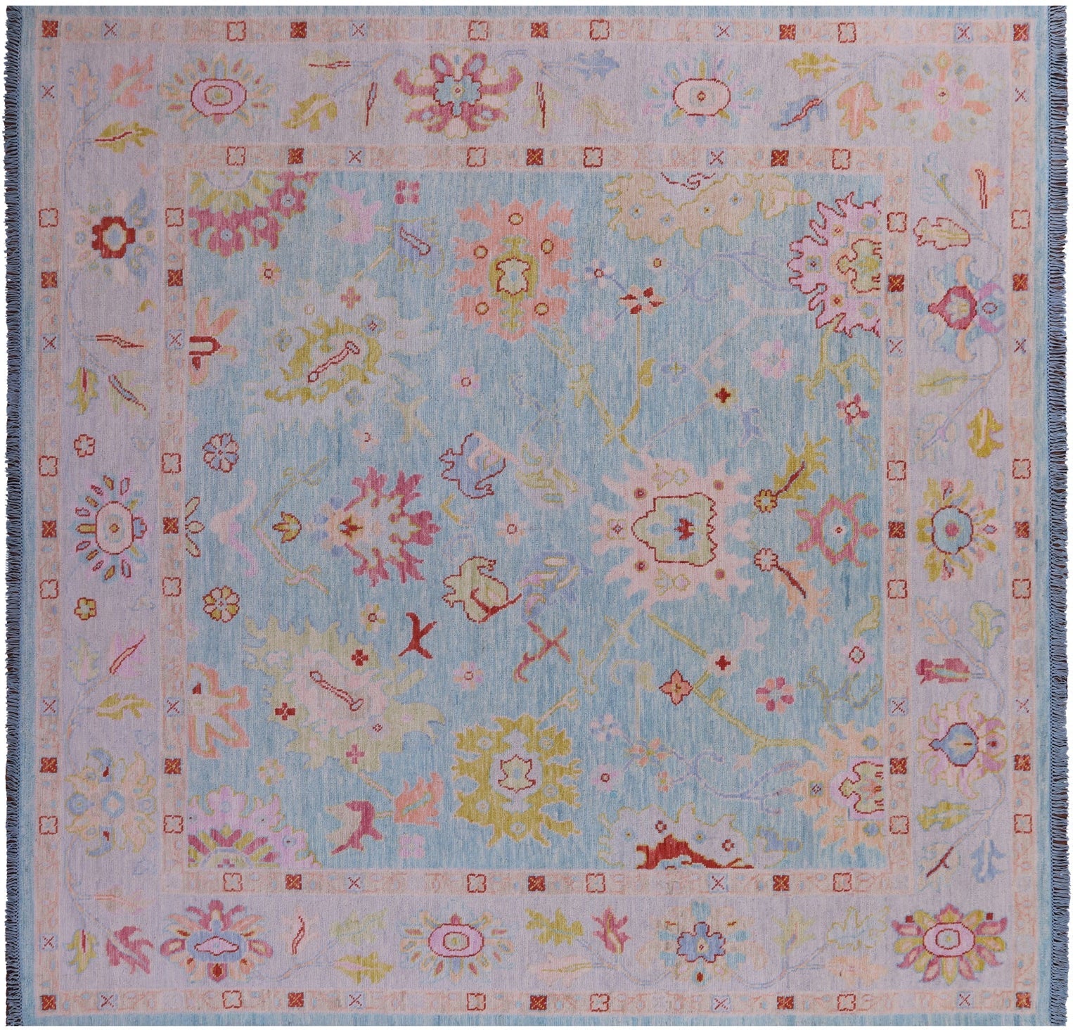 Blue 10' Square Turkish Angora Oushak Handmade Wool Rug - Q22687