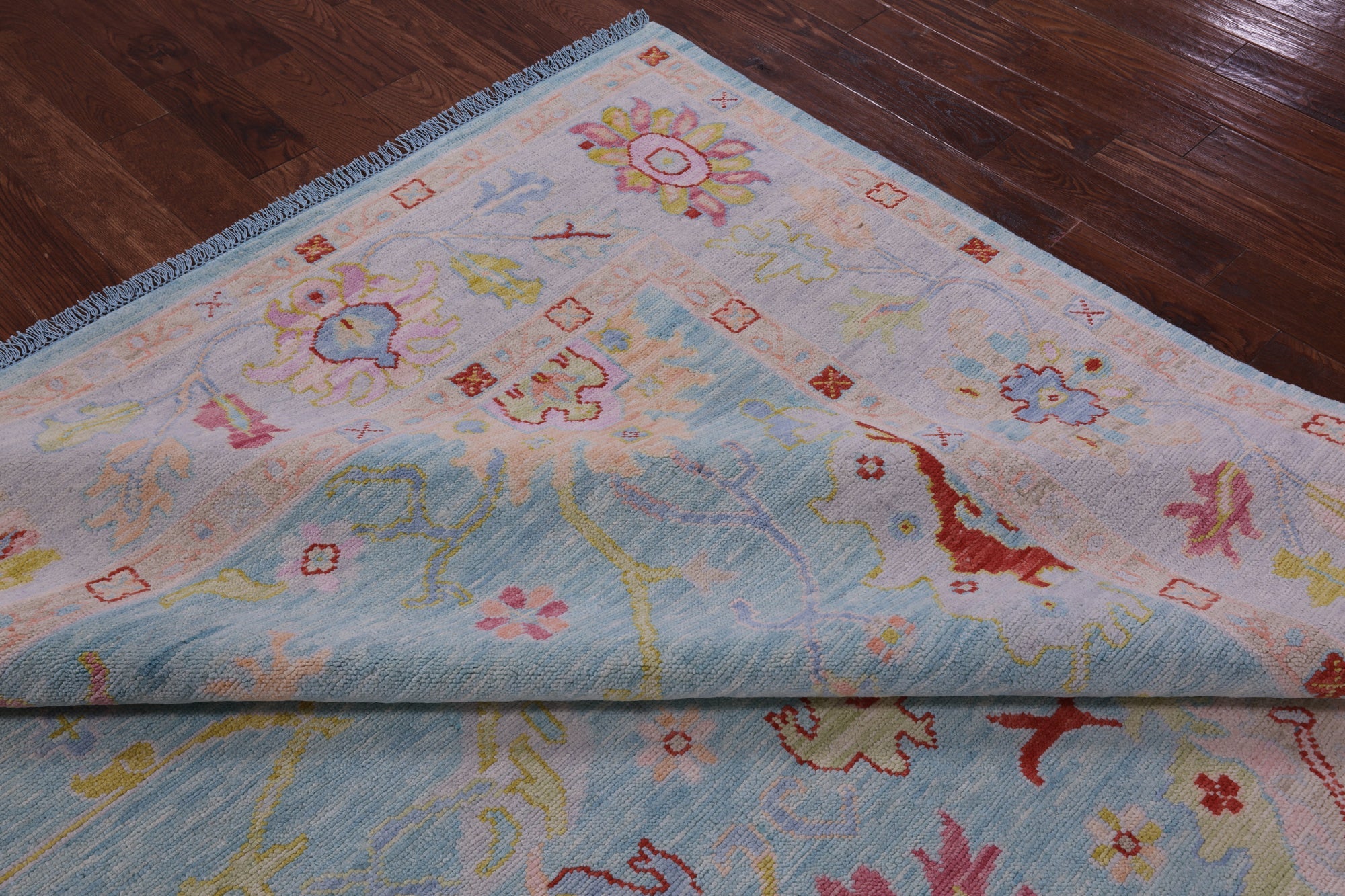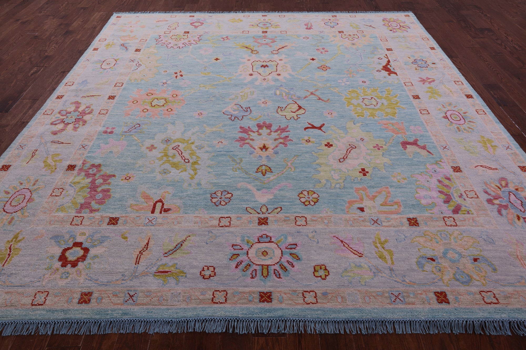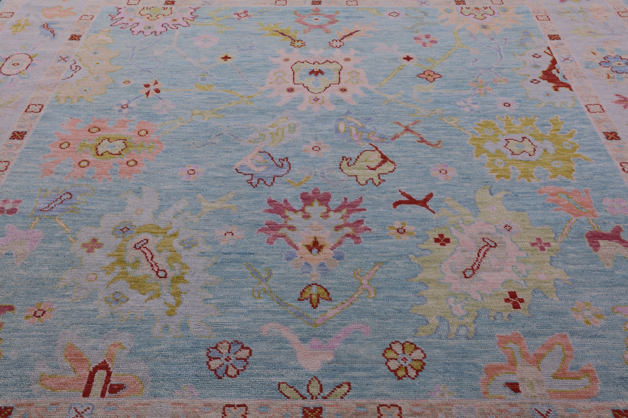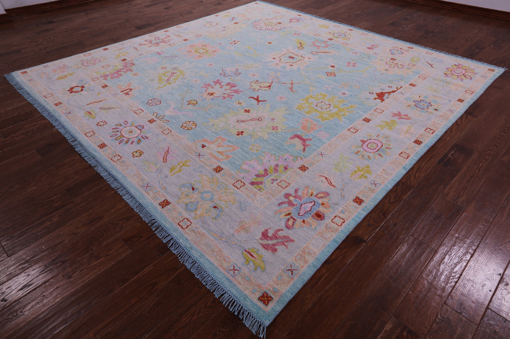 Blue 10' Square Turkish Angora Oushak Handmade Wool Rug - Q22687 is backordered and will ship as soon as it is back in stock.