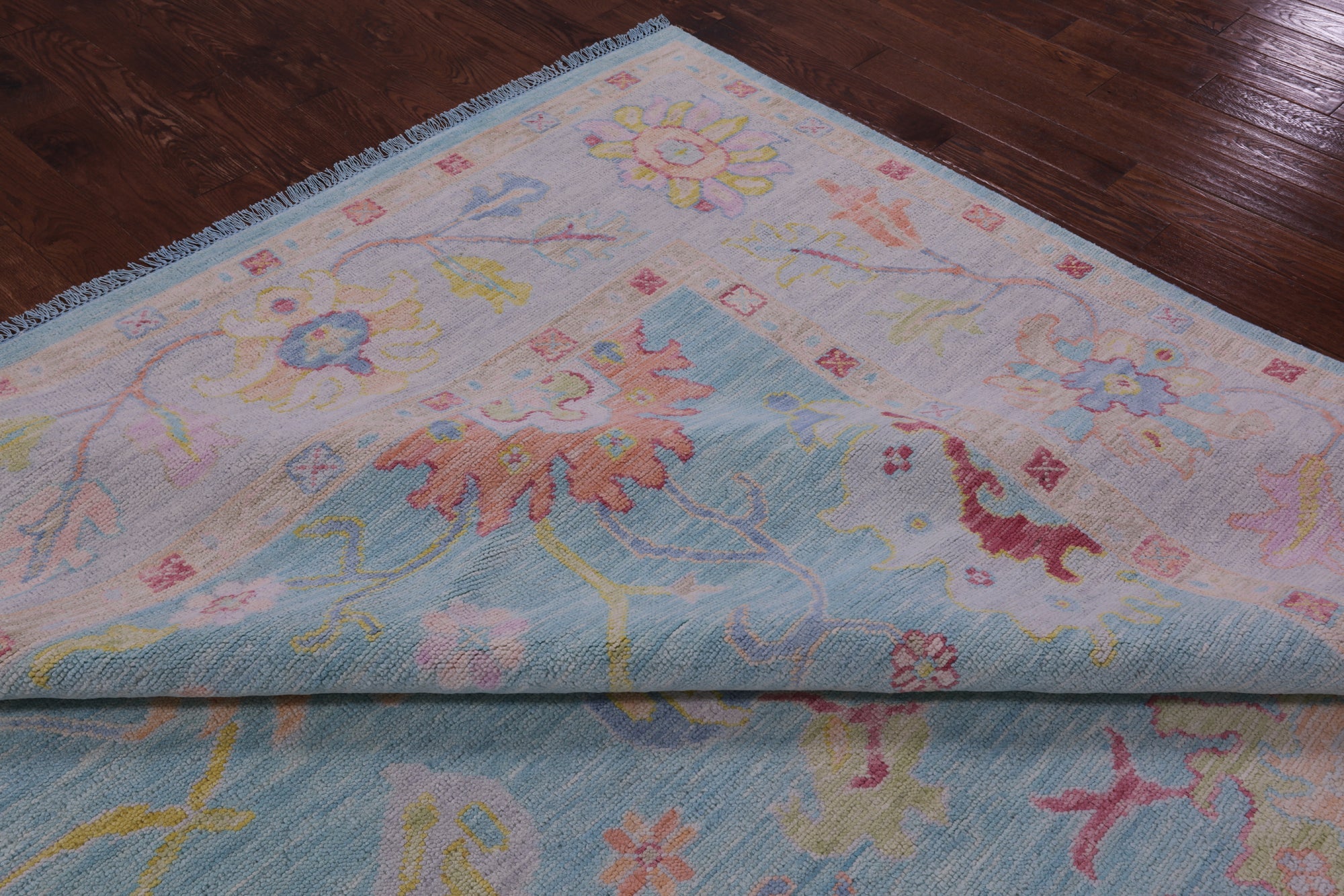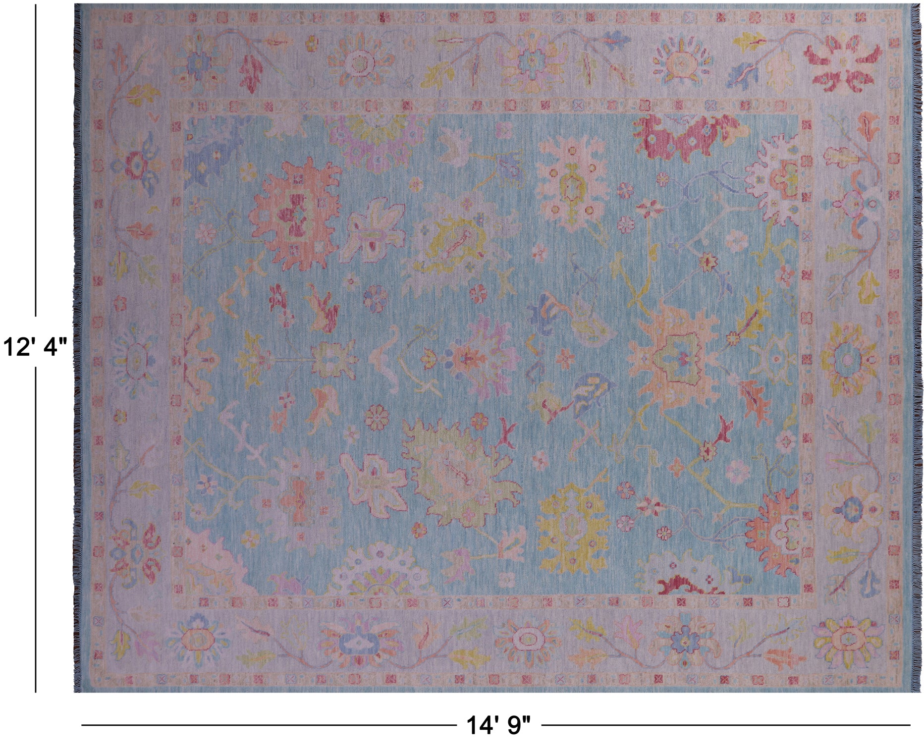 Blue 12' 4" X 14' 9" Turkish Angora Oushak Hand Knotted Rug - Q22643