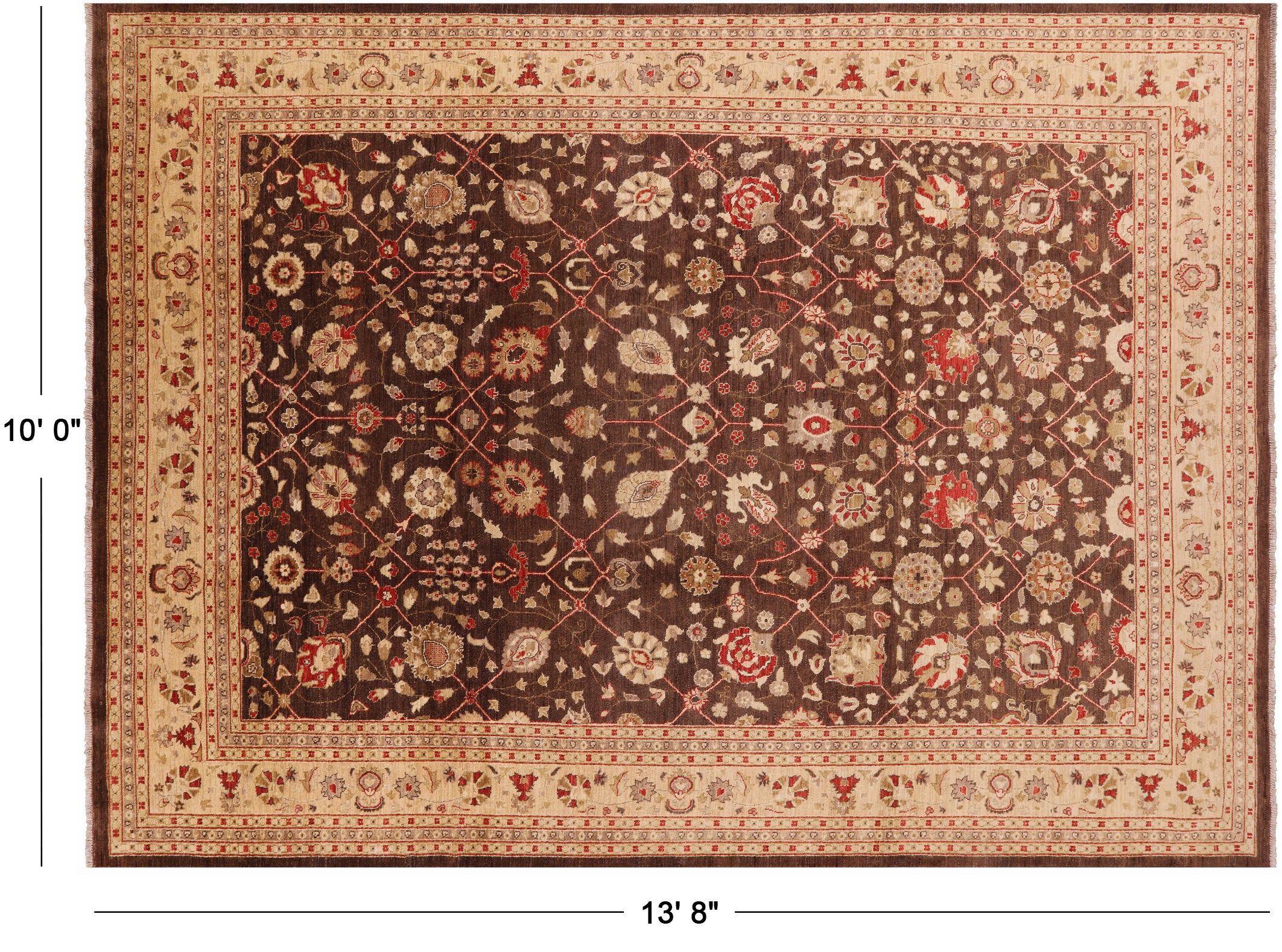 Brown Peshawar Hand Knotted Wool Rug 10' 0" x 13' 8" - H9407