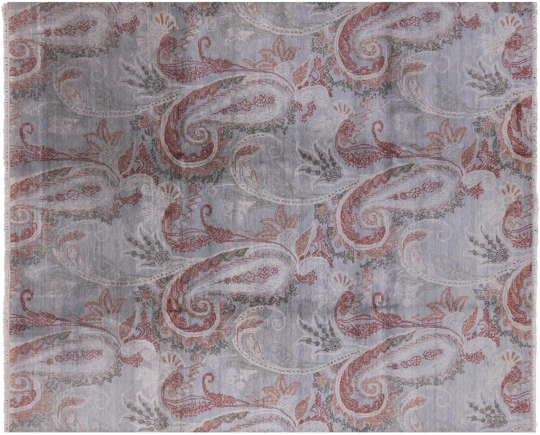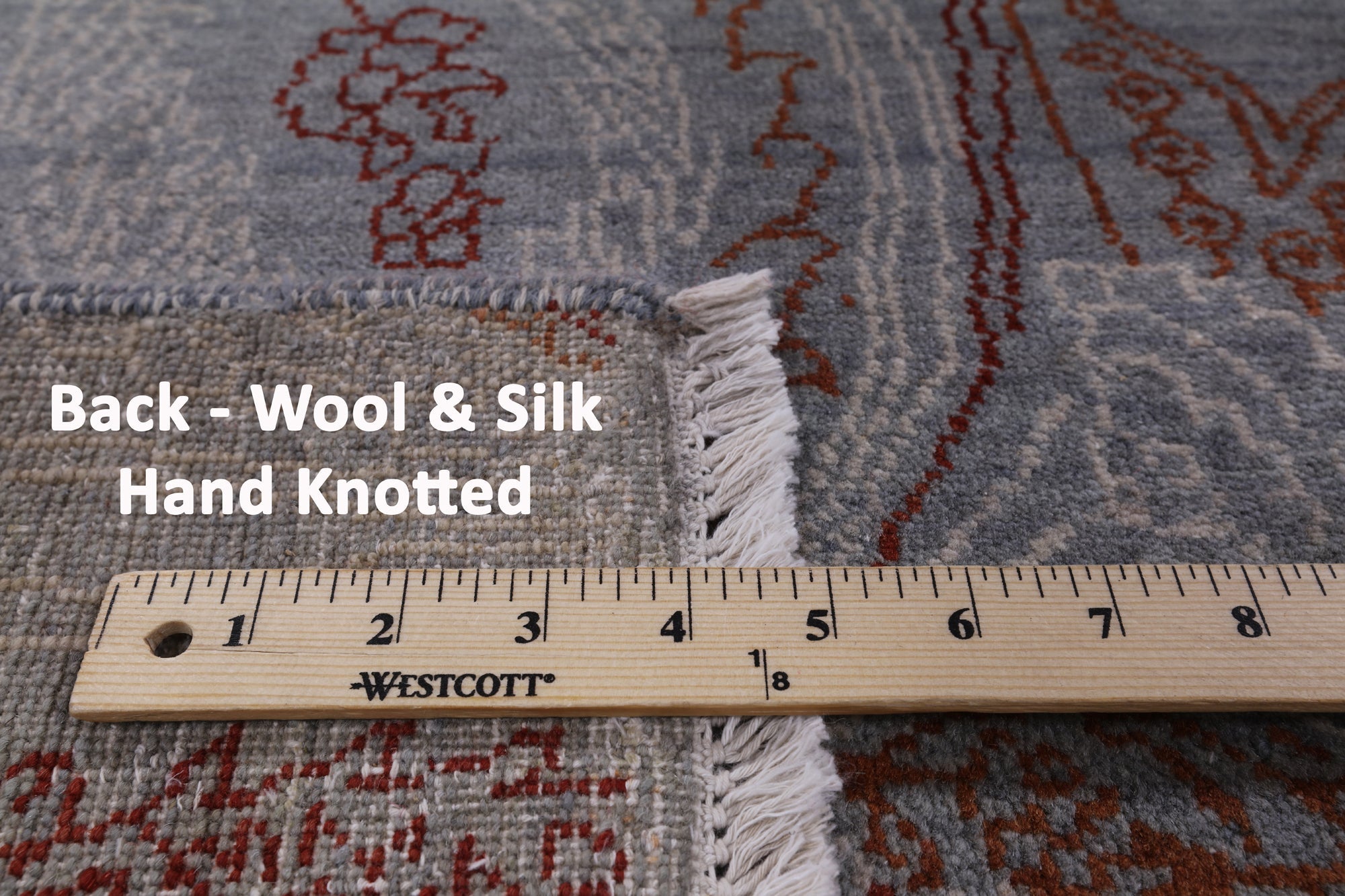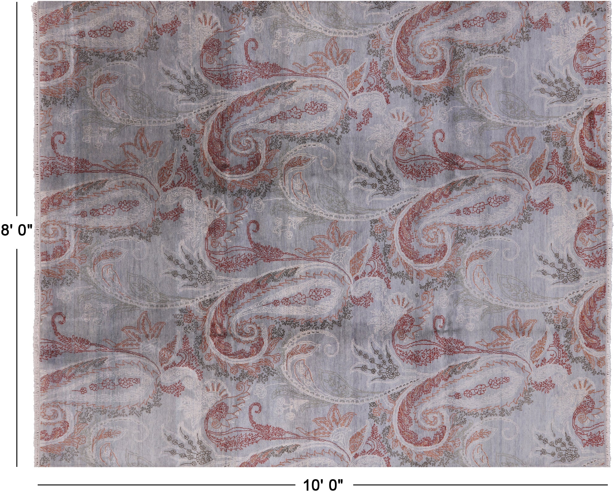 Grey 8' 0" X 10' 0" Wool & Silk William Morris Handmade Area Rug - H6733