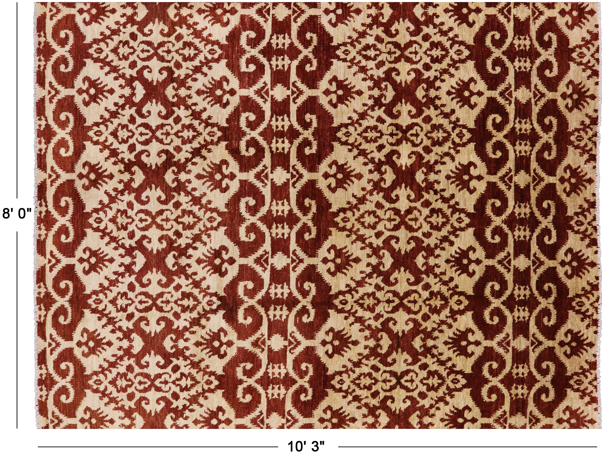 Hand Knotted Ikat Wool Rug 8' 0" X 10' 3" - H8204