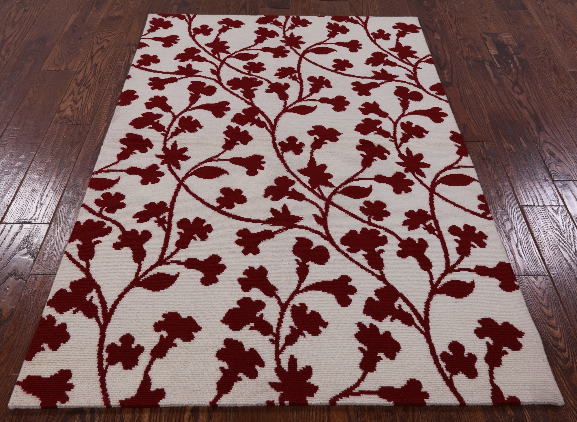 Ivory 3' 7" X 5' 7" Floral Hand Knotted Area Rug - H1076