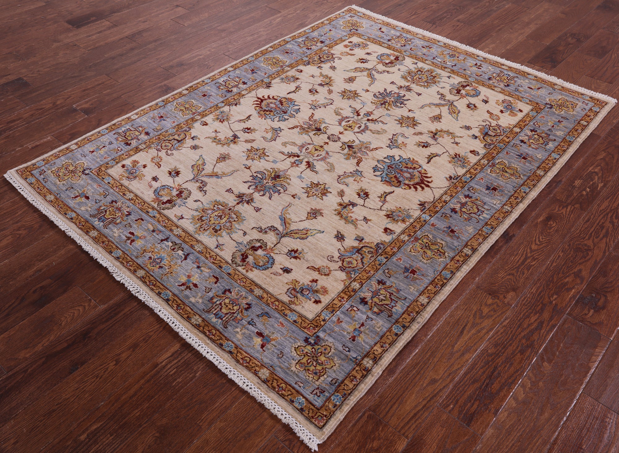 Ivory 5' 0" X 6' 7" Hand Knotted Persian Tabriz Wool Rug - Q18418 is backordered and will ship as soon as it is back in stock.