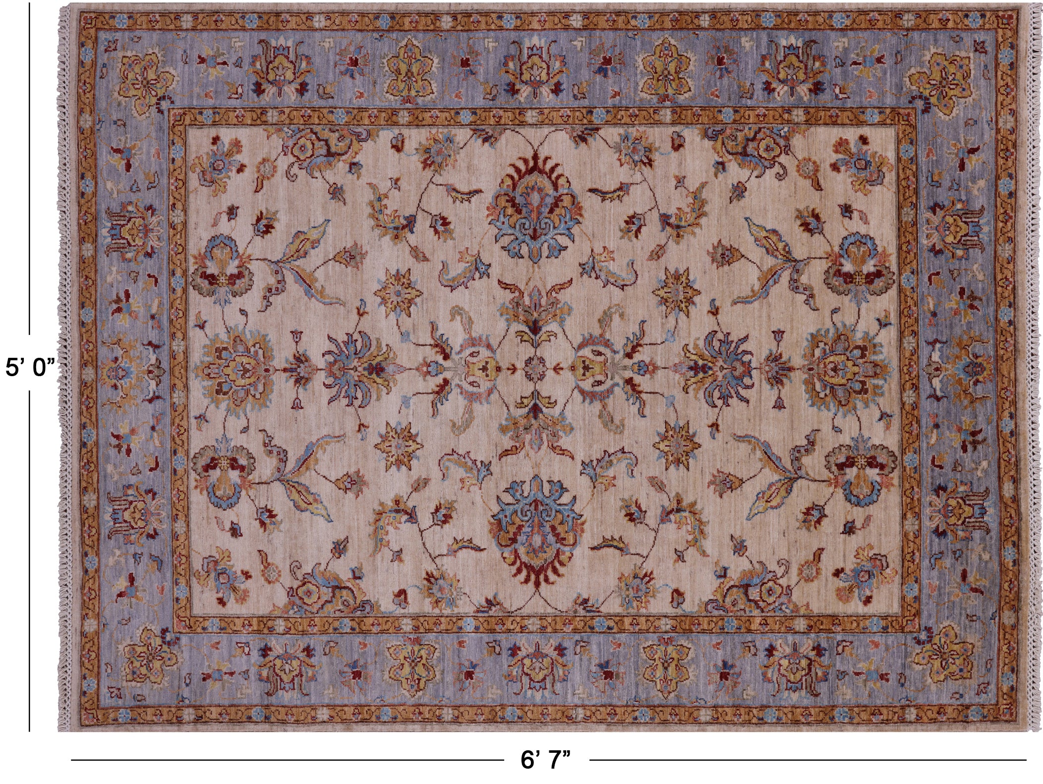 Ivory 5' 0" X 6' 7" Hand Knotted Persian Tabriz Wool Rug - Q18418