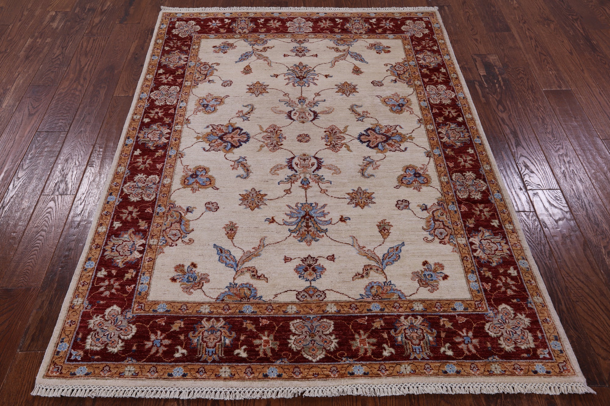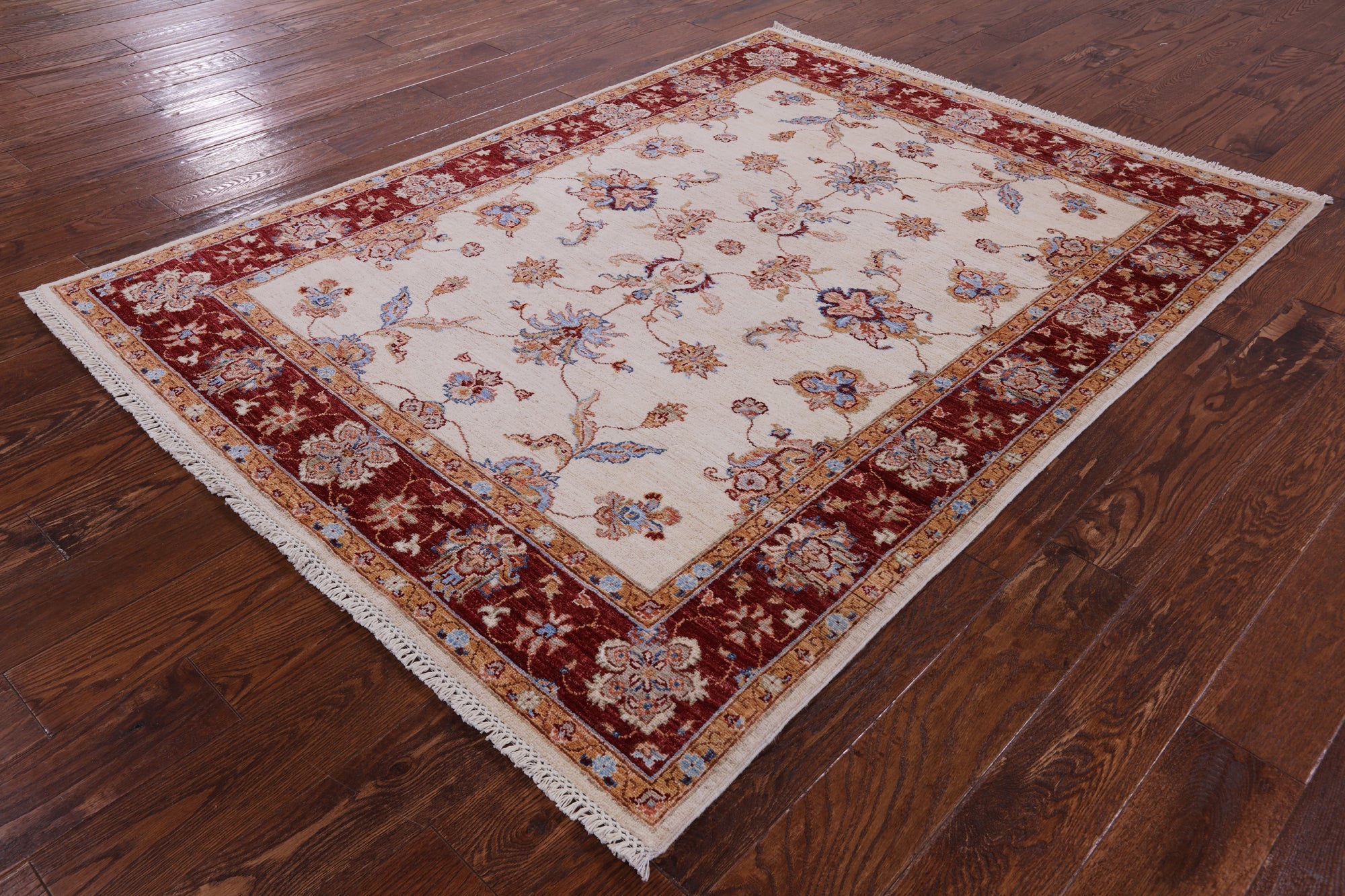 Ivory Handmade Persian Tabriz Wool Rug 4' 10" X 6' 7" - Q11201