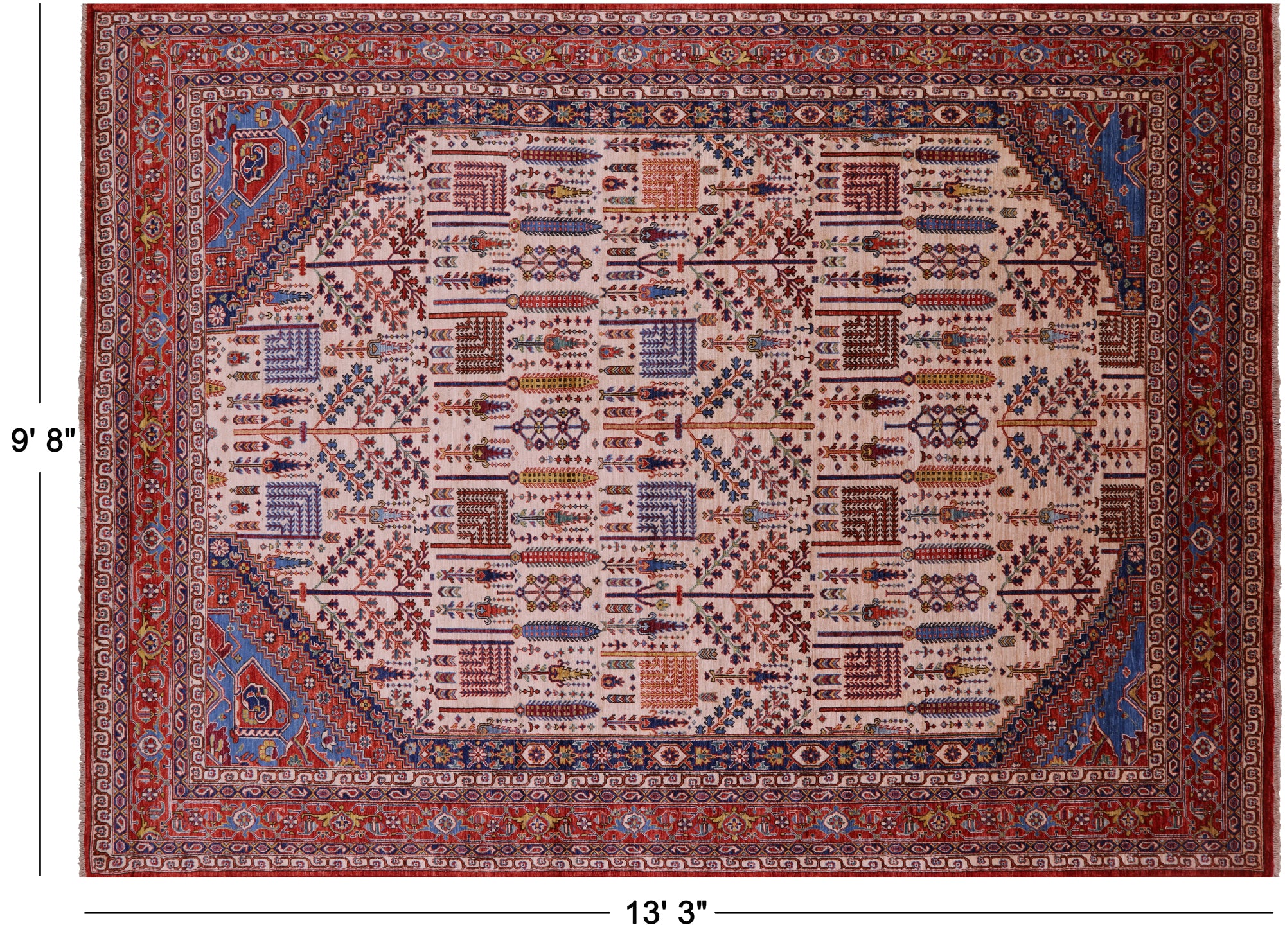 Ivory 9' 8" X 13' 3" Persian Ziegler Handmade Wool Rug - Q22785