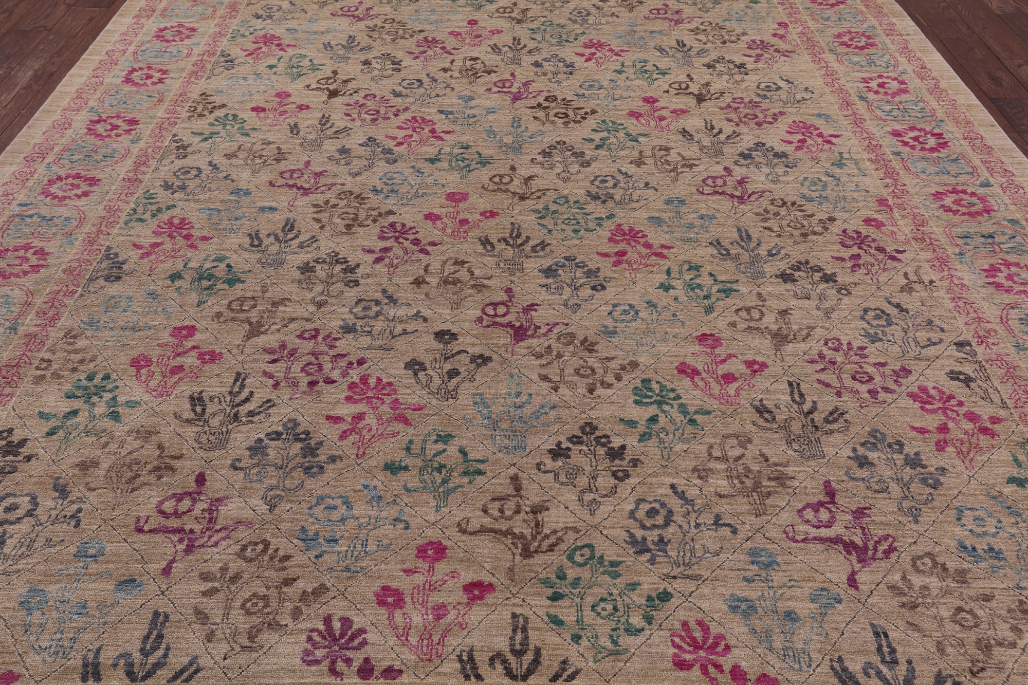 William Morris design are part of arts and crafts movement often including natural forms. These 19th and early 20th century designs are distinctive for their stylized natural forms, their symmetry and their vibrant colors. William Morris patterns are based on nature such thistles, ginkgo leaves, willow trees and flowers. These modern hand knotted rugs are woven with high quality wool, silk or both.